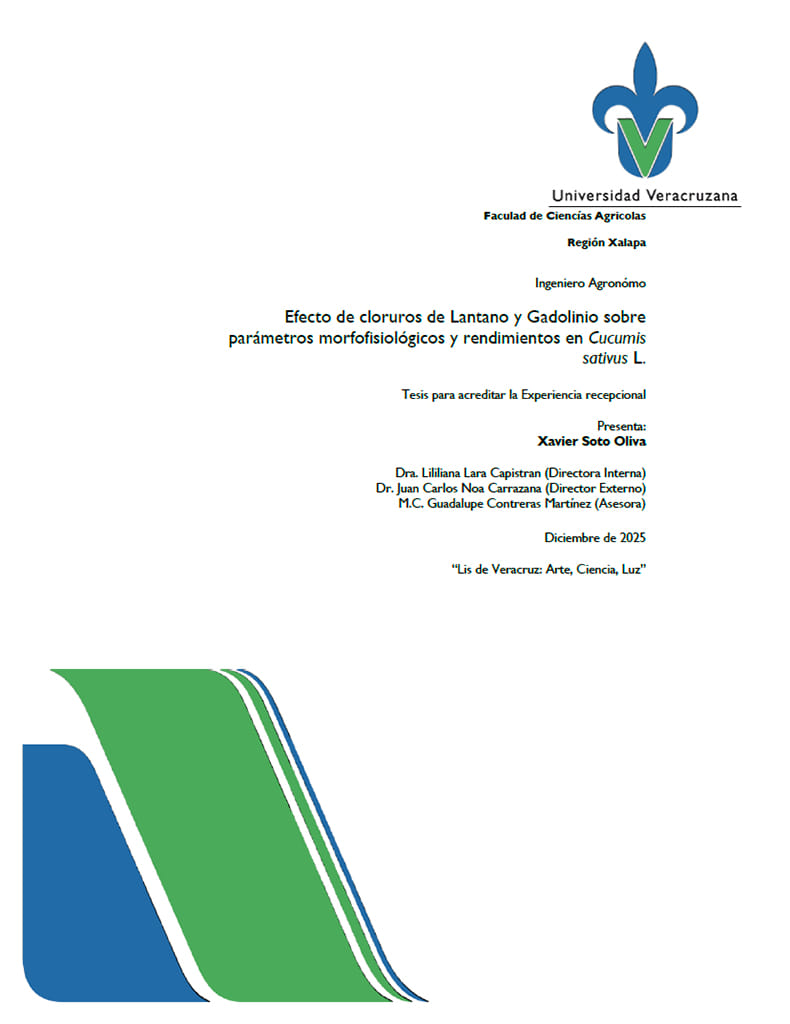 Tesis: Efecto de cloruros de Lantano y Gadolinio sobre parámetros morfofisiológicos y rendimientos en Cucumis sativus L.