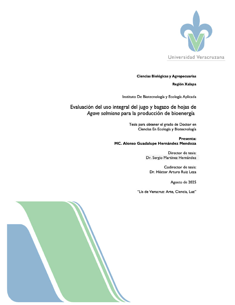 Tesis: Evaluación del uso integral del jugo y bagazo de hojas de Agave salmiana para la producción de bioenergía.