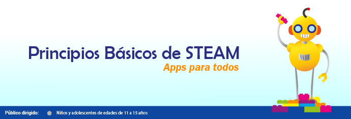 El curso “Principios básicos de STEAM: “Apps para todos” brinda a los niños y adolescentes los principios básicos de ciencia, tecnología, ingeniería, arte (diseño gráfico) y matemáticas, STEAM (acrónimo en inglés de Science, Technology, Engineering, Arts and Mathematics) cuya filosofía es fomentar el interés, motivación y creatividad de los estudiantes de educación básica, a través de herramientas como AppInventor, Scratch, LEGO Education, Canva, entre otras.