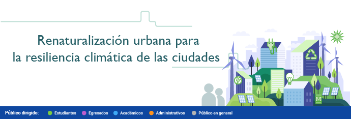 El diseño del curso está pensado para proporcionar a los participantes, una visión integral de la renaturalización urbana. El contenido estructurado en seis unidades temáticas, aborda los conceptos, investigaciones, estudios de caso, tácticas y herramientas más actuales en materia del capital natural, infraestructura verde y resiliencia urbana climática. Se dan a conocer las bases científicas, teóricas y prácticas, para establecer la ruta de aplicación para nuestras ciudades en diversas escalas. Las actividades están consideradas para la reflexión, análisis y aplicación práctica de estrategias, así como para la toma de decisiones en ámbitos de políticas públicas y líneas de acción en la planificación del verde urbano.