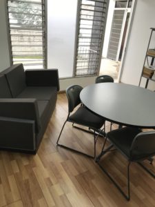 - Estaciones de trabajo: contamos con 8 computadoras conectadas a internet de alta velocidad mediante fibra óptica (con una velocidad síncrona aproximada de 94 Mbps).