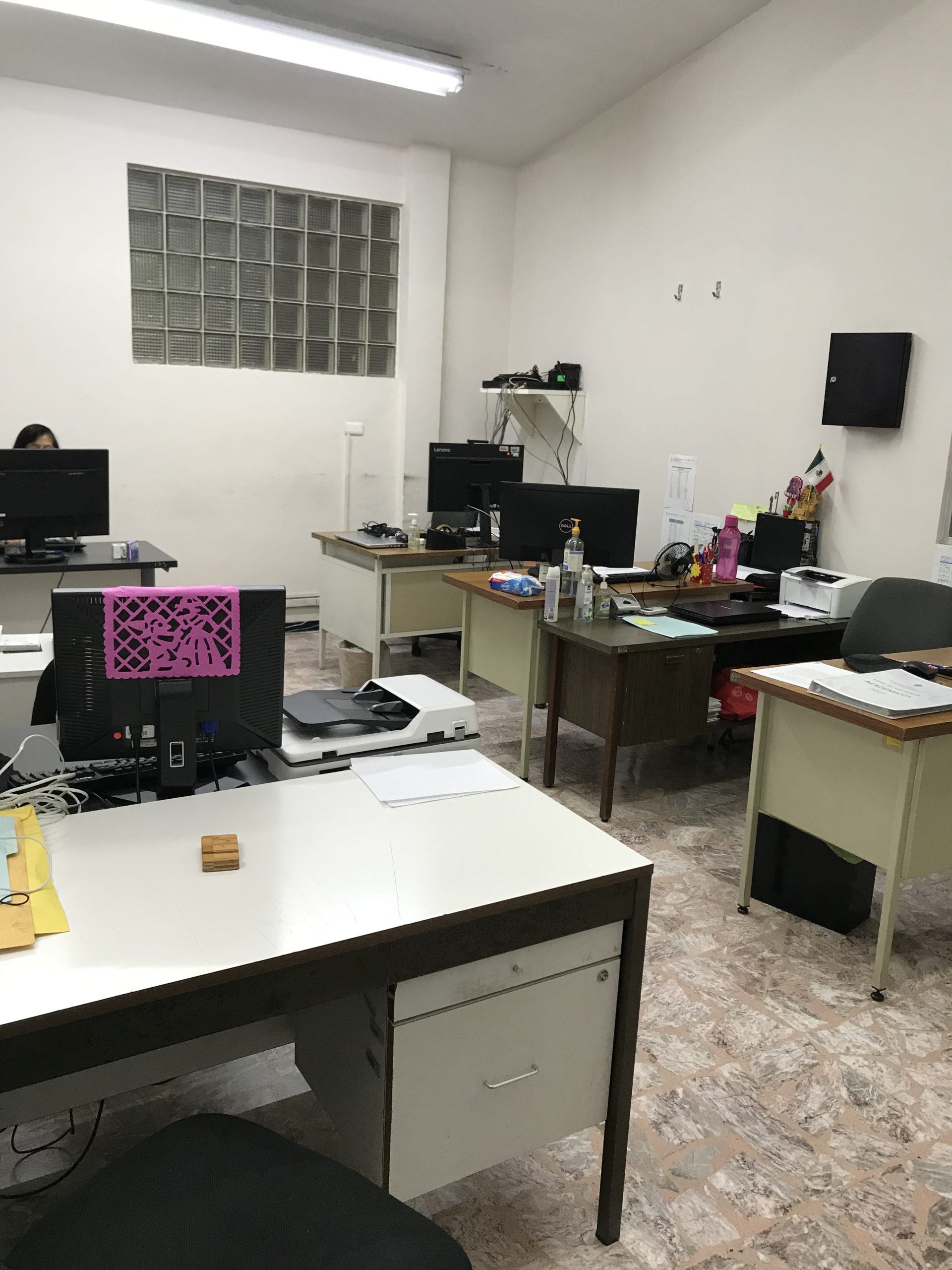 - Estaciones de trabajo: contamos con 8 computadoras conectadas a internet de alta velocidad mediante fibra óptica (con una velocidad síncrona aproximada de 94 Mbps).