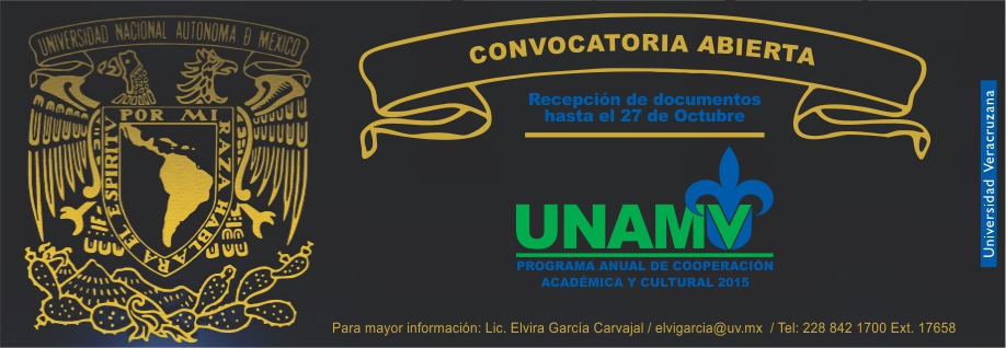 - Los académicos de la UV interesados en desarrollar un proyecto en colaboración con la UNAM deben establecer contacto con el académico de dicha institución con quién desean trabajar. Cabe mencionar que se deberá revisar la relación de entidades académicas y dependencias de la UNAM que participan en la convocatoria, con las “ligas” a las correspondientes páginas web UNAM: www.unam.com.mx