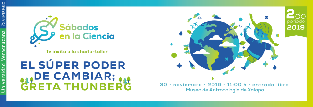 30 de noviembre Ana Valderrama y el equipo de la Dirección de Comunicación de la Ciencia nos platicarán “El súper poder de cambiar: Greta Thunberg”. A través del cuento que narra la vida y el inicio del movimiento social que convocó Greta Thunberg, sensibilizar y dar a conocer los temas de cambio climático, movimientos sociales en pro del planeta y sobre todo el papel de niños y jóvenes para generar acciones que exijan el trabajo en conjunto de sociedad civil y gobierno ante el desastre ecológico.