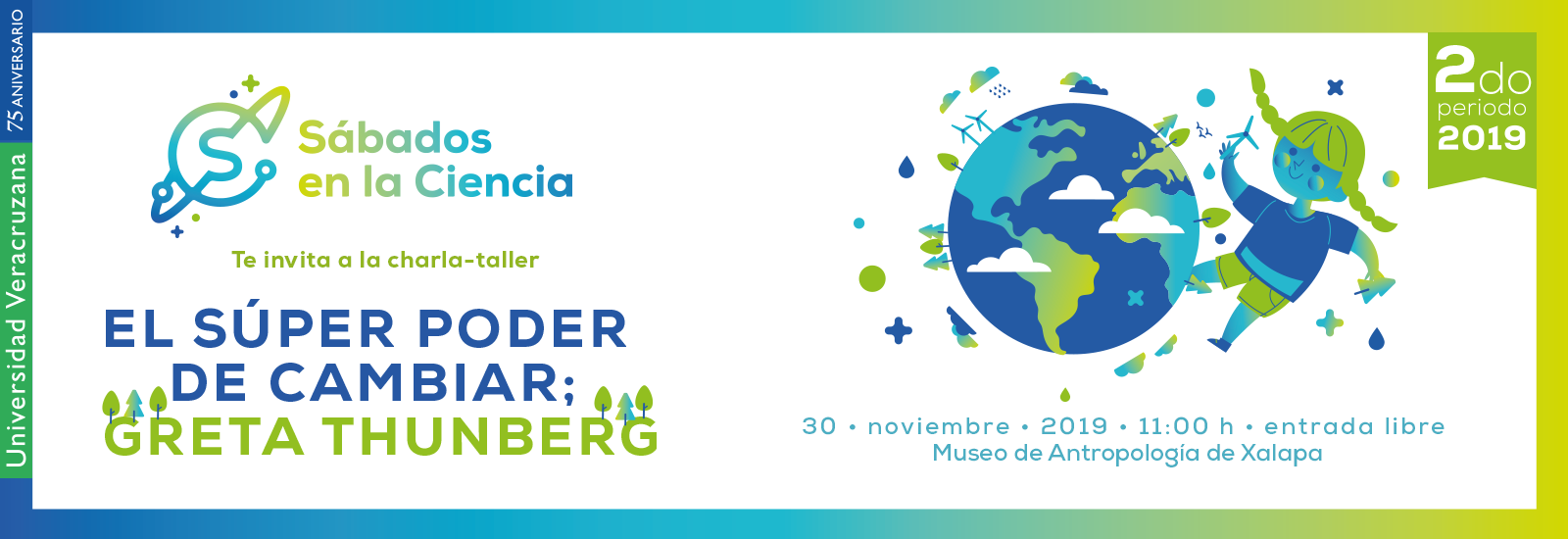 30 de noviembre Ana Valderrama y el equipo de la Dirección de Comunicación de la Ciencia nos platicarán “El súper poder de cambiar: Greta Thunberg”. A través del cuento que narra la vida y el inicio del movimiento social que convocó Greta Thunberg, sensibilizar y dar a conocer los temas de cambio climático, movimientos sociales en pro del planeta y sobre todo el papel de niños y jóvenes para generar acciones que exijan el trabajo en conjunto de sociedad civil y gobierno ante el desastre ecológico.
