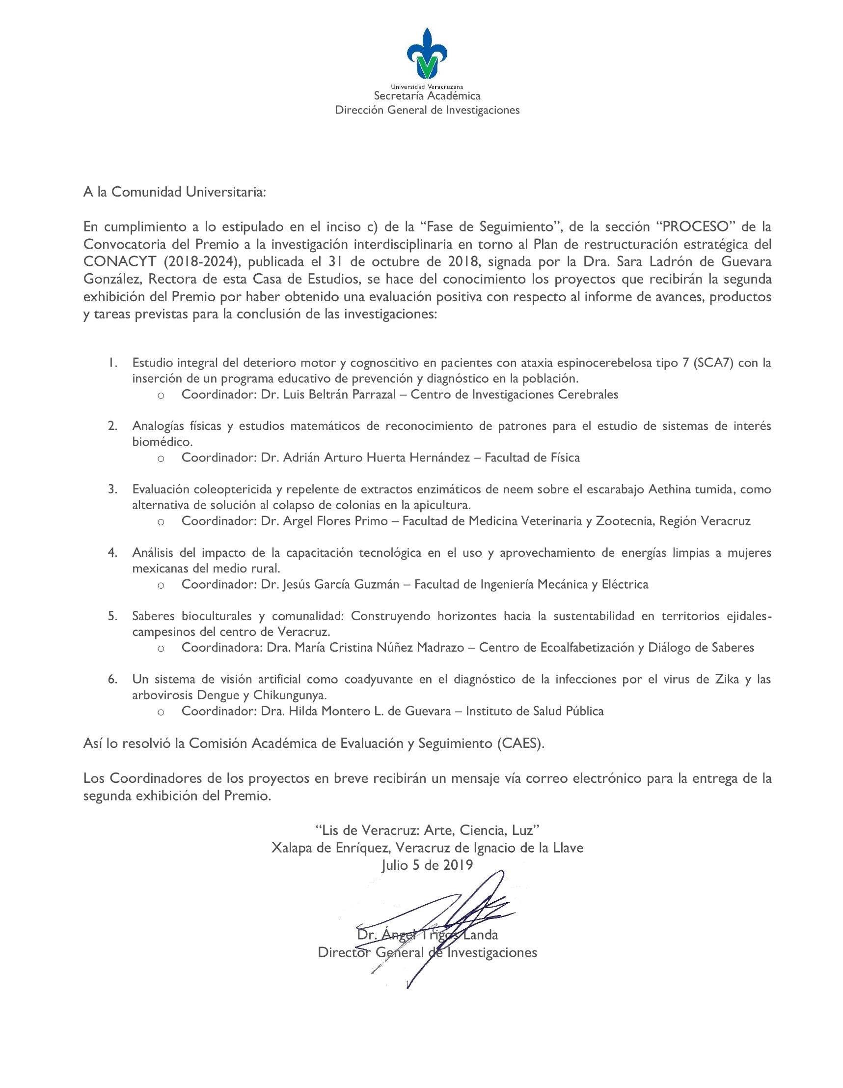 Resultados de la Fase de Seguimiento del Premio a la investigación interdisciplinaria en torno al Plan de restructuración estratégica del CONACYT (2018-2024) Versión en PDF