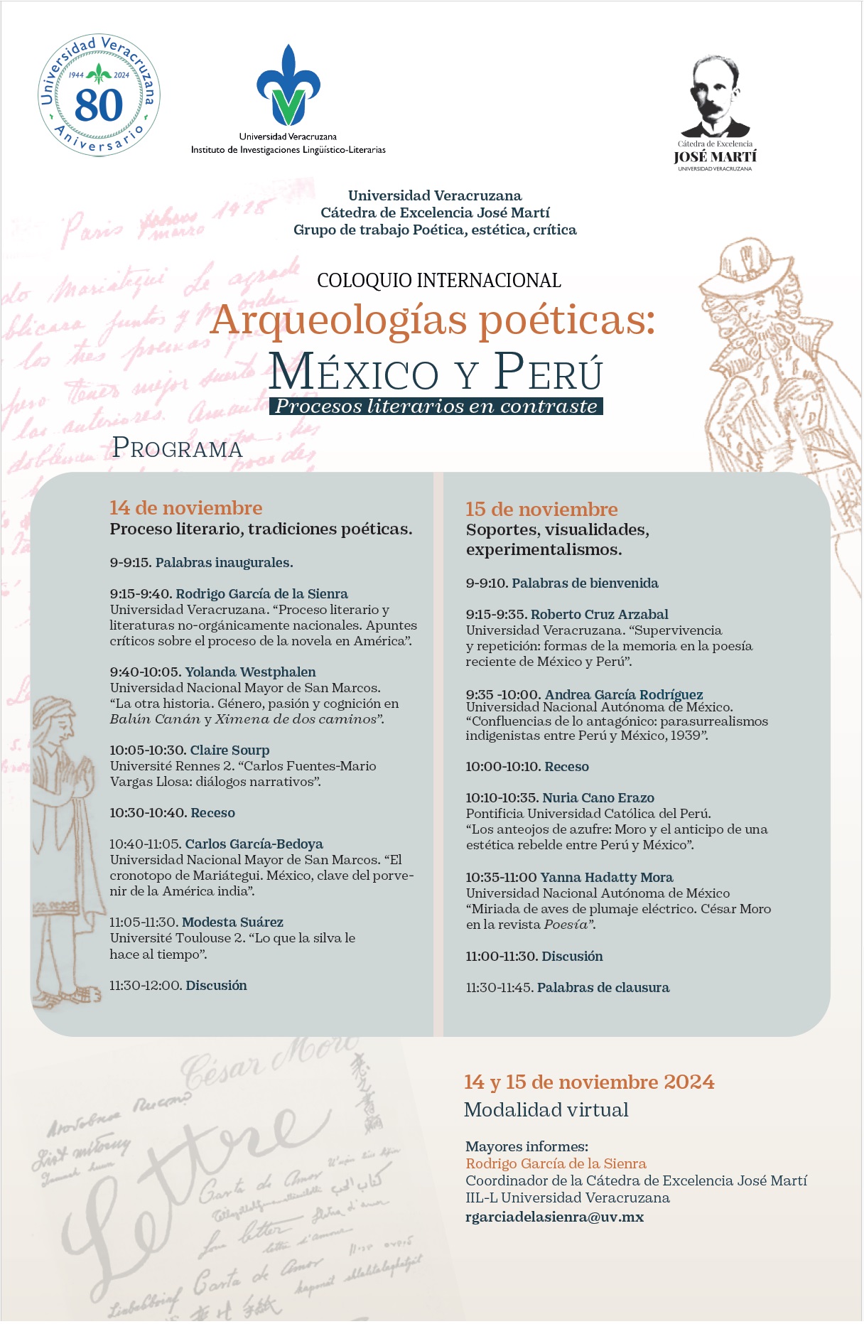 Carteles Arqueologías poéticas: México y Perú. Procesos literarios en contraste (noviembre 2024)
