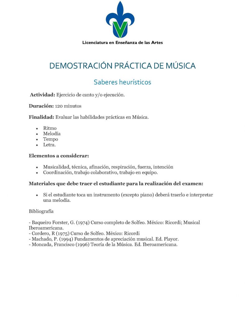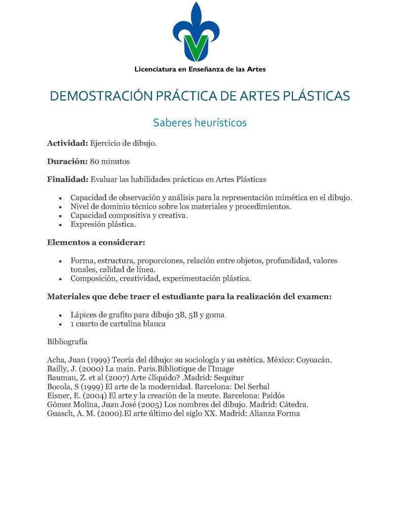 Criterios académicos para el examen de habilidades de nuevo ingreso a la Licenciatura en Enseñanza de las Artes 2019