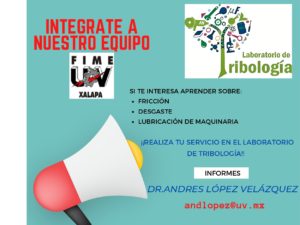 El volverte prestador de servicio en este espacio de trabajo te permitirá desarrollar tus habilidades blandas y ética profesional, sin mencionar las posibilidades para empezar alguna investigación relacionada al tema de la tribología.