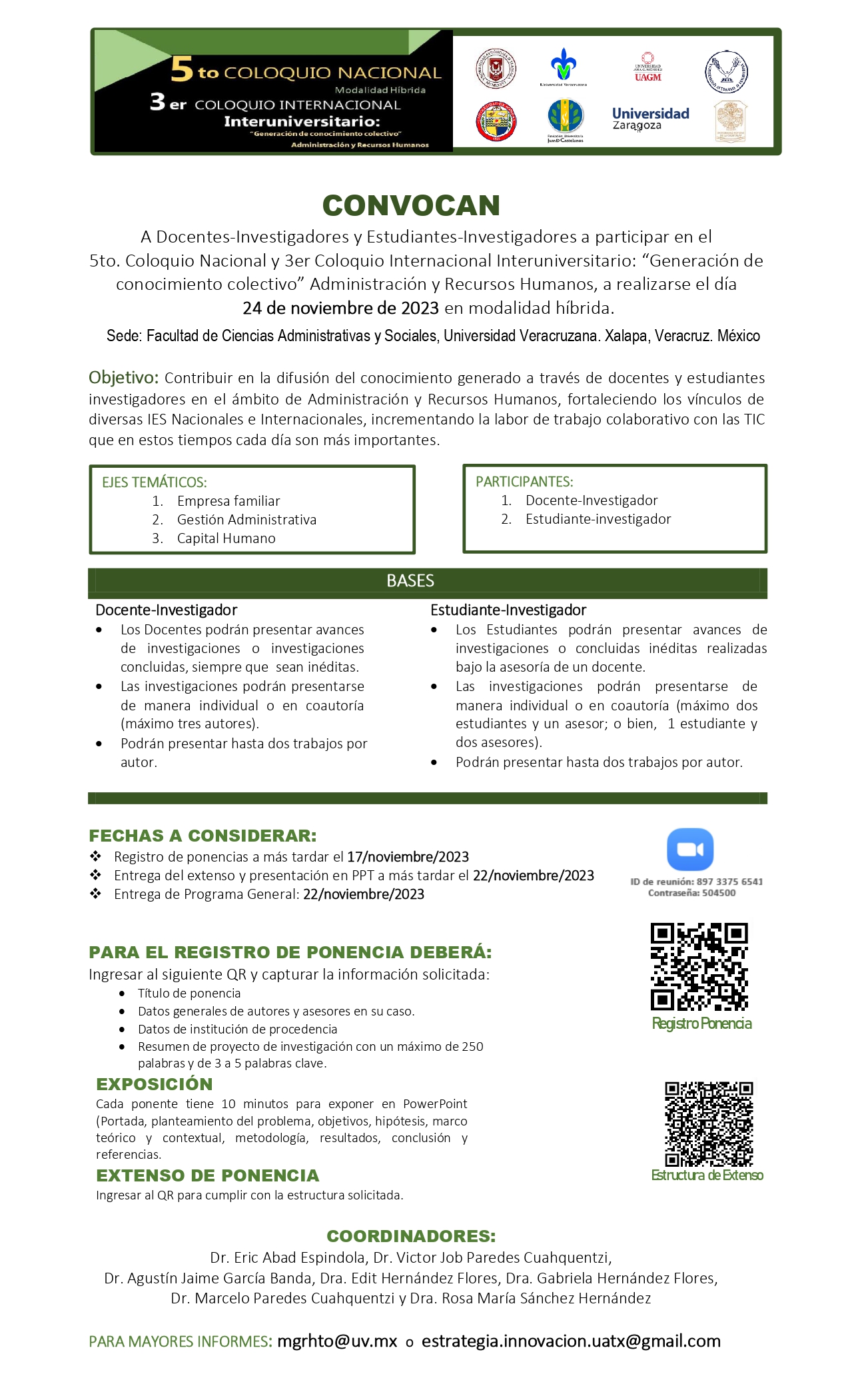 Tema: 5to. Coloquio Nacional y 3er. Coloquio Internacional Interuniversidades