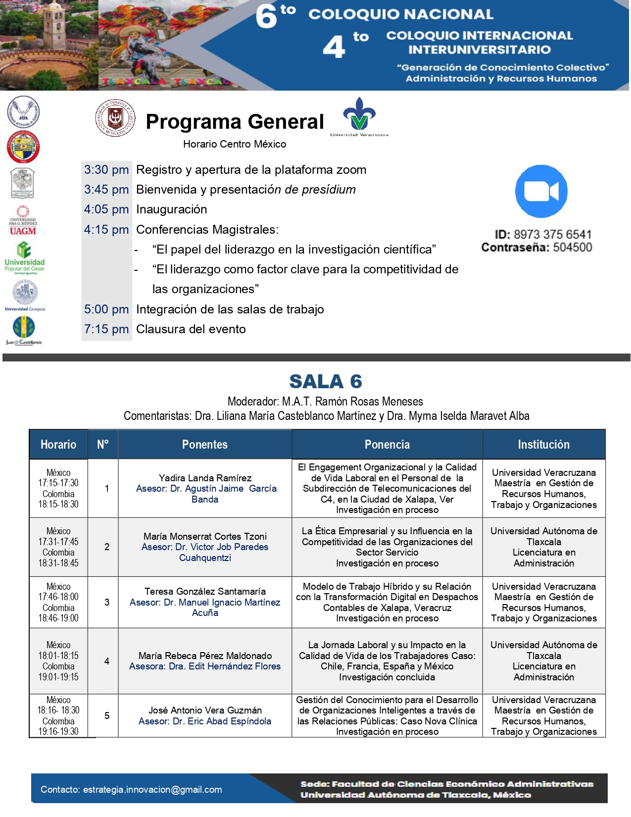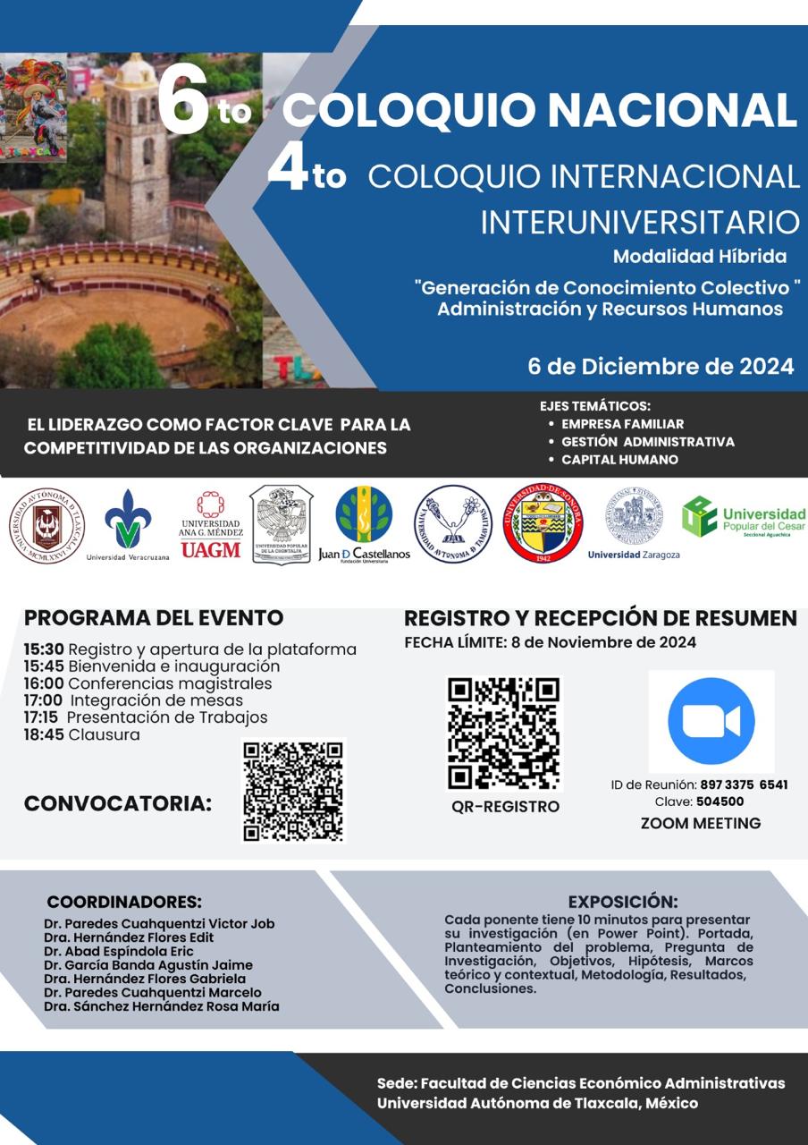 Tema: 6to. Coloquio Nacional y 4er. Coloquio Internacional Interuniversidades