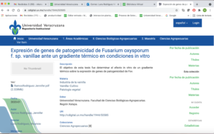 Tesis: Expresión de genes de patogenicidad de Fusarium oxysporum f. sp. vanillae ante un gradiente térmico en condiciones in vitro