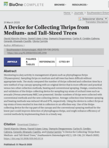 Año: 2020 Título: A Device for Collecting Thrips1 from Medium- and Tall-sized Trees Enlace: https://doi.org/10.3958/059.045.0114 Docente: Carlos R. Cerdán Cabrera, Gerardo Alvarado Castillo Estudiante: David Alarcón Utrera |