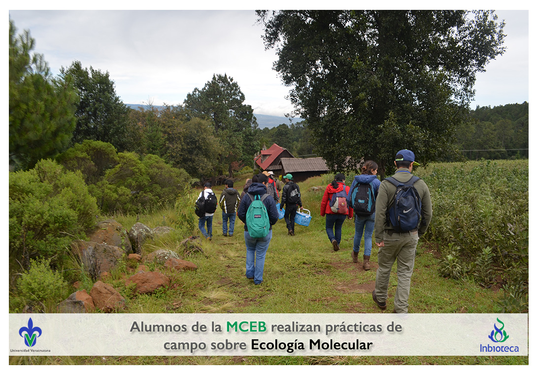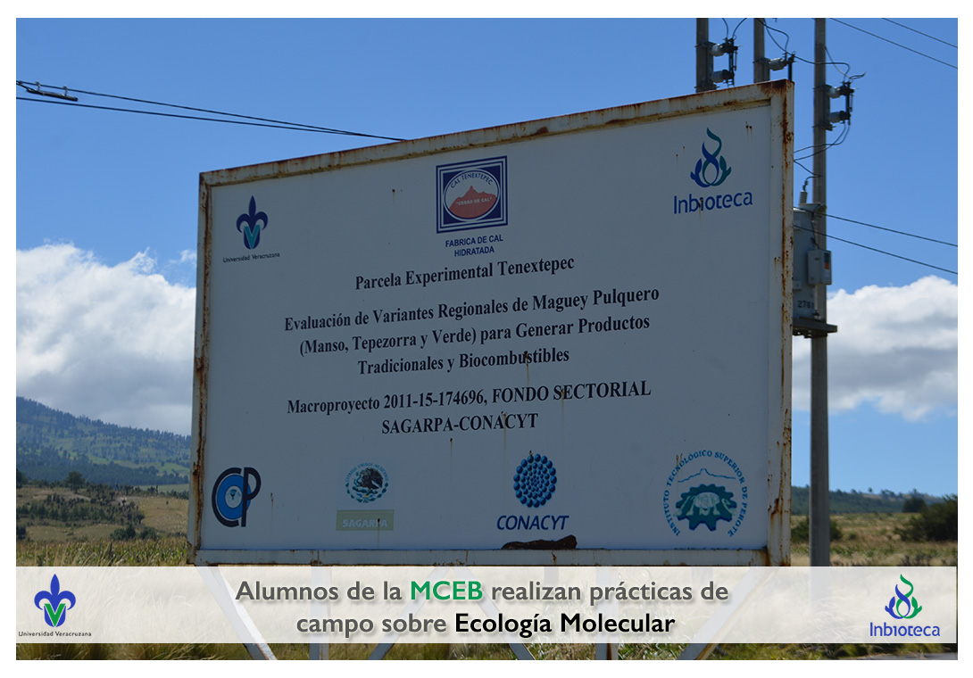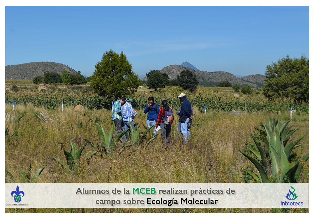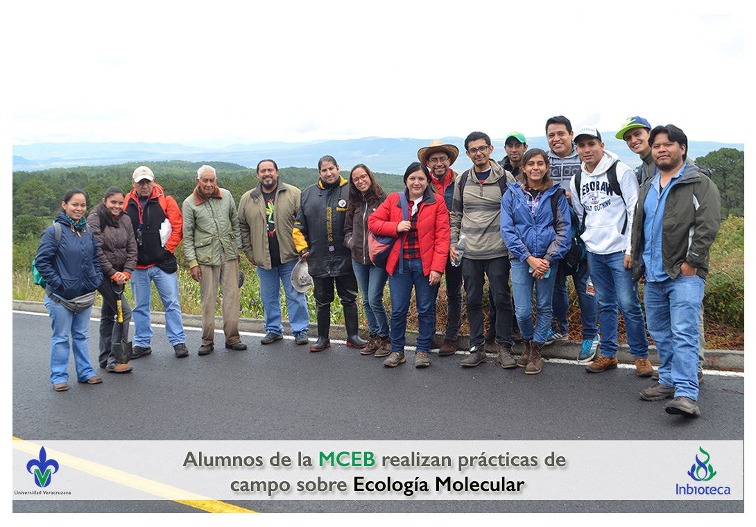 Se realizó trabajo de campo en el bosque de Abies religiosa en el Parque Nacional Cofre de Perote, Veracruz, donde se ha trabajado desde el año 2003 estudiando las interacciones simbióticas de abetos y hongos. También se realizó un muestreo en la parcela experimental de Agave pulquero que se estableció en 2013 en Tenextepec, Veracruz con apoyo de productores de la localidad, aquí se estudia el efecto de diferentes tratamientos de fertilización y cobertura vegetal en el crecimiento de las plantas de Agave. Finalmente los estudiantes realizaron trabajo de campo en una población natural de Agave oscura en el bosque de Pino en la zona de corriente de lava del Volcancillo, donde el estudiante de doctorado Manuel Adrian Cuéllar Martínez realiza su trabajo de investigación sobre la biología floral y reproductiva de la especie.