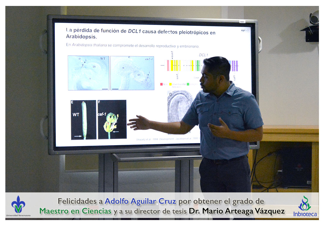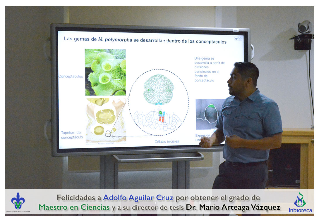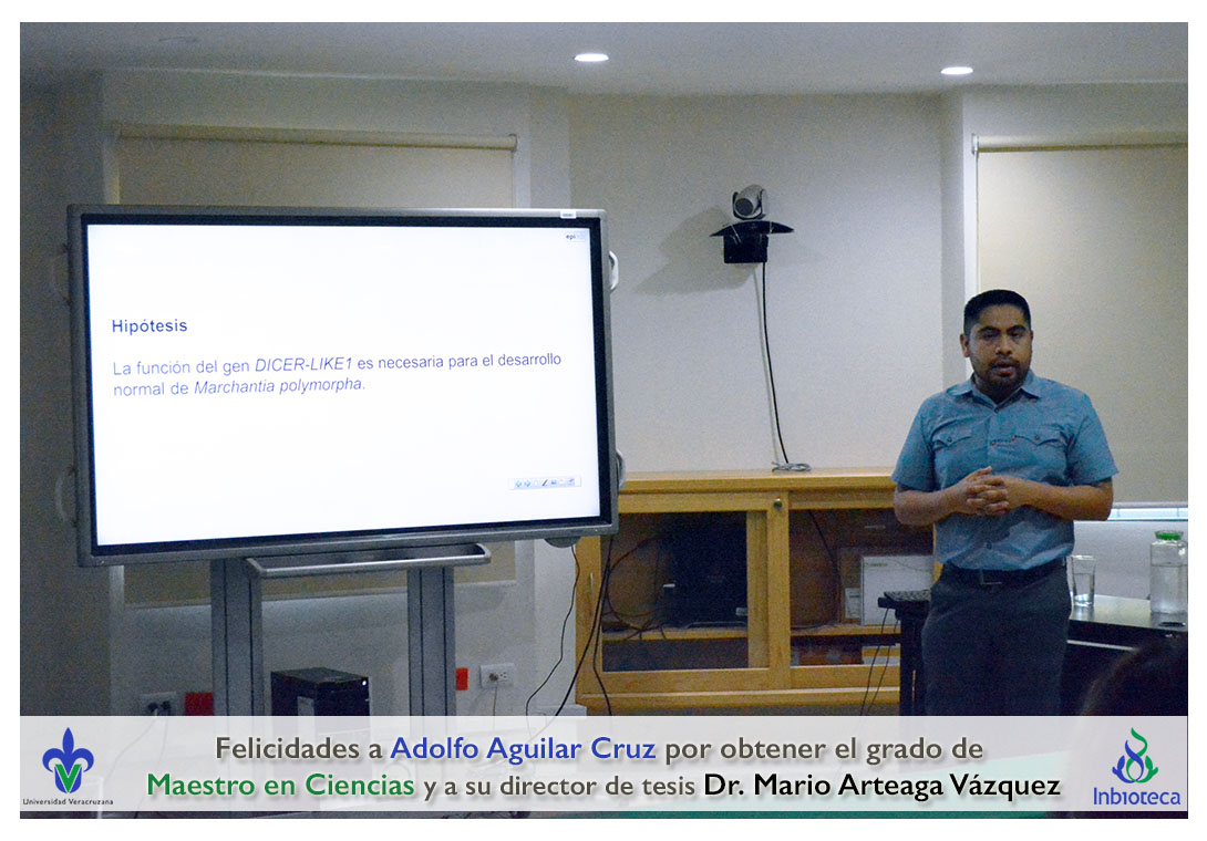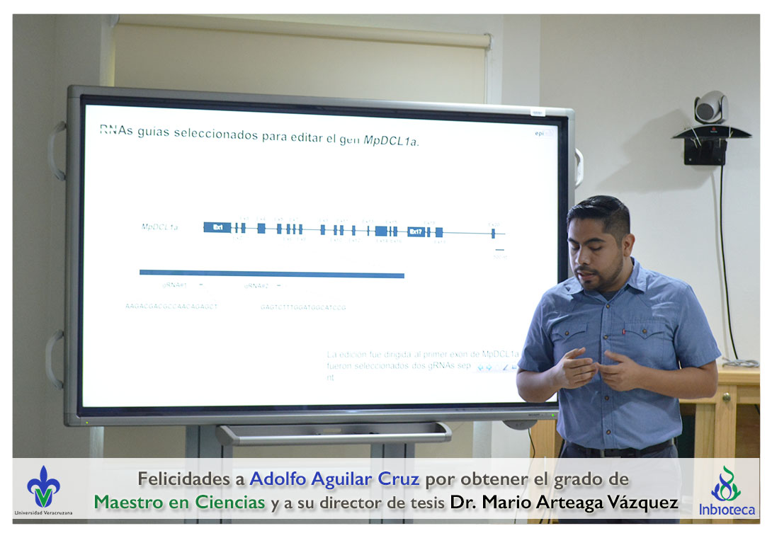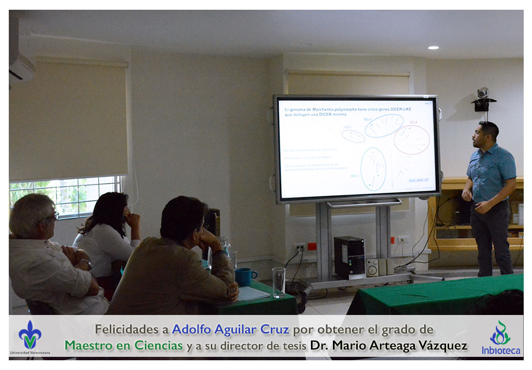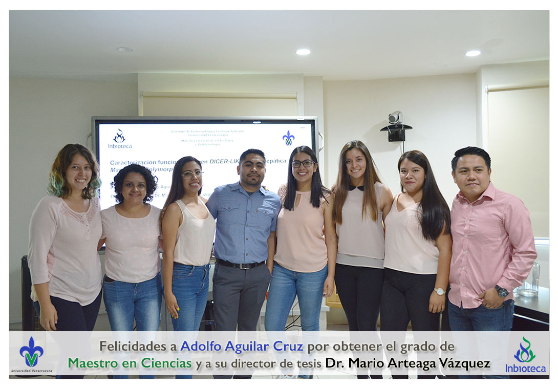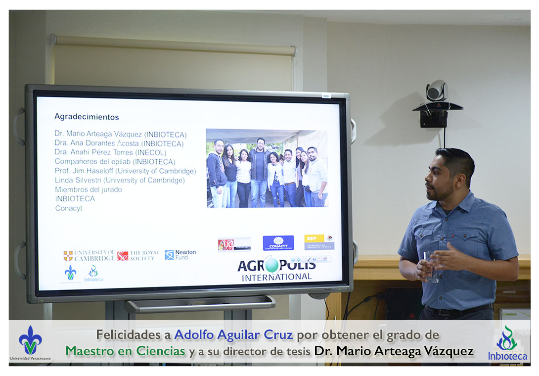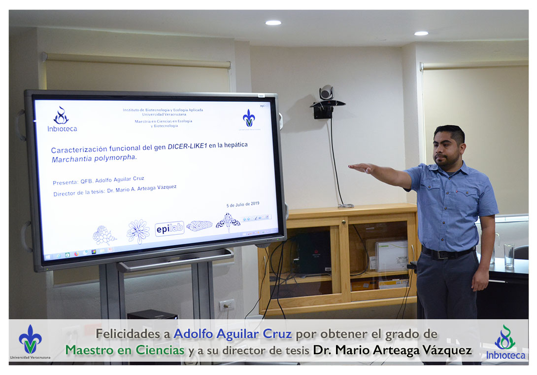 Felicidades Adolfo Aguilar Cruz por obtener el grado de Maestro en Ciencias en Ecología y Biotecnología, a su director de tesis Dr. Mario Alberto Arteaga Vázquez, a su comité y a todos los que contribuyeron en el trabajo realizado. ¡Enhorabuena!