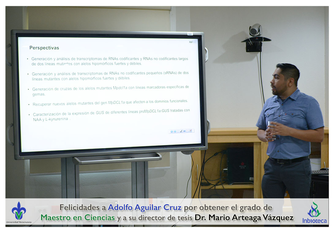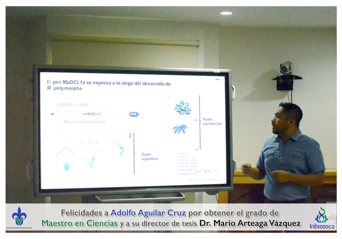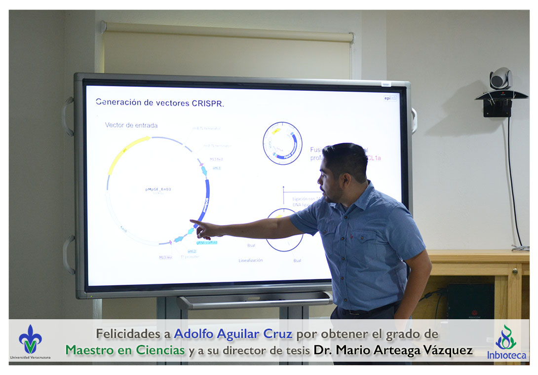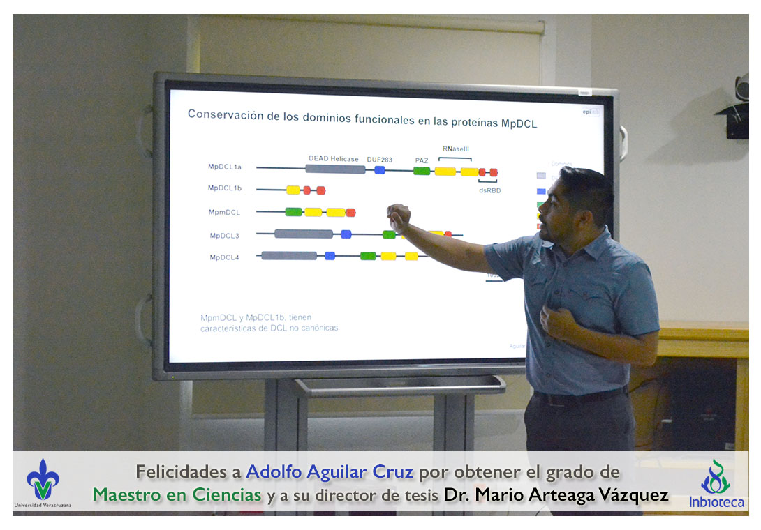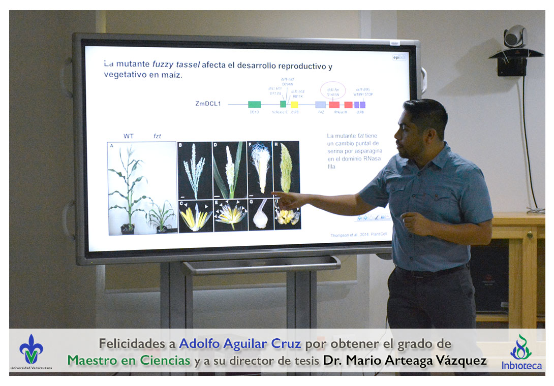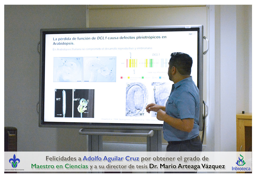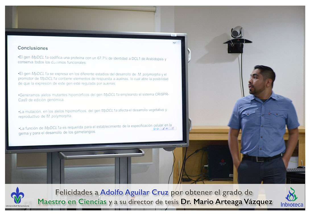 Felicidades Adolfo Aguilar Cruz por obtener el grado de Maestro en Ciencias en Ecología y Biotecnología, a su director de tesis Dr. Mario Alberto Arteaga Vázquez, a su comité y a todos los que contribuyeron en el trabajo realizado. ¡Enhorabuena!