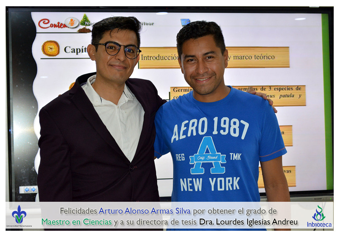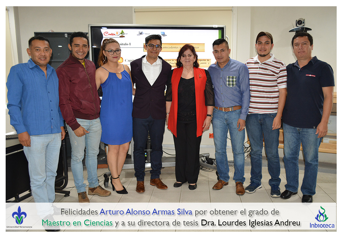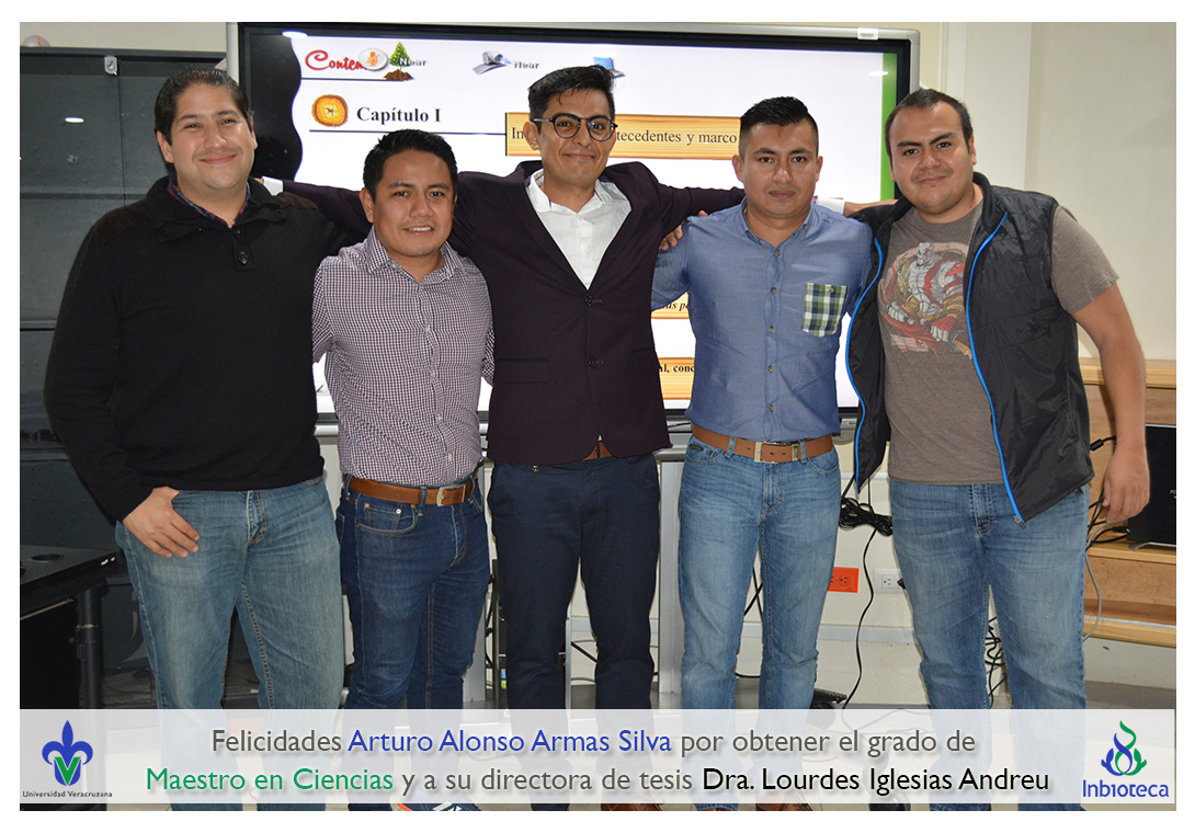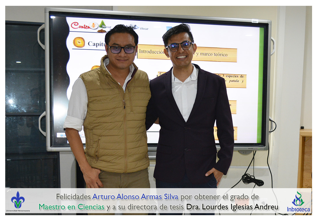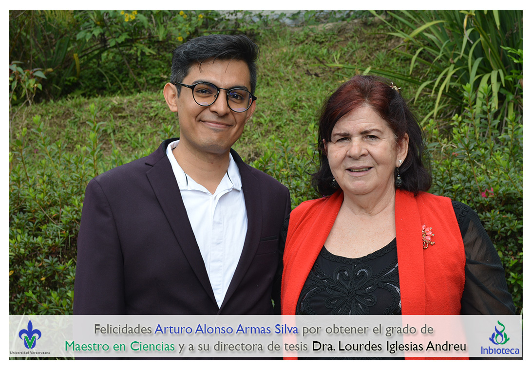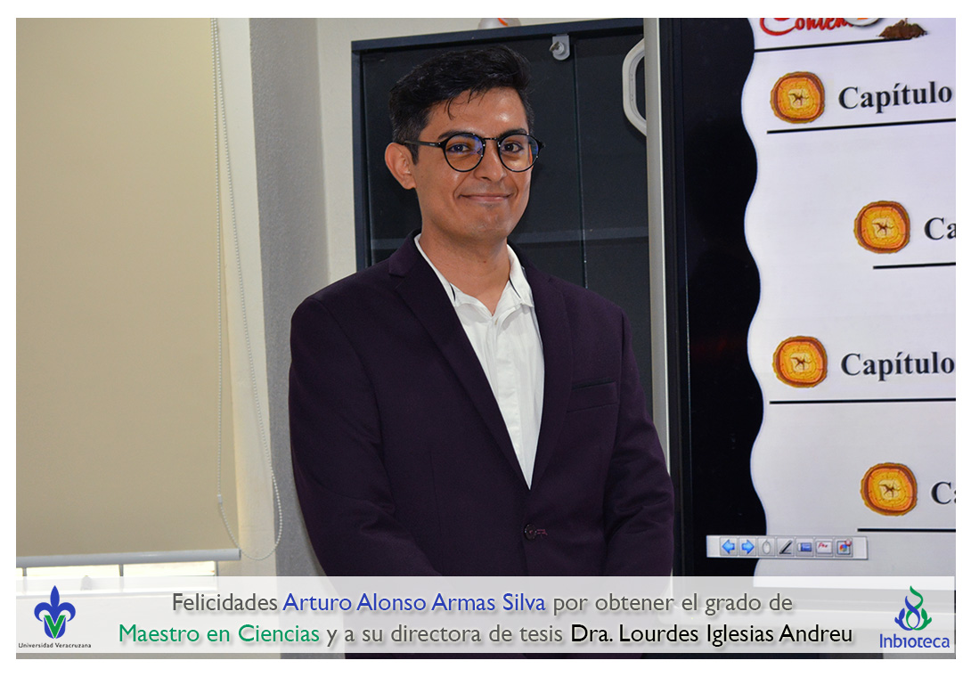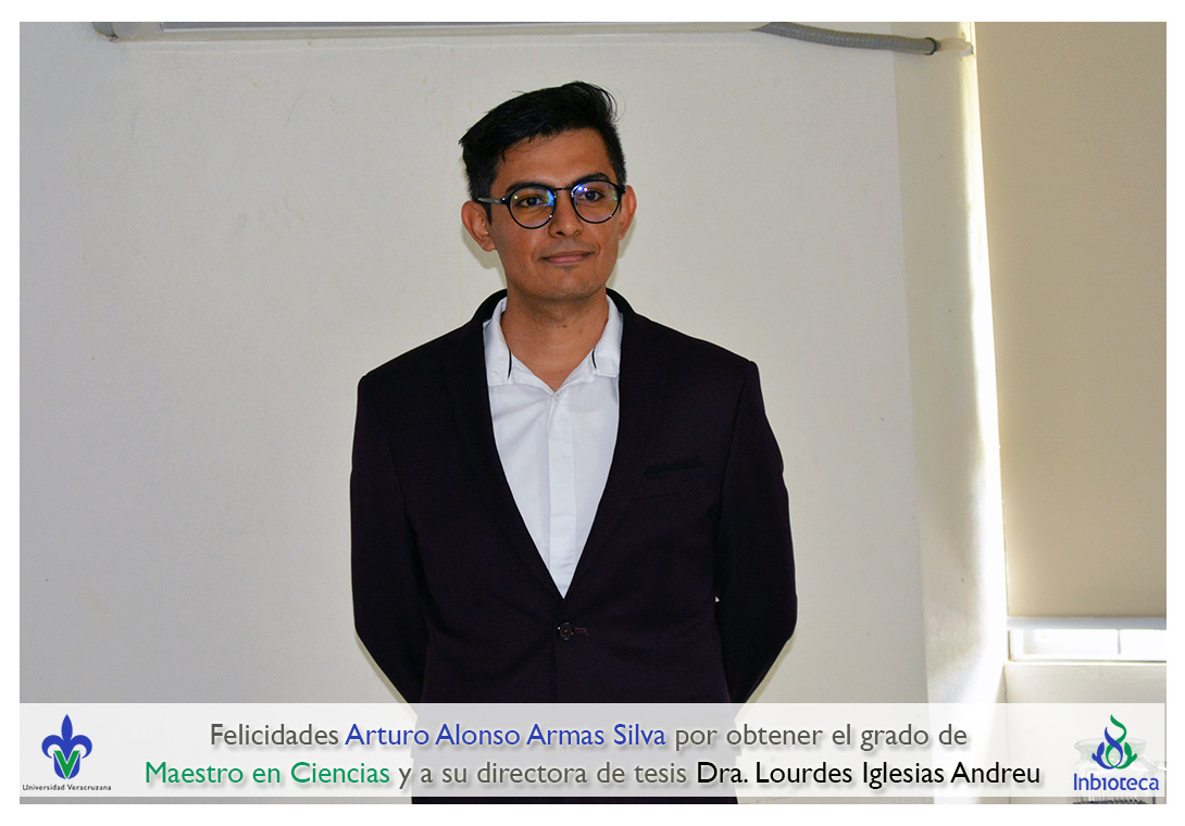 Felicidades al C. Arturo Alonso Armas Silva por obtener el grado de Maestro en Ciencias en Ecología y Biotecnología, a su directora de tesis Dra. Lourdes Georgina Iglesias Andreu, a su codirector Dr. Marco Antonio Ramírez Mosqueda, a su comité y a todos los que contribuyeron en el trabajo realizado.