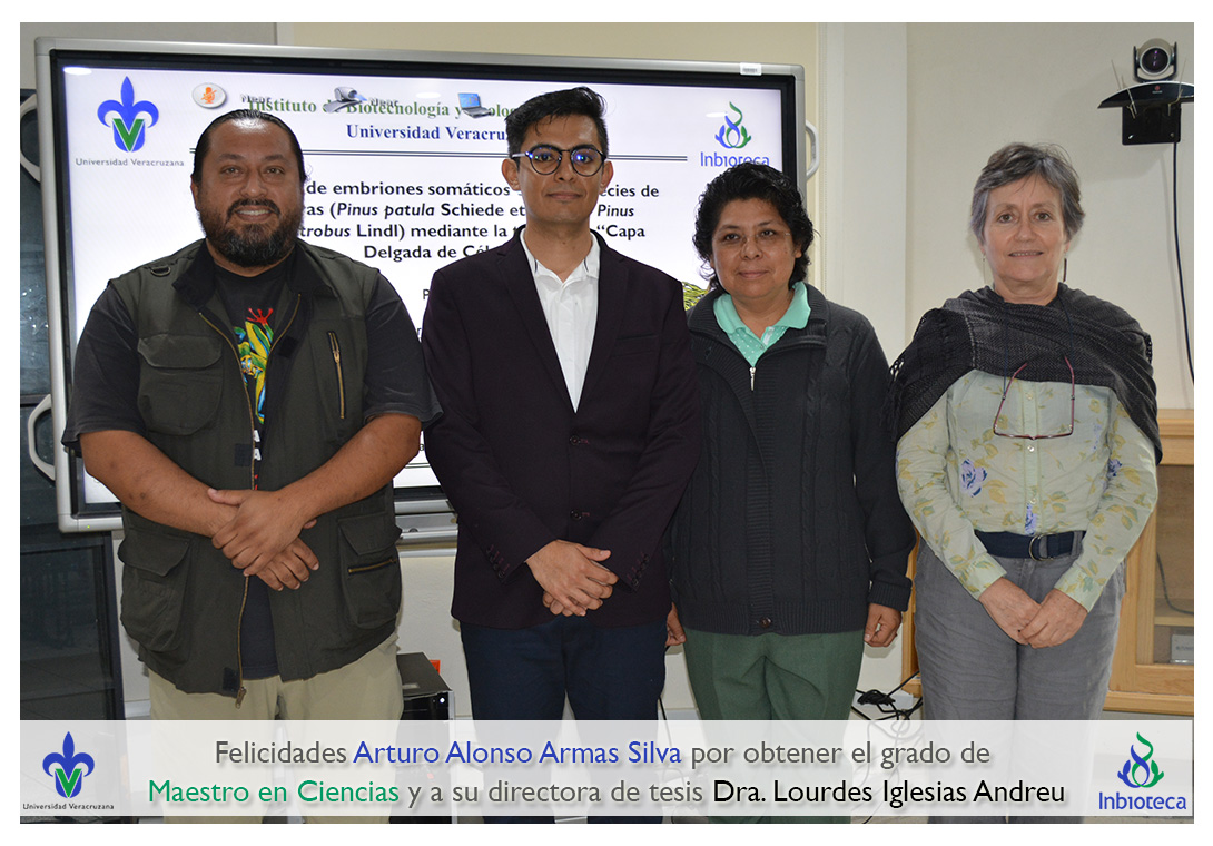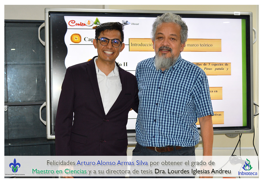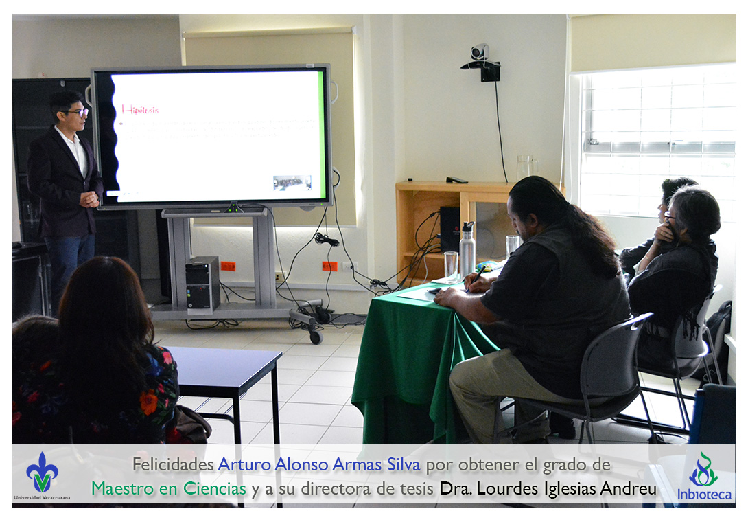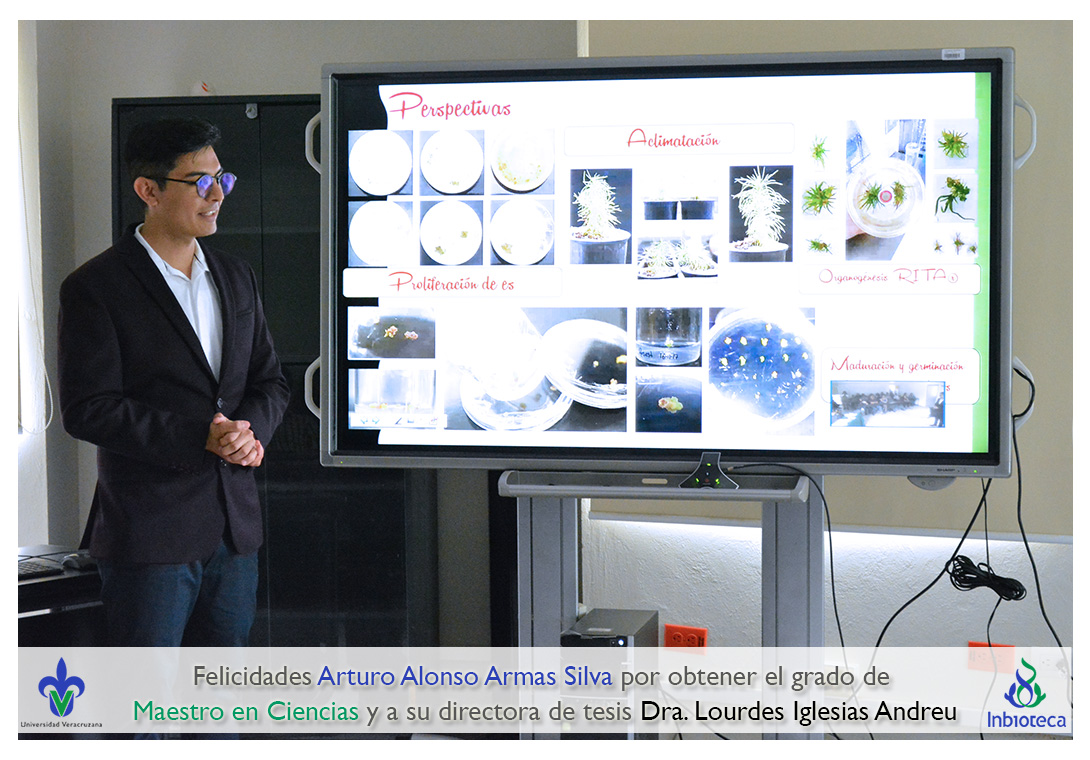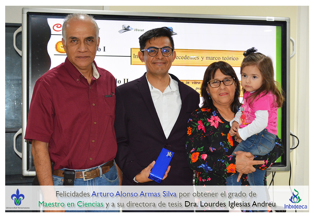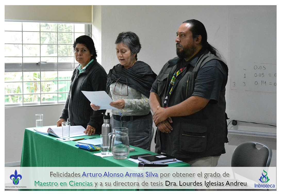 Felicidades al C. Arturo Alonso Armas Silva por obtener el grado de Maestro en Ciencias en Ecología y Biotecnología, a su directora de tesis Dra. Lourdes Georgina Iglesias Andreu, a su codirector Dr. Marco Antonio Ramírez Mosqueda, a su comité y a todos los que contribuyeron en el trabajo realizado.