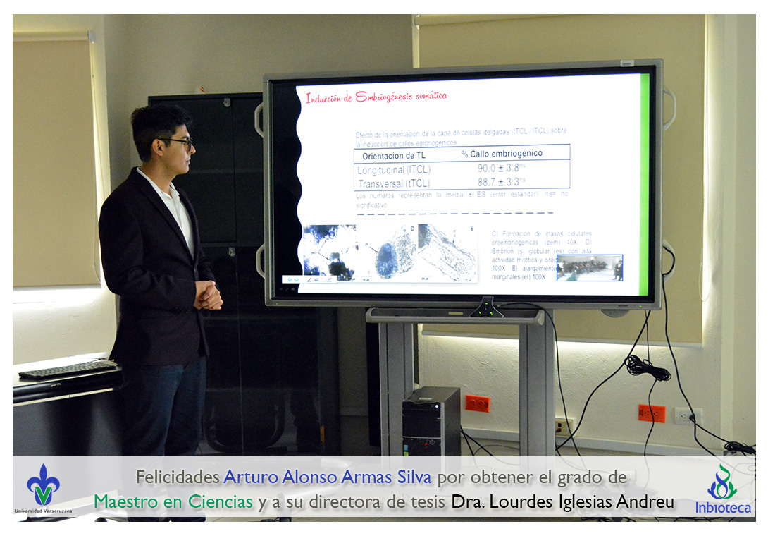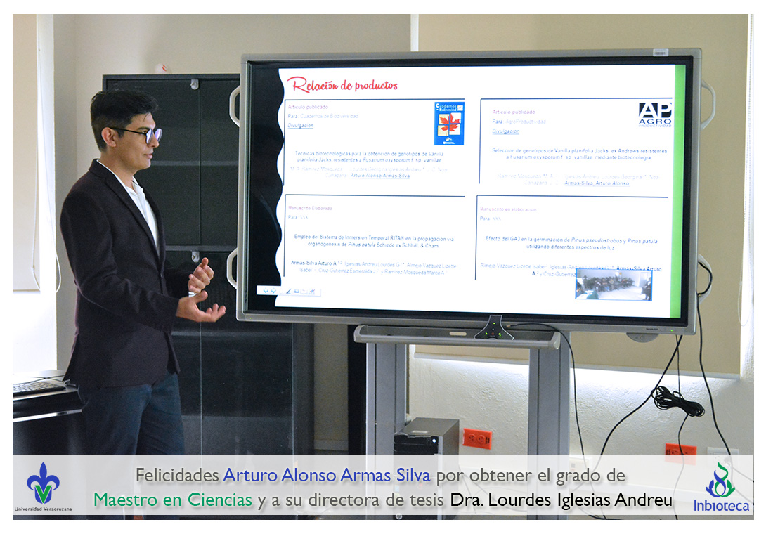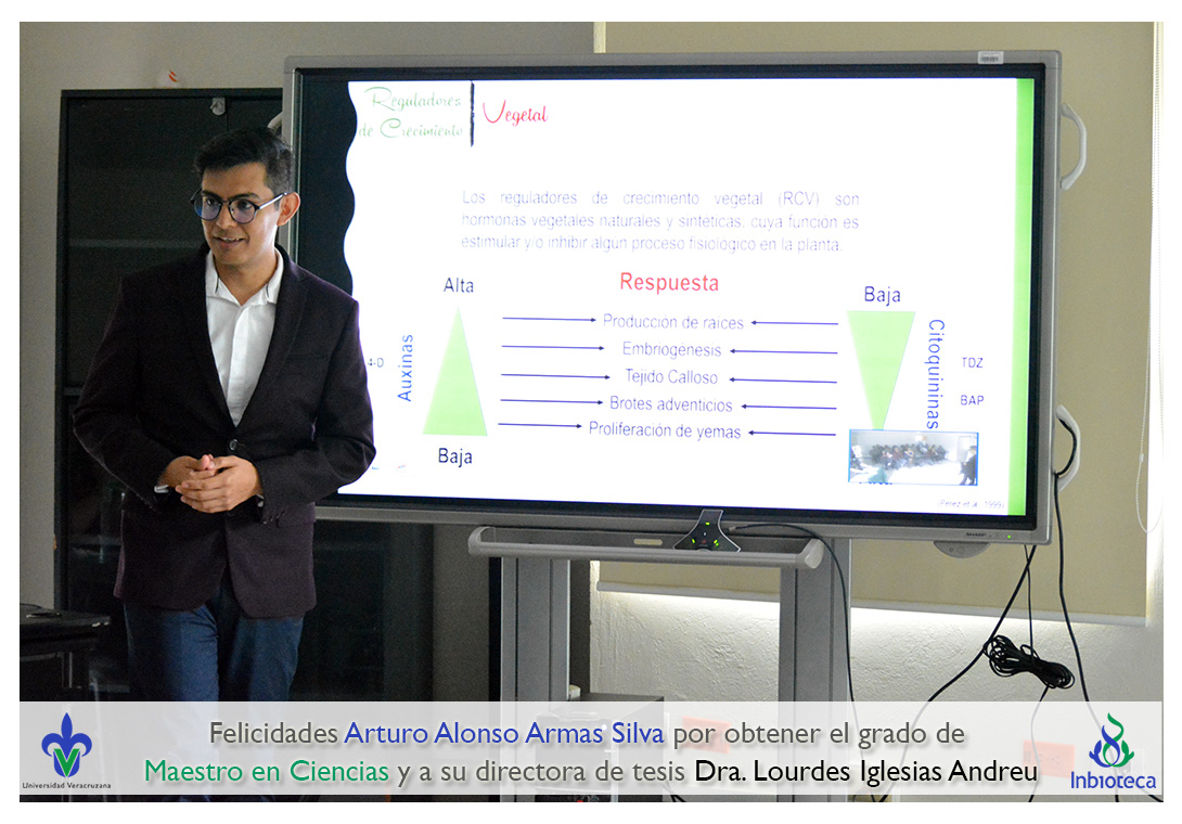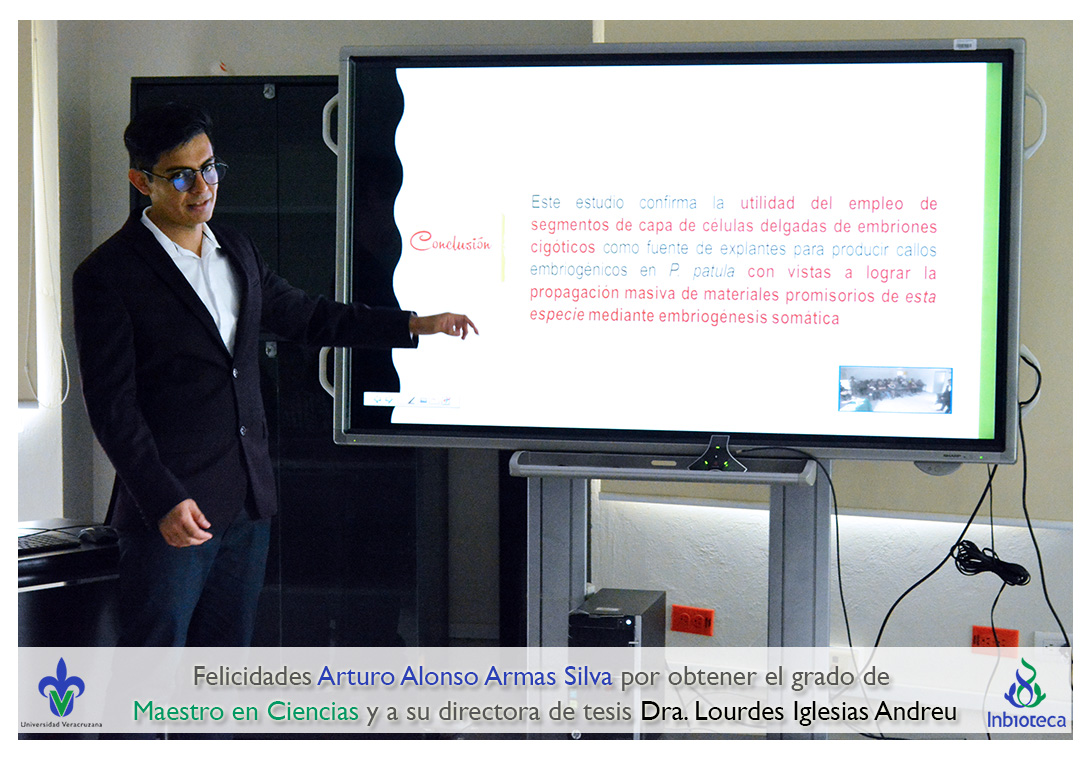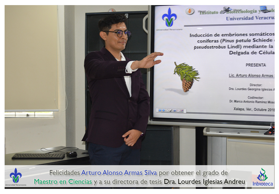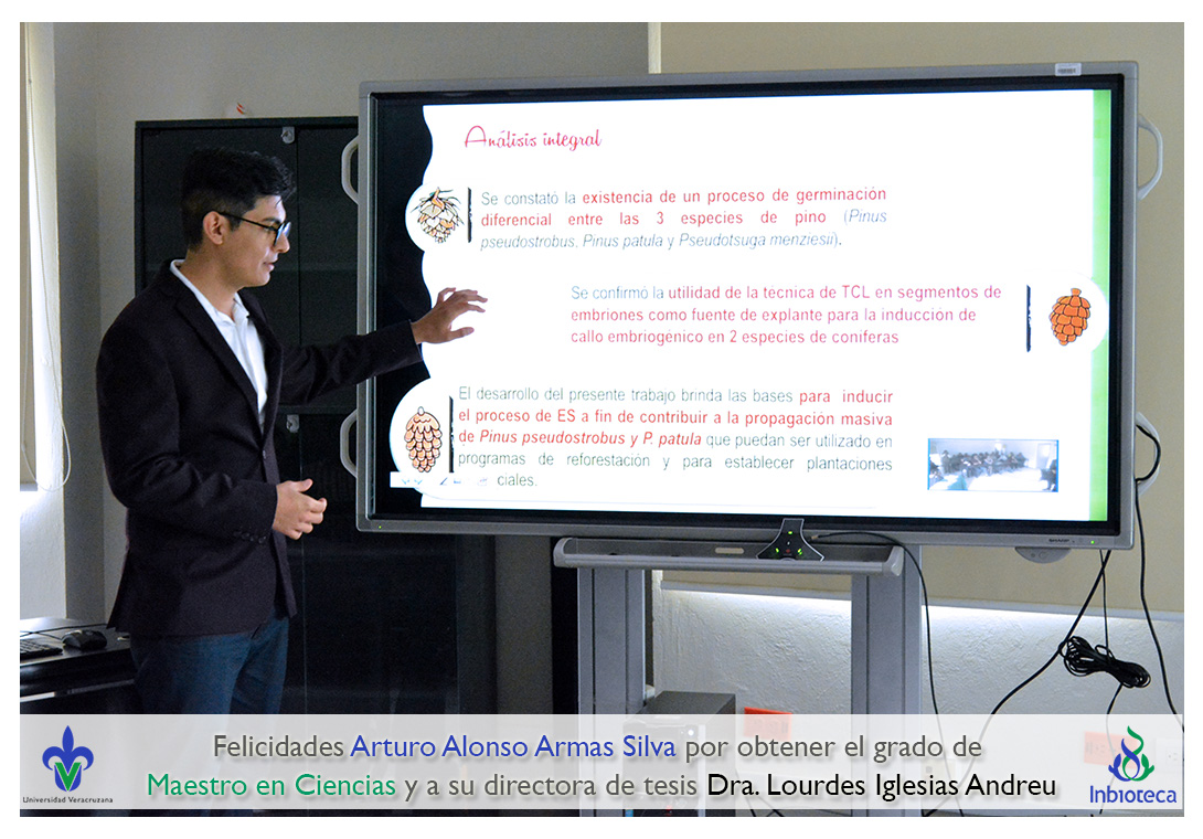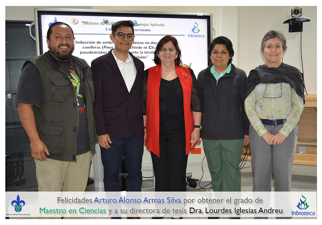 Felicidades al C. Arturo Alonso Armas Silva por obtener el grado de Maestro en Ciencias en Ecología y Biotecnología, a su directora de tesis Dra. Lourdes Georgina Iglesias Andreu, a su codirector Dr. Marco Antonio Ramírez Mosqueda, a su comité y a todos los que contribuyeron en el trabajo realizado.