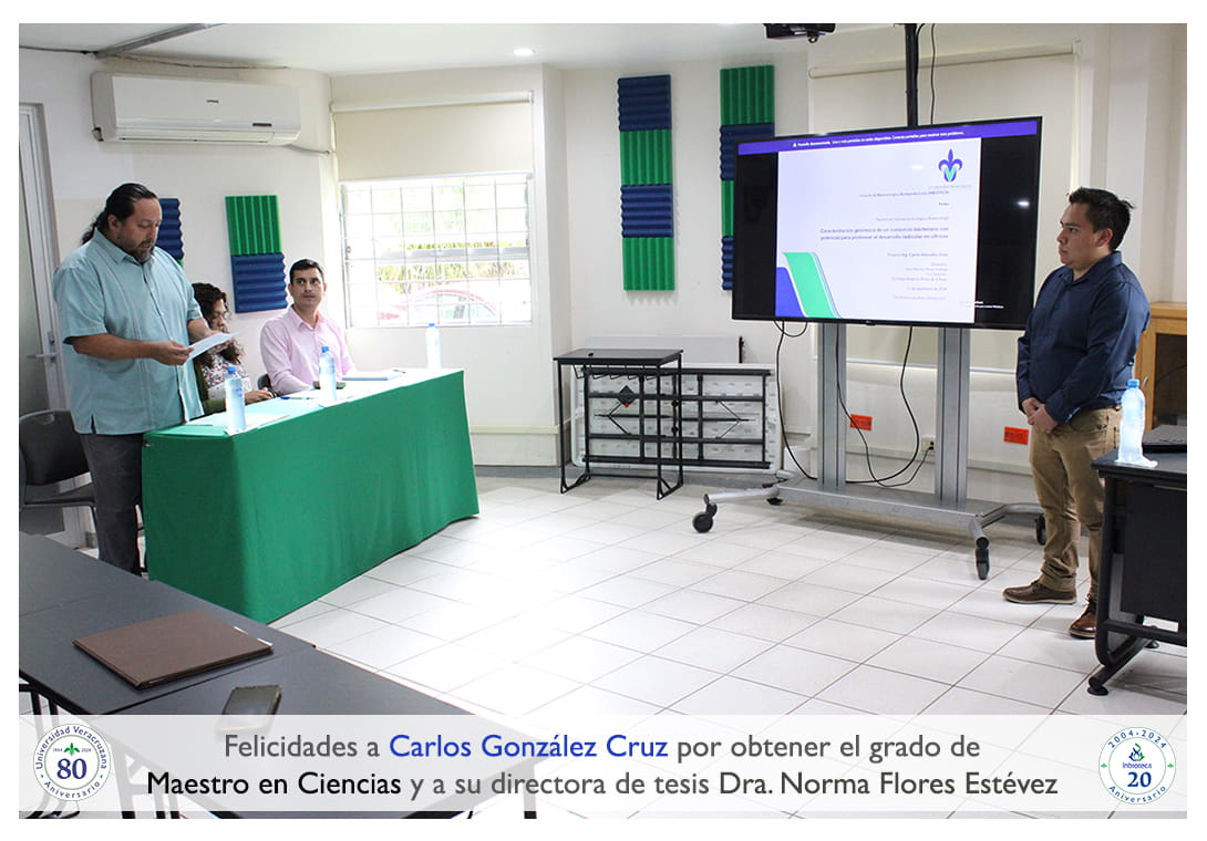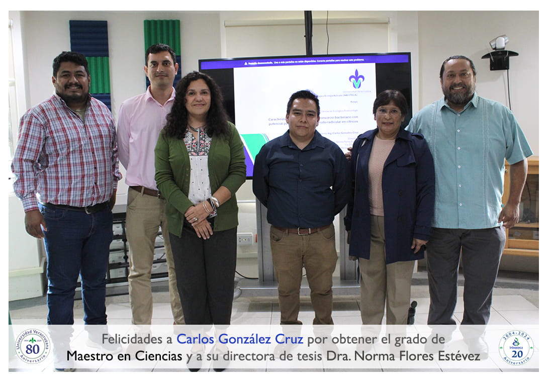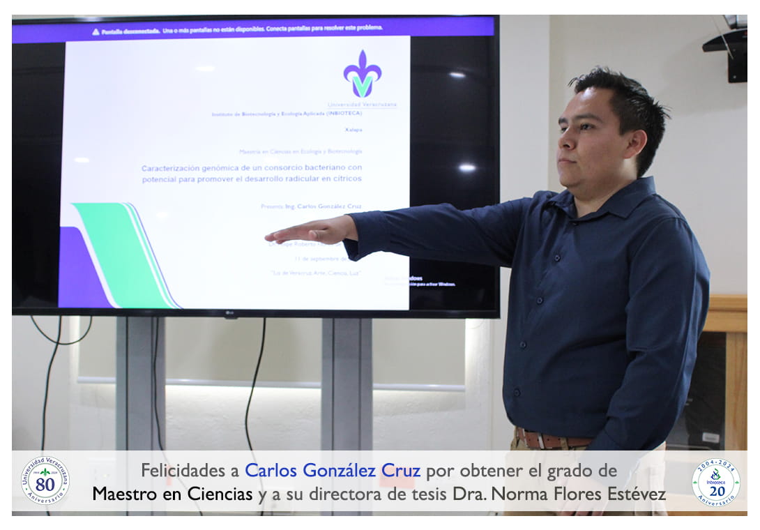 Felicidades a Carlos González Cruz por obtener por unanimidad con MENCION HONORIFICA el grado de Maestro en Ciencias en Ecología y Biotecnología, a su directora de tesis Dra. Norma Flores Estévez, a su codirector de tesis Dr. Felipe Roberto Flores de la Rosa a su comité y a todos los que contribuyeron en el trabajo realizado. ¡Enhorabuena!