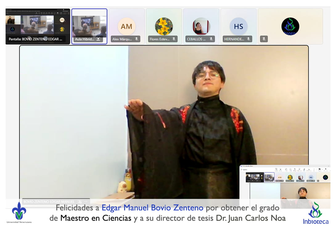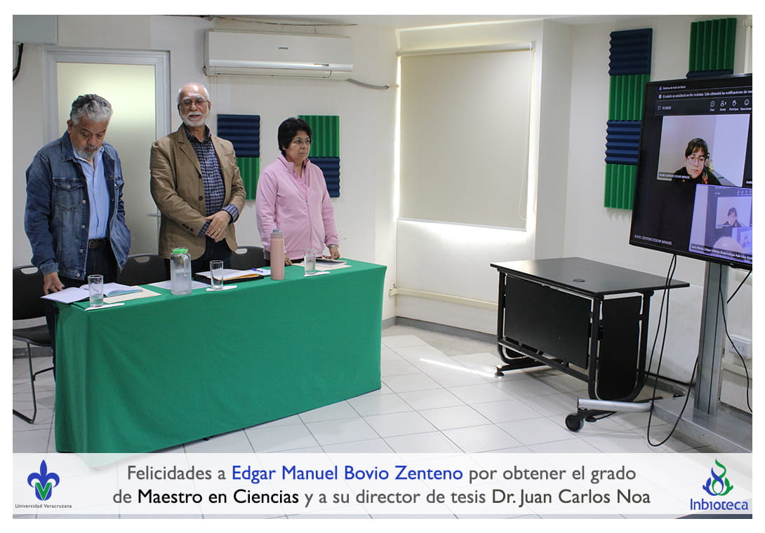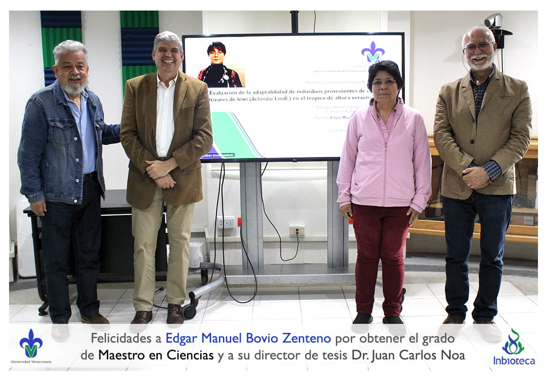 Felicidades al Biol. Edgar Manuel Bovio Zenteno por obtener por Unanimidad con MENCIÓN HONORÍFICA el grado de Maestro en Ciencias en Ecología y Biotecnología, a su Director de tesis Dr. Juan Carlos Noa Carrazana, a su Codirector Dr. Benito Hernández Castellanos de la Facultad de Biología – UV, a su comité y a todos los que contribuyeron en el trabajo realizado. ¡Enhorabuena!