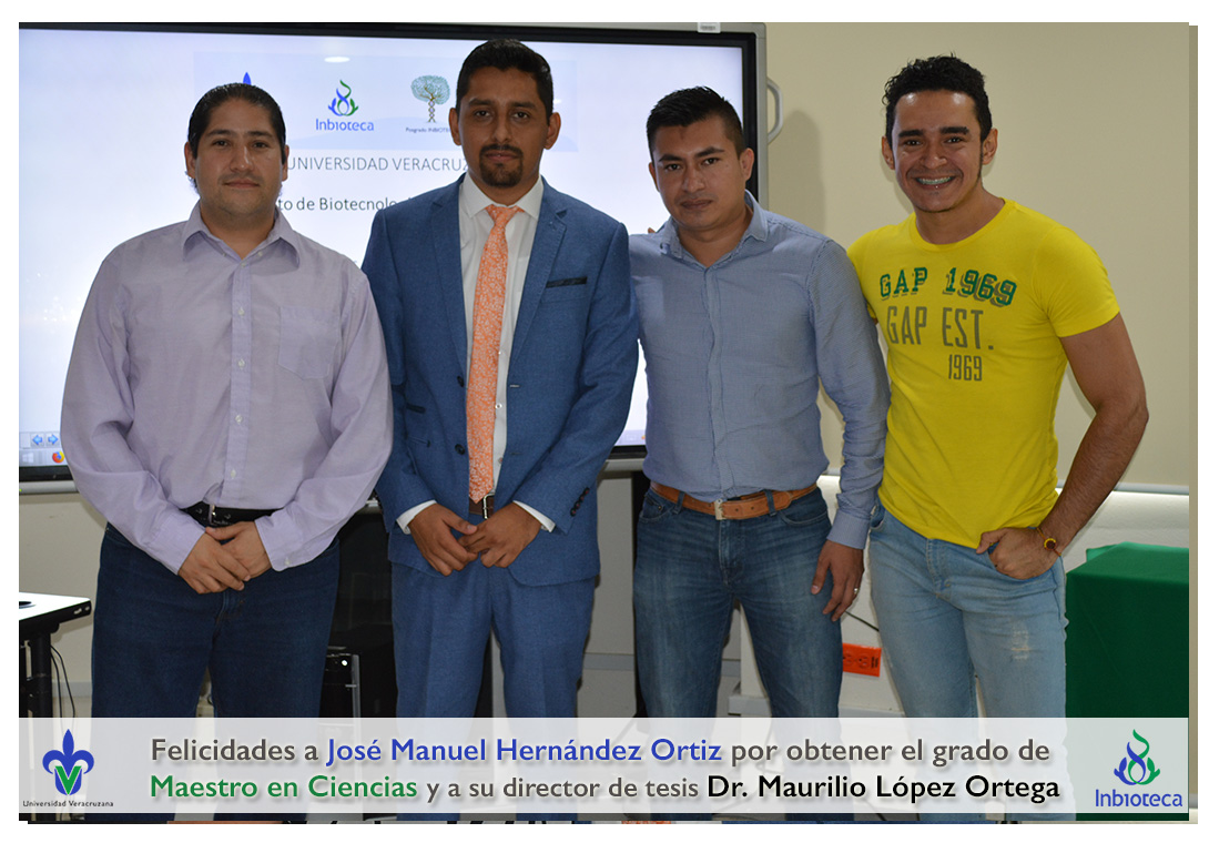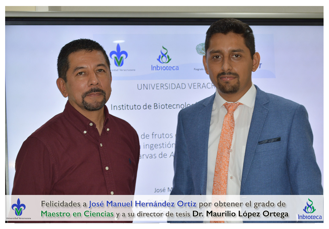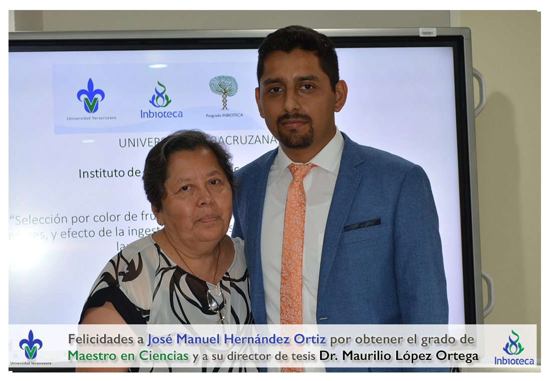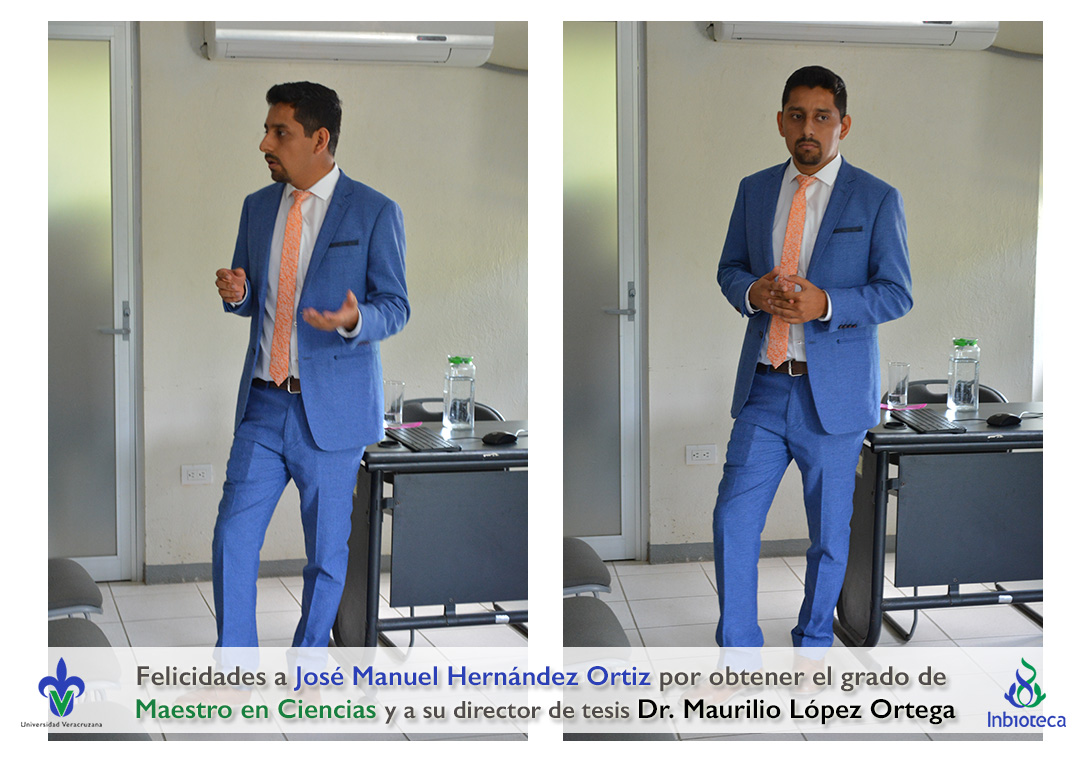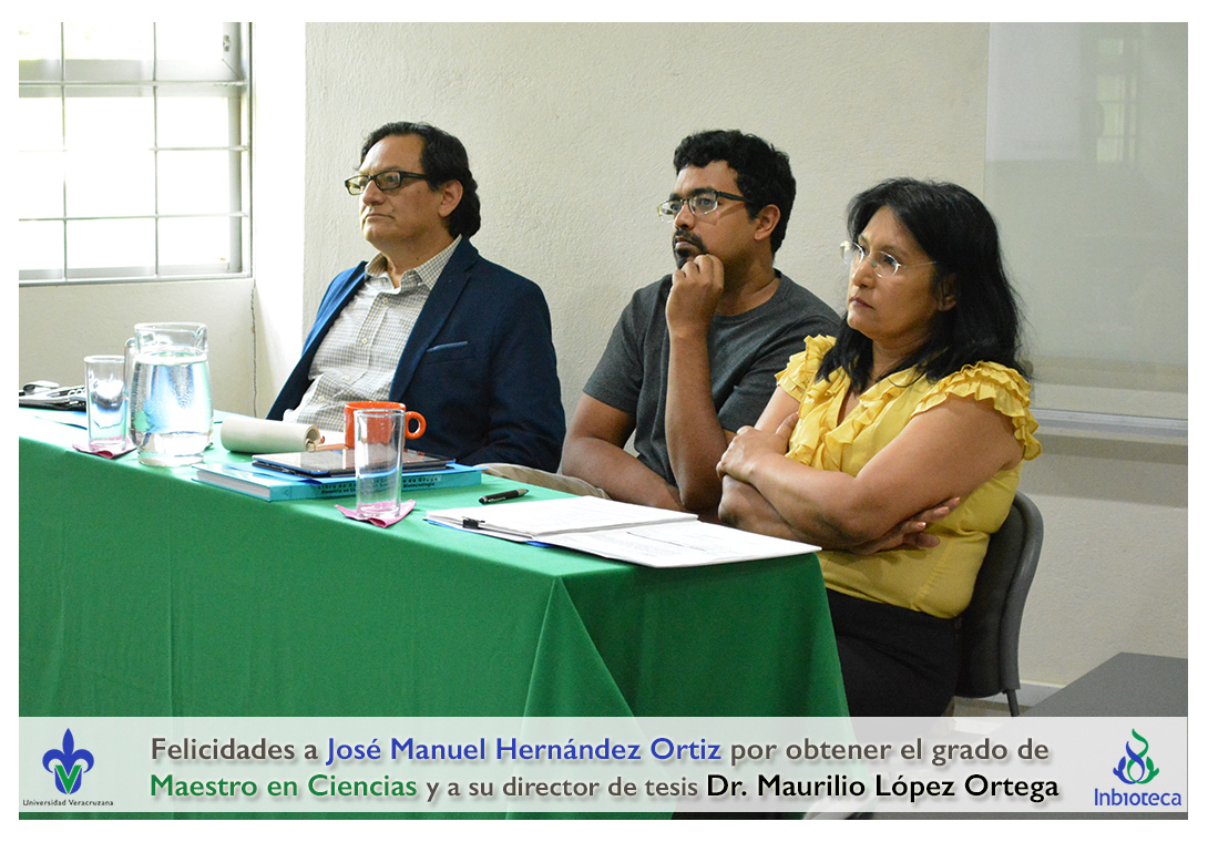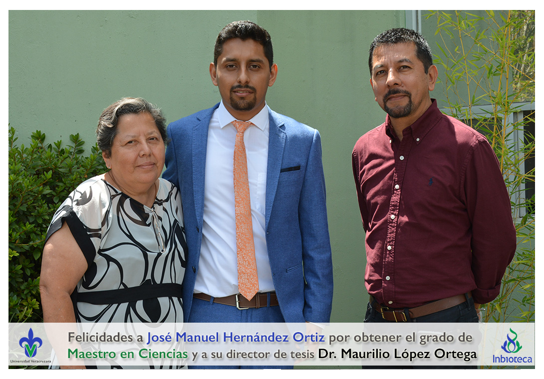 Felicidades a José Manuel Hernández Ortiz por obtener el grado de Maestro en Ciencias en Ecología y Biotecnología, a su director de tesis Dr. Maurilio López Ortega, a su codirector Dr. Julio C. Rojas Ortega, a su comité y a todos los que contribuyeron en el trabajo realizado.