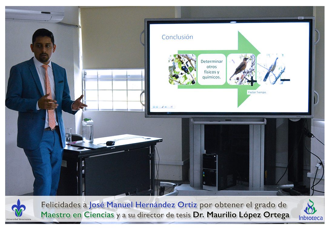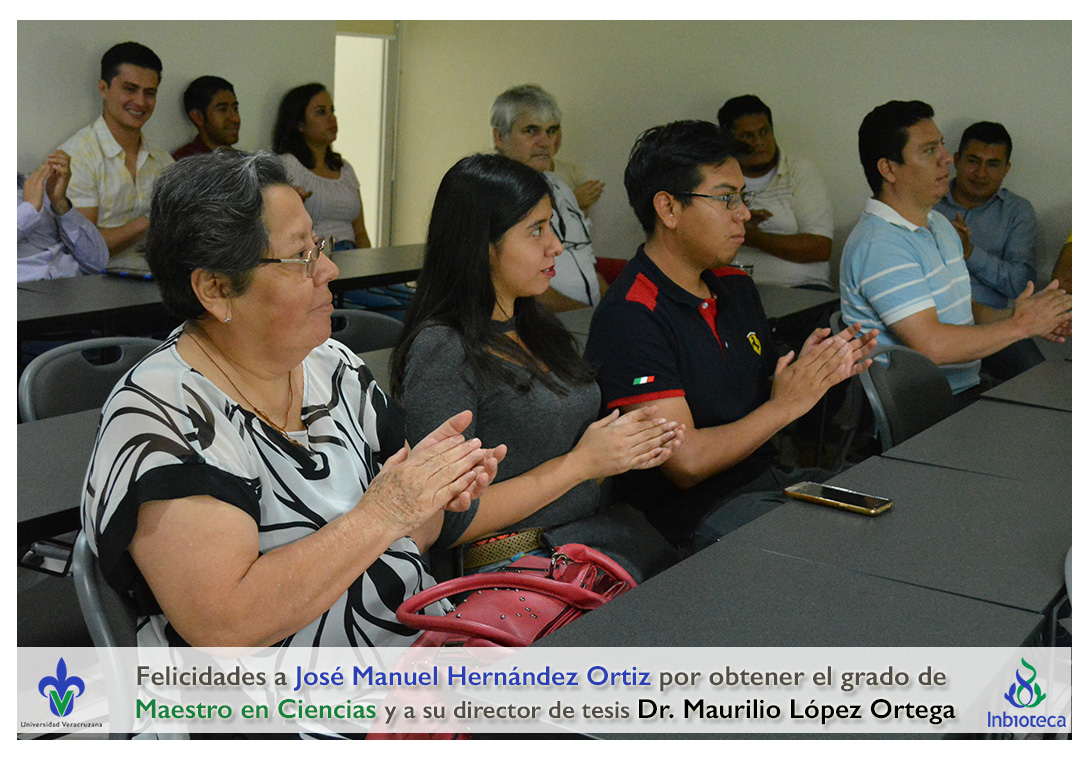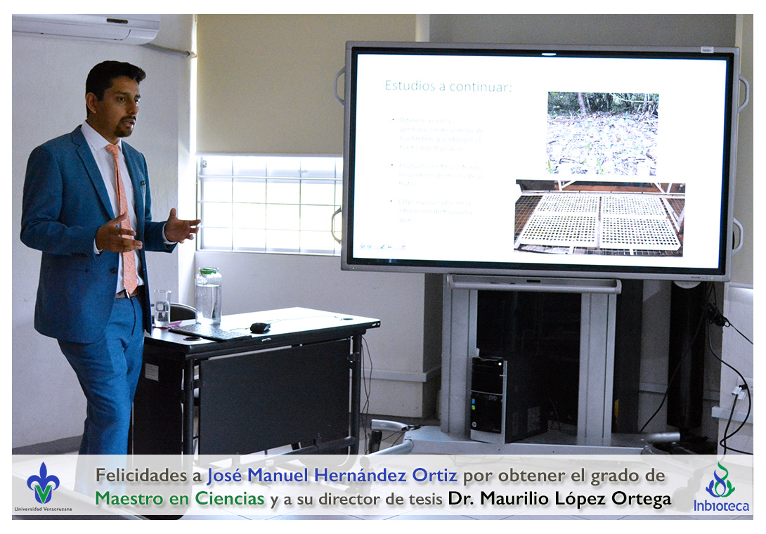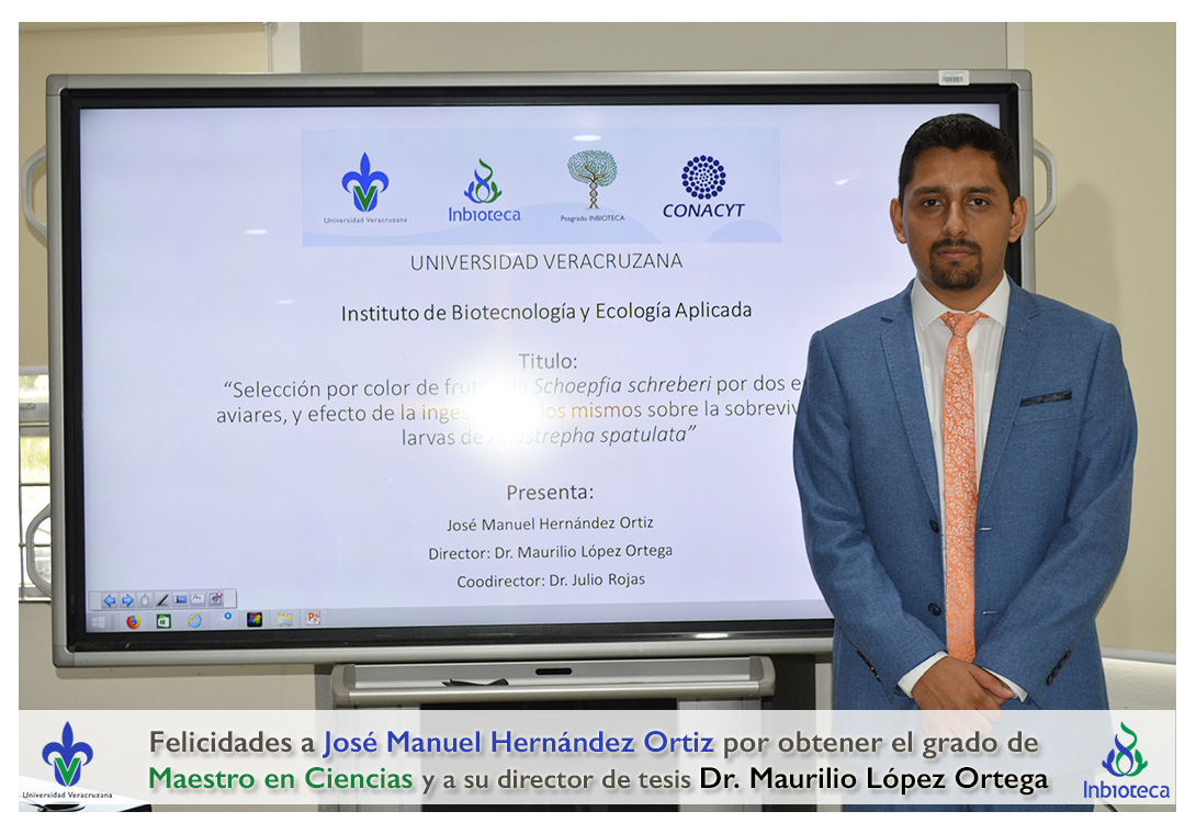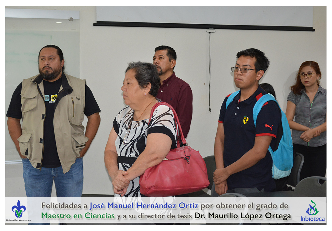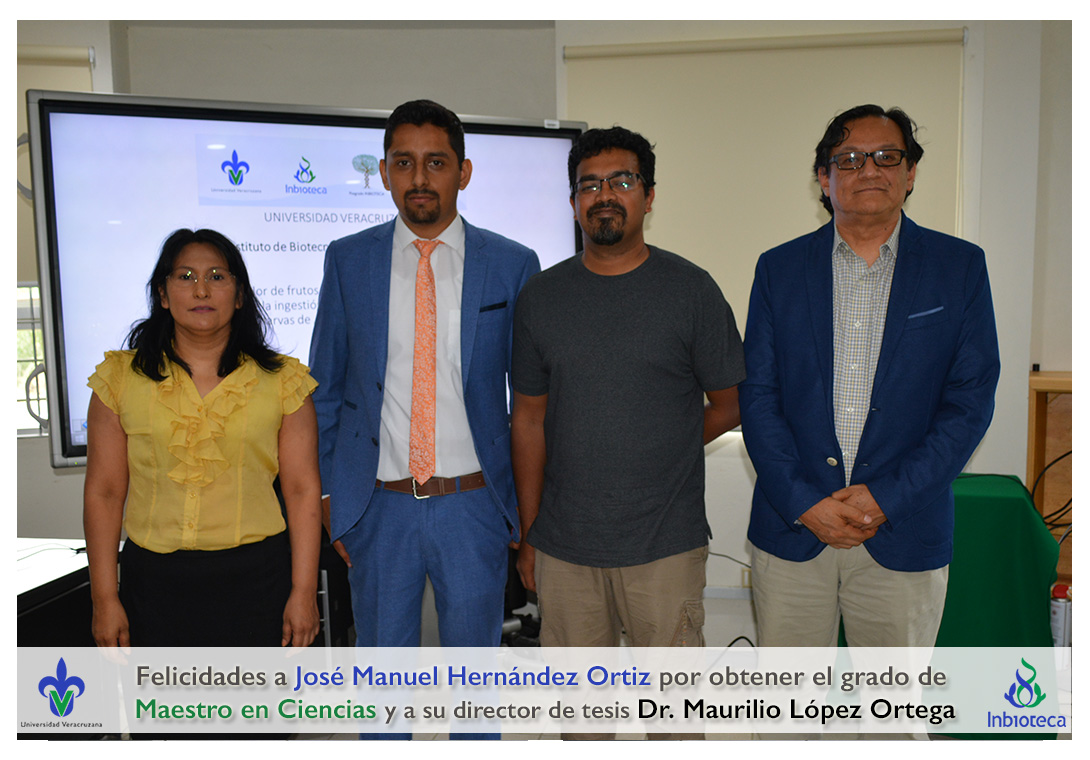 Felicidades a José Manuel Hernández Ortiz por obtener el grado de Maestro en Ciencias en Ecología y Biotecnología, a su director de tesis Dr. Maurilio López Ortega, a su codirector Dr. Julio C. Rojas Ortega, a su comité y a todos los que contribuyeron en el trabajo realizado.