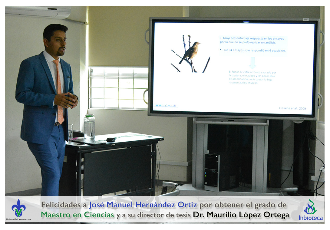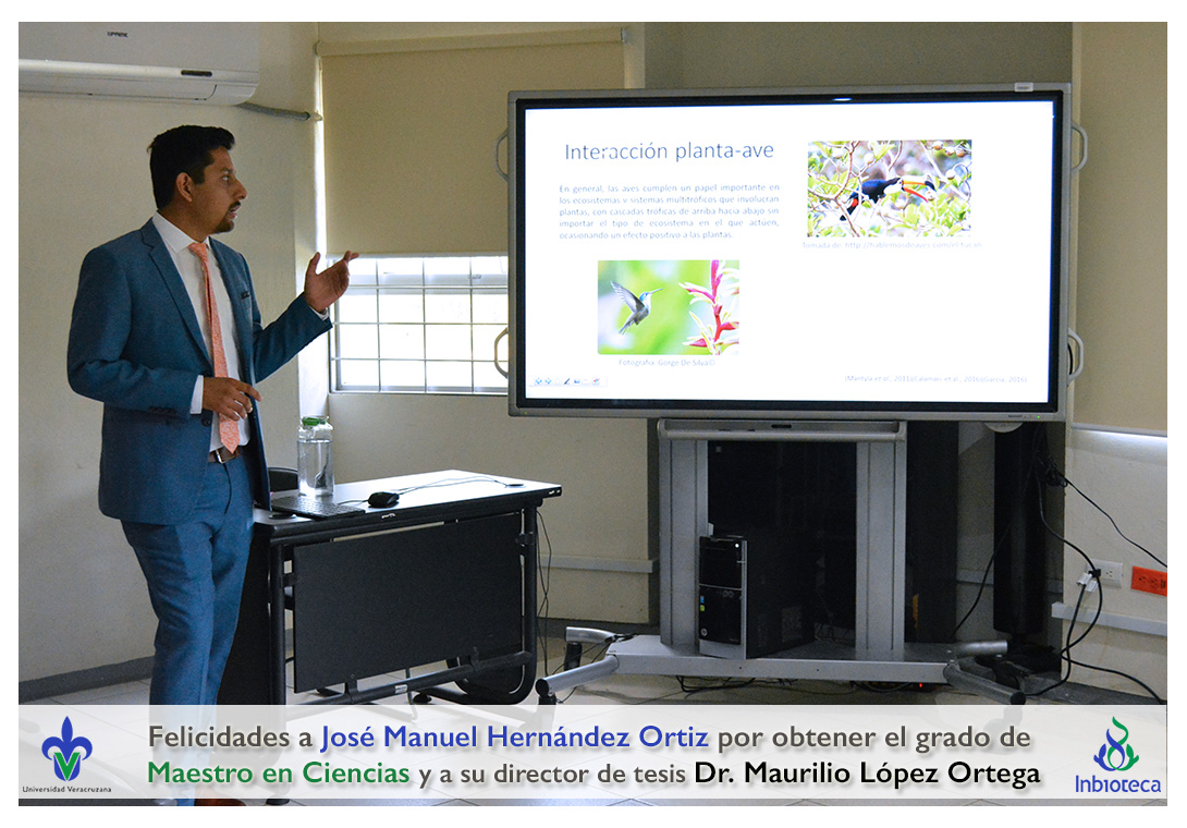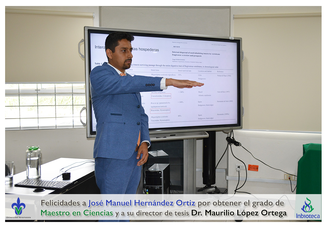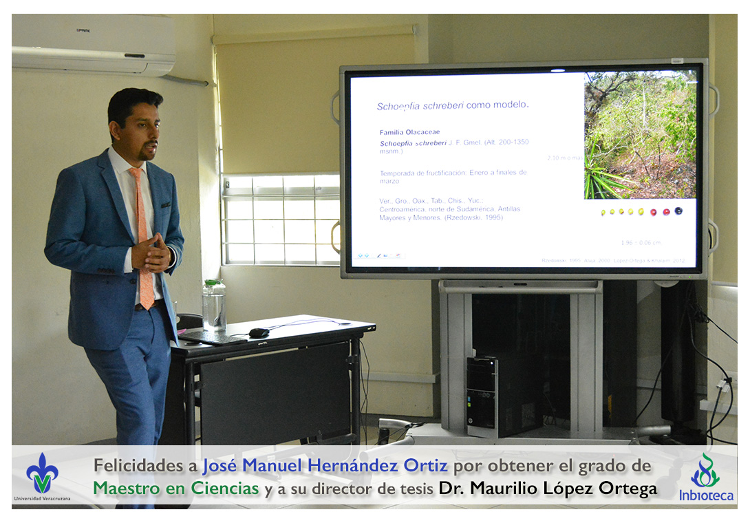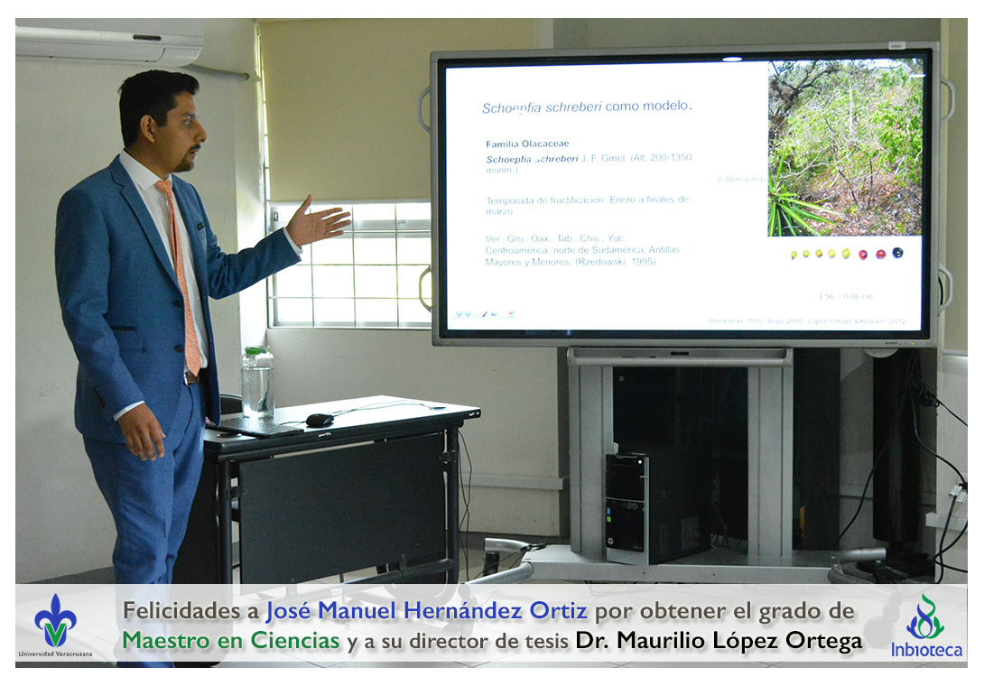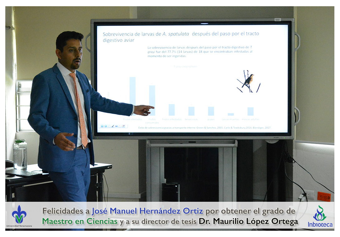 Felicidades a José Manuel Hernández Ortiz por obtener el grado de Maestro en Ciencias en Ecología y Biotecnología, a su director de tesis Dr. Maurilio López Ortega, a su codirector Dr. Julio C. Rojas Ortega, a su comité y a todos los que contribuyeron en el trabajo realizado.