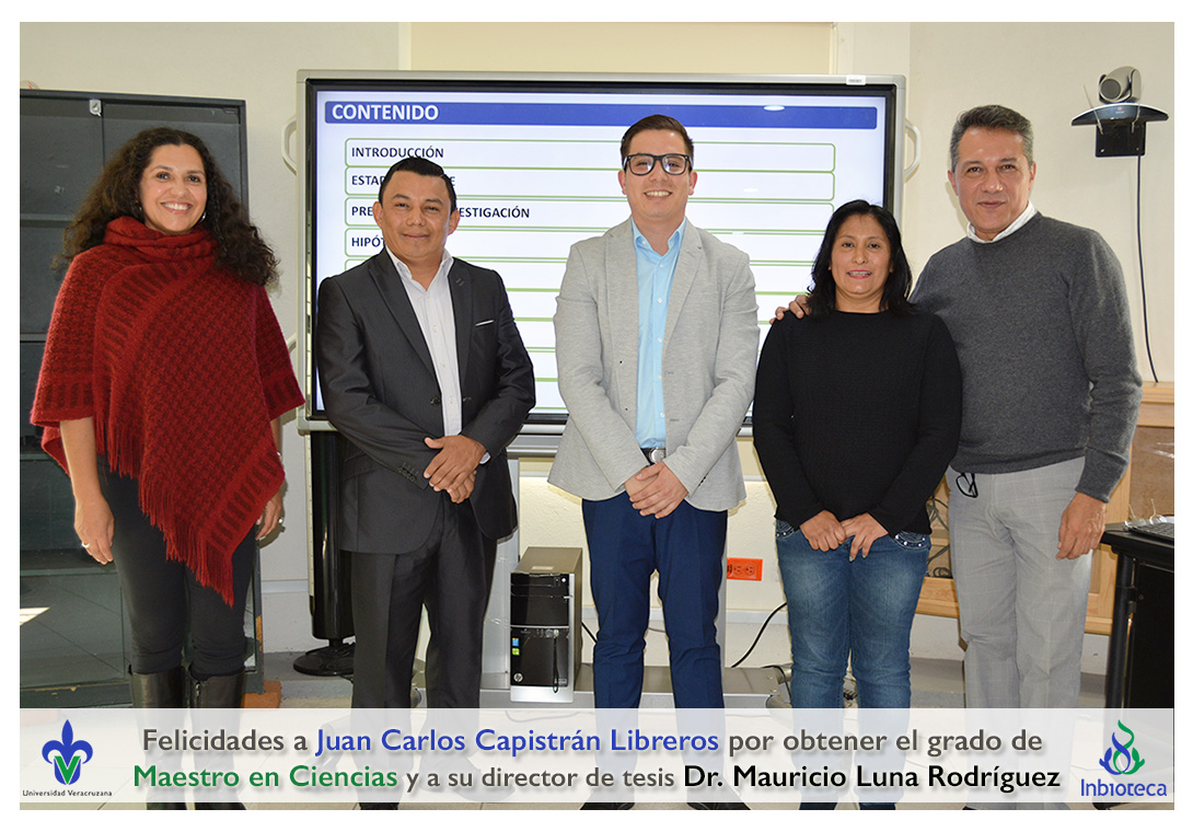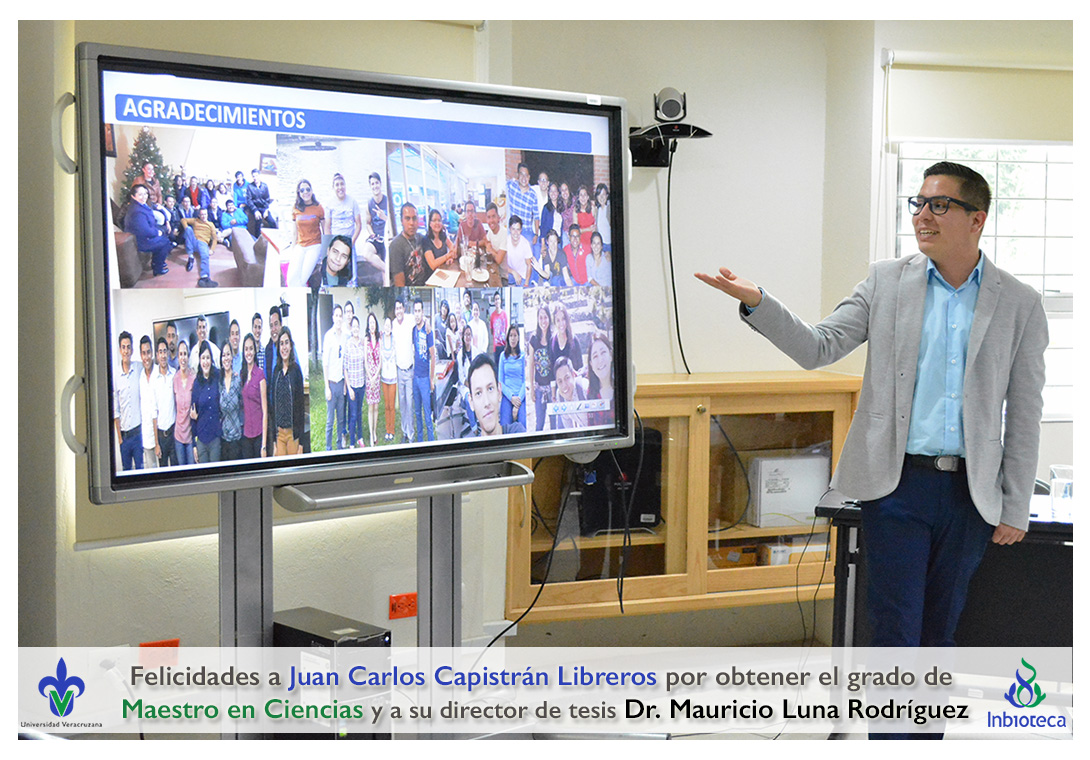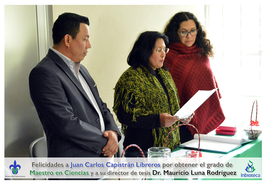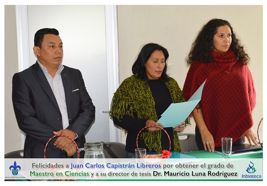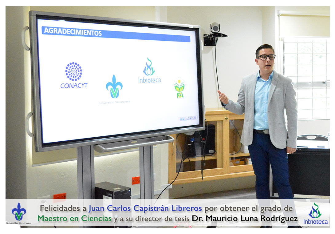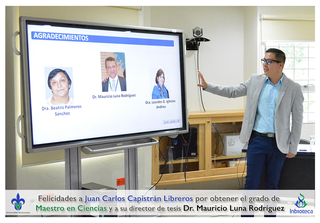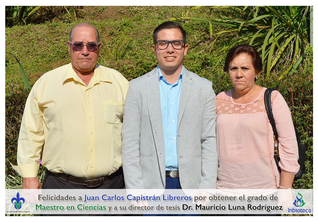 Felicidades a Juan Carlos Capistrán Libreros por obtener el grado de Maestro en Ciencias en Ecología y Biotecnología, a su director de tesis Dr. Mauricio Luna Rodríguez, a su comité y a todos los que contribuyeron en el trabajo realizado. ¡Enhorabuena!