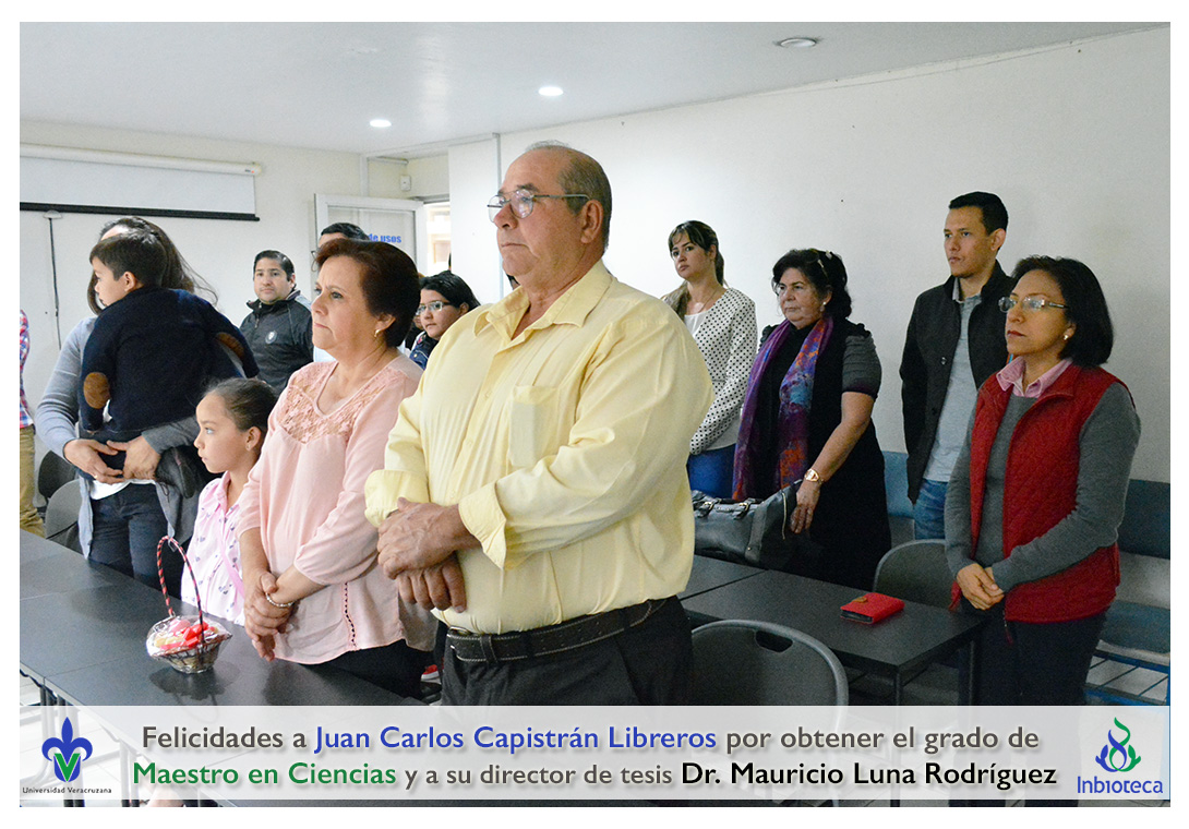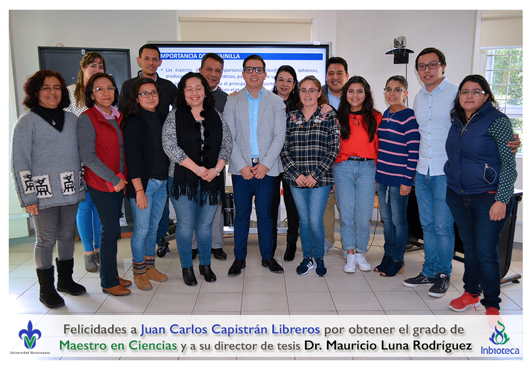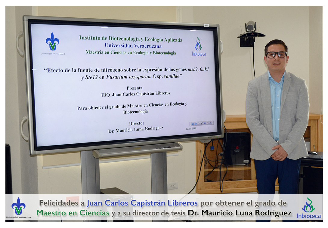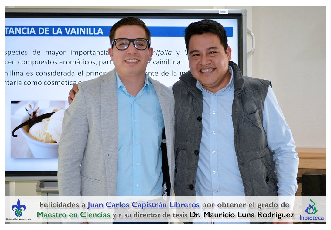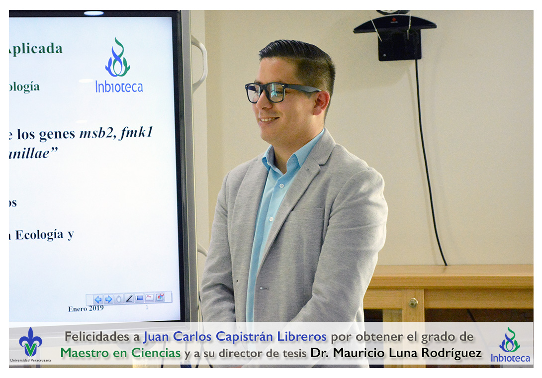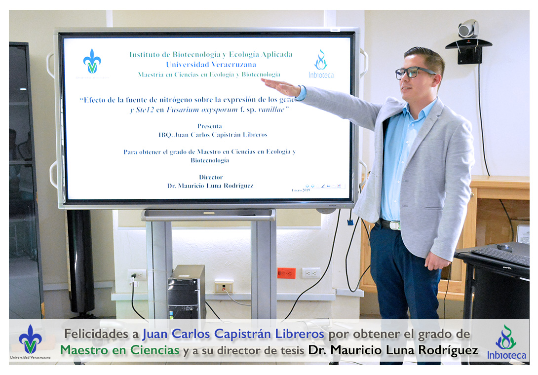 Felicidades a Juan Carlos Capistrán Libreros por obtener el grado de Maestro en Ciencias en Ecología y Biotecnología, a su director de tesis Dr. Mauricio Luna Rodríguez, a su comité y a todos los que contribuyeron en el trabajo realizado. ¡Enhorabuena!