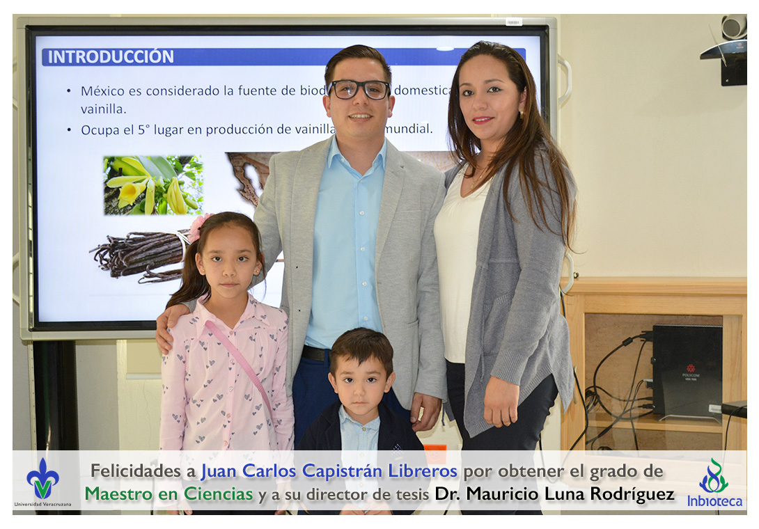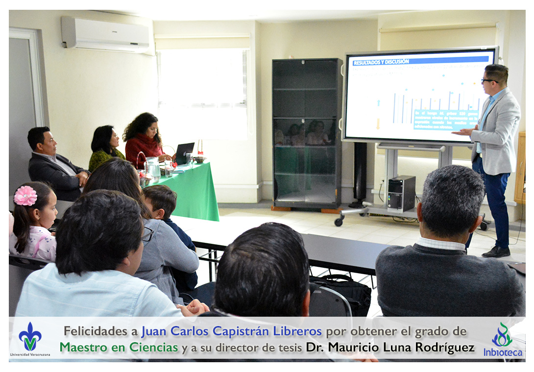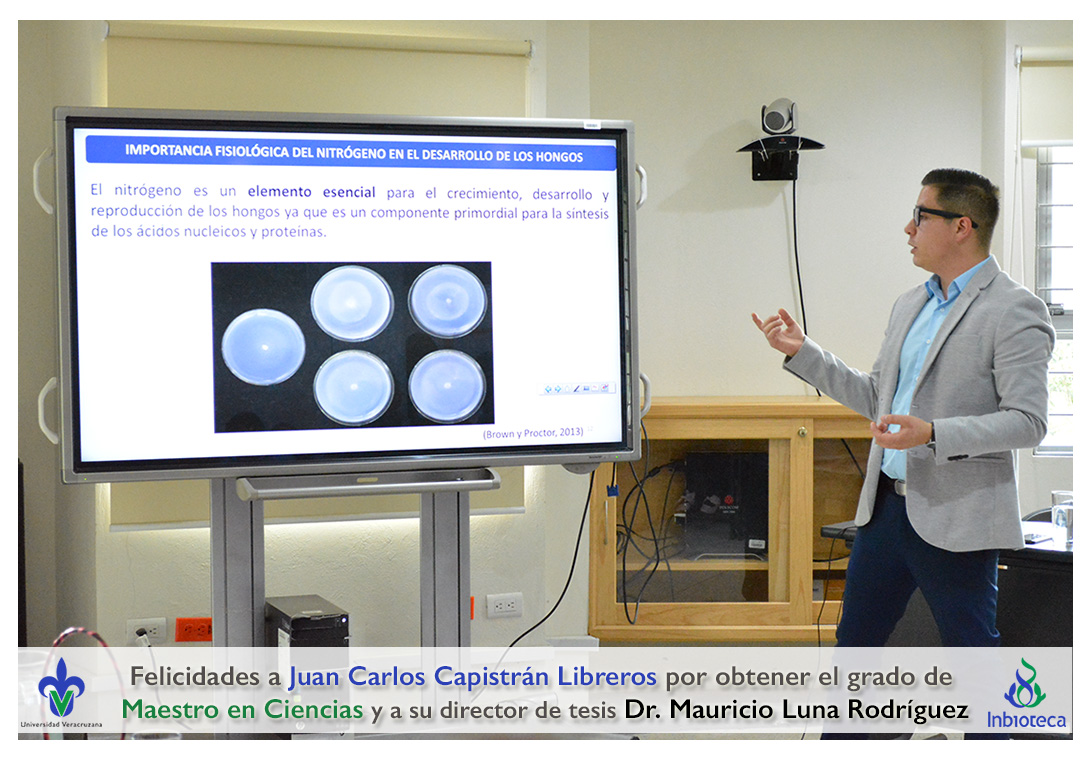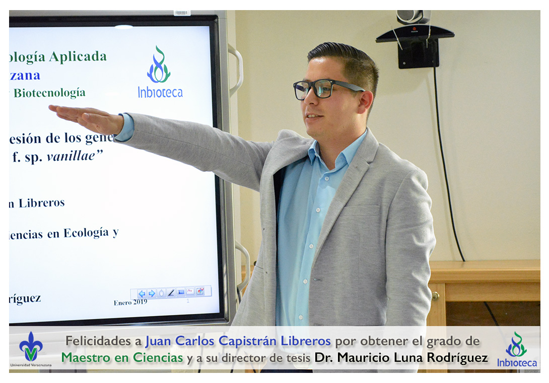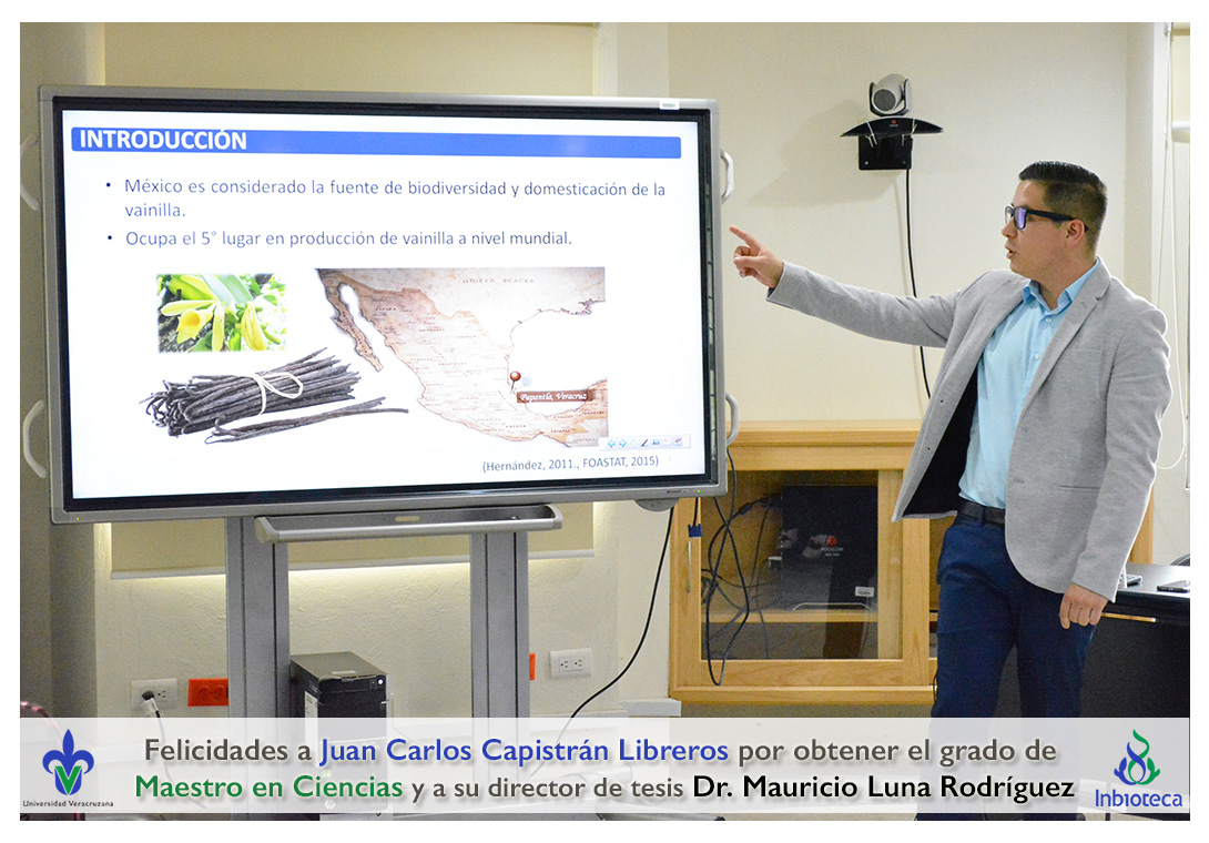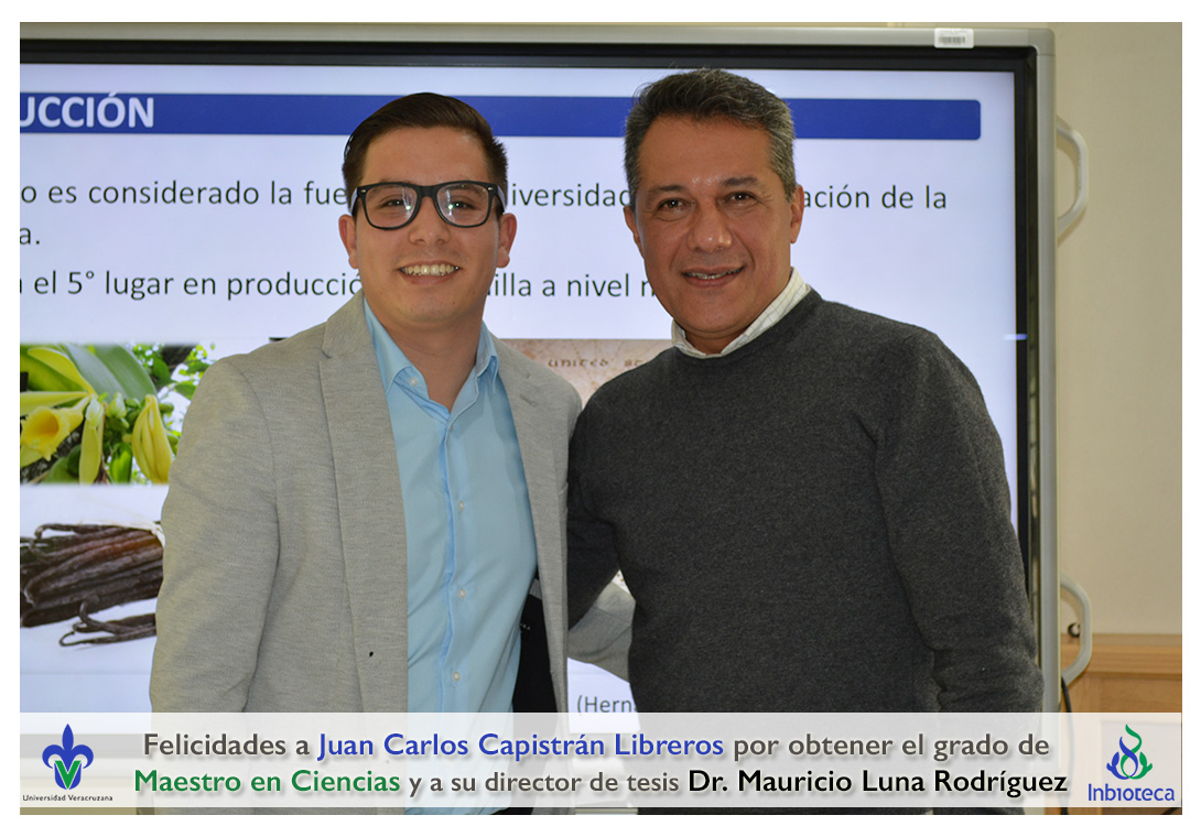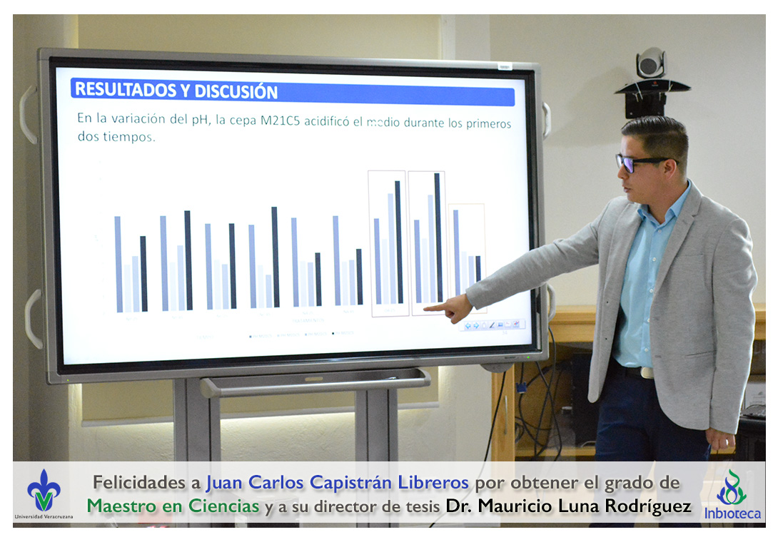 Felicidades a Juan Carlos Capistrán Libreros por obtener el grado de Maestro en Ciencias en Ecología y Biotecnología, a su director de tesis Dr. Mauricio Luna Rodríguez, a su comité y a todos los que contribuyeron en el trabajo realizado. ¡Enhorabuena!