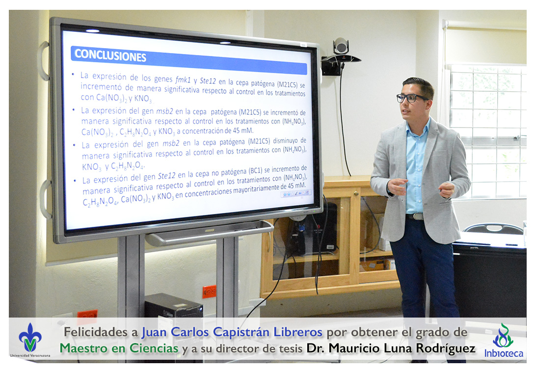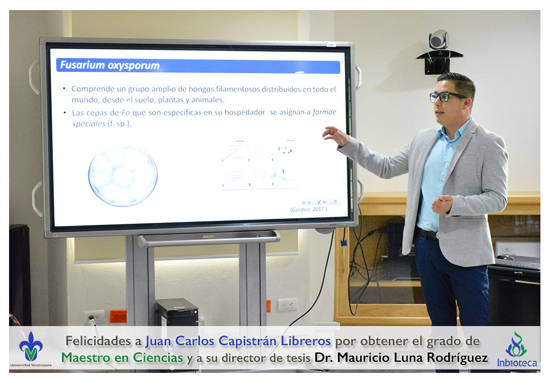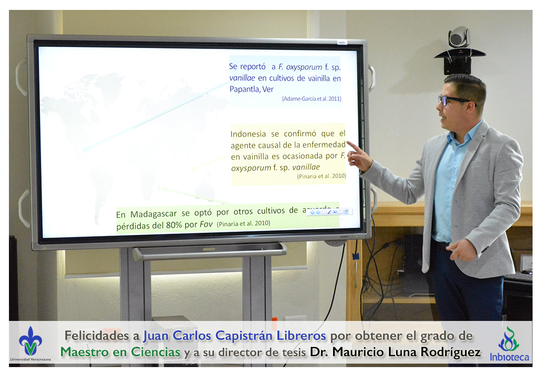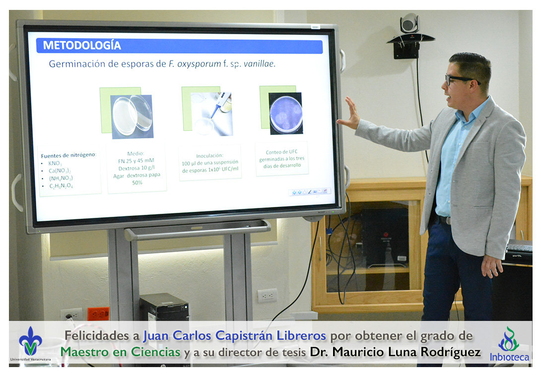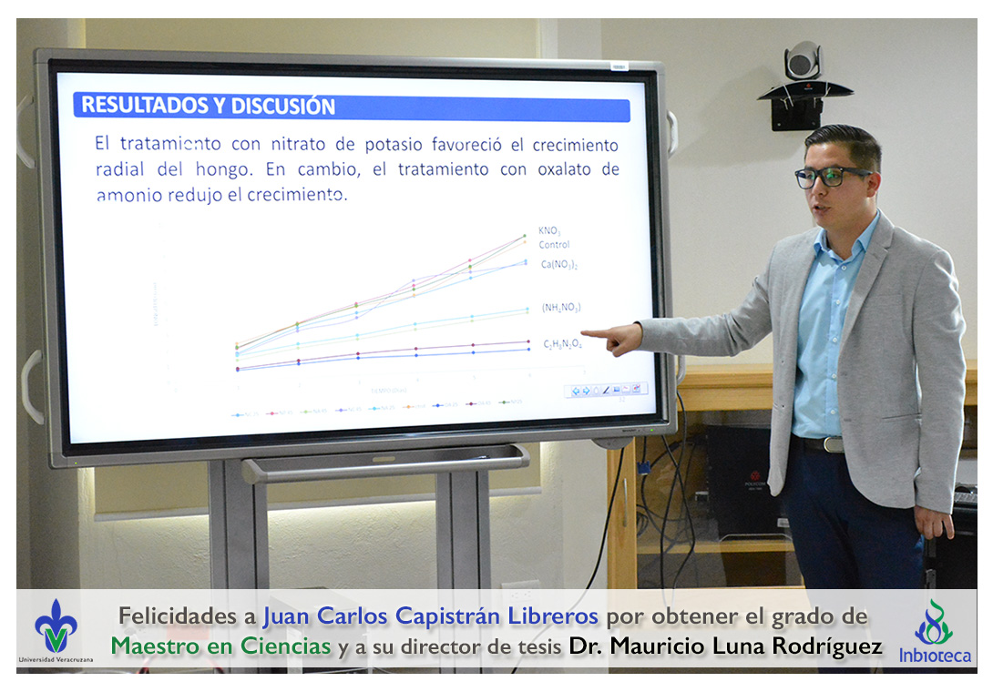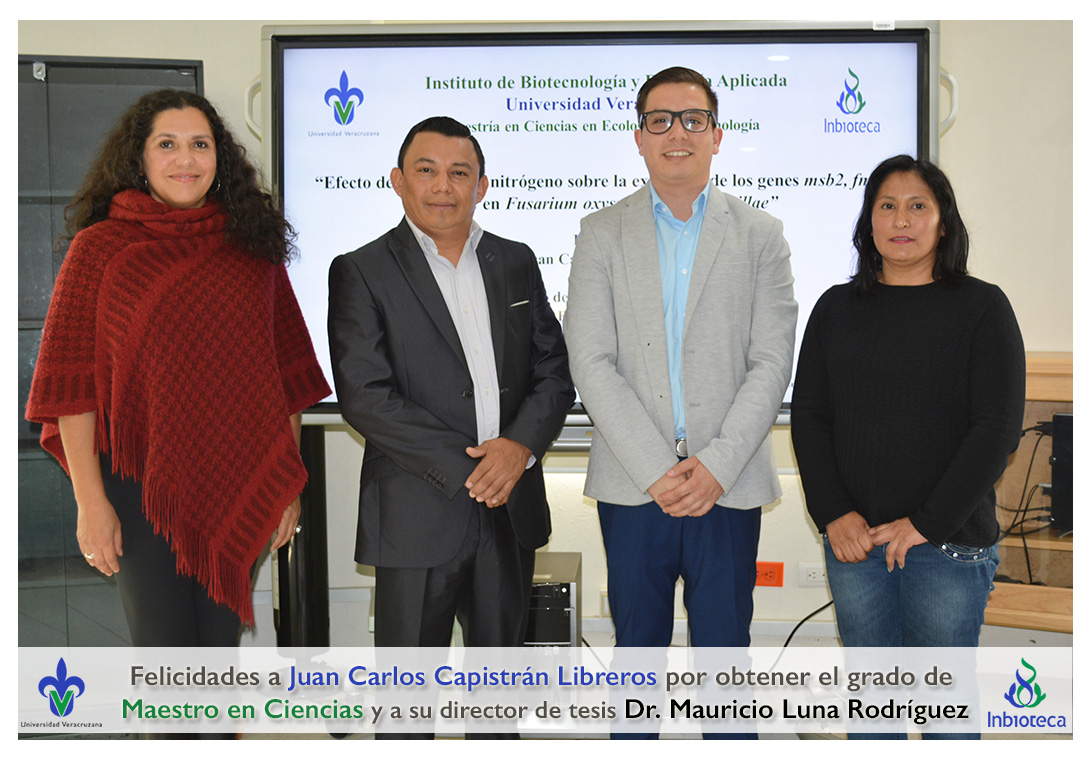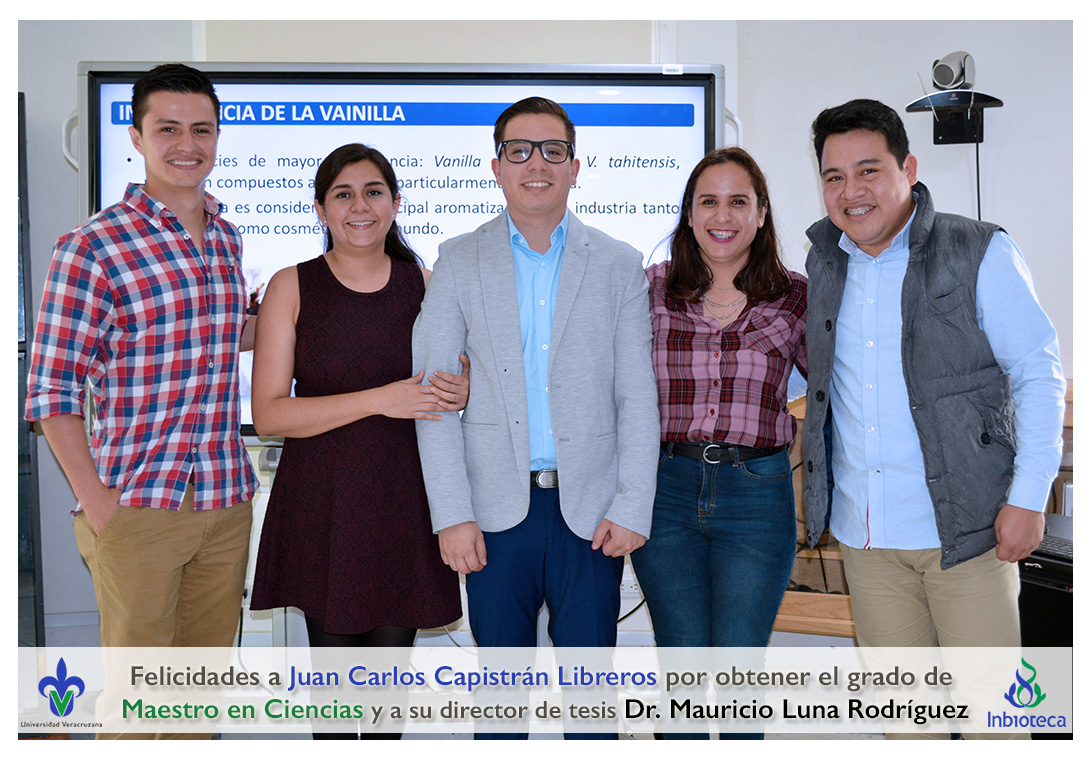 Felicidades a Juan Carlos Capistrán Libreros por obtener el grado de Maestro en Ciencias en Ecología y Biotecnología, a su director de tesis Dr. Mauricio Luna Rodríguez, a su comité y a todos los que contribuyeron en el trabajo realizado. ¡Enhorabuena!