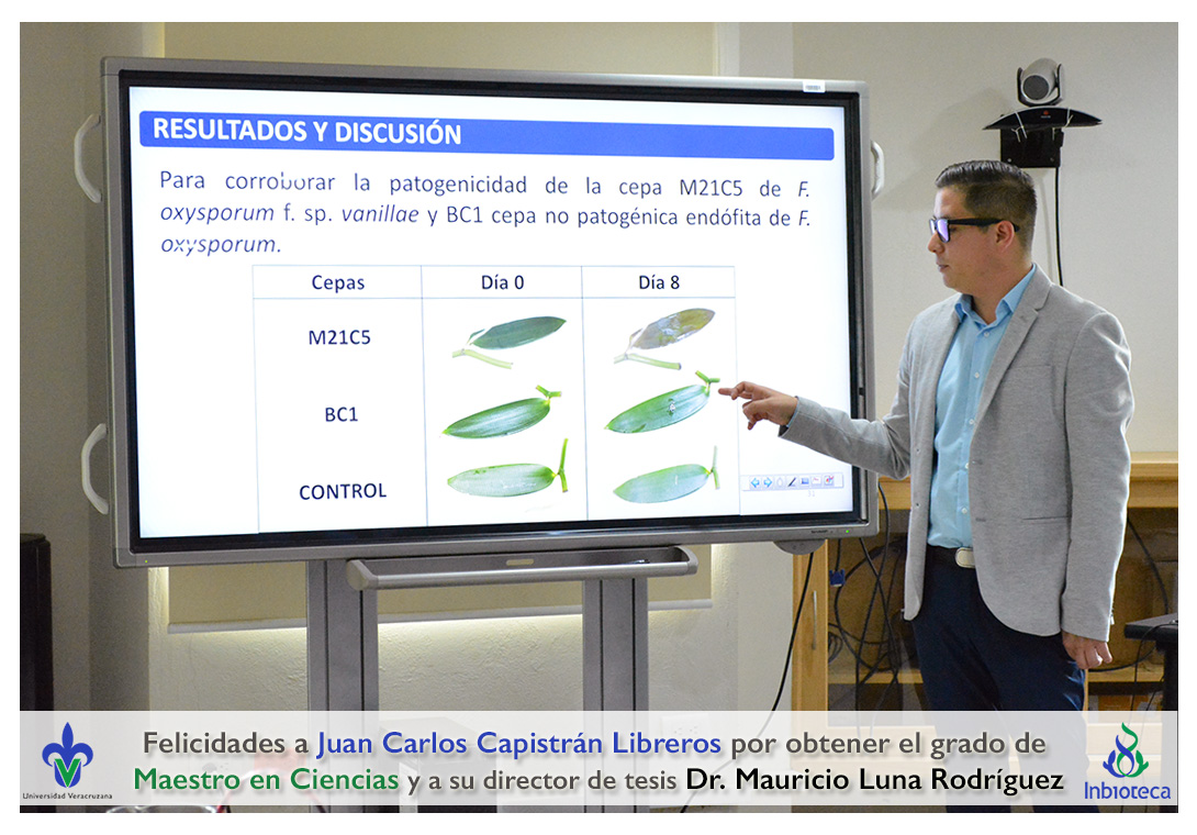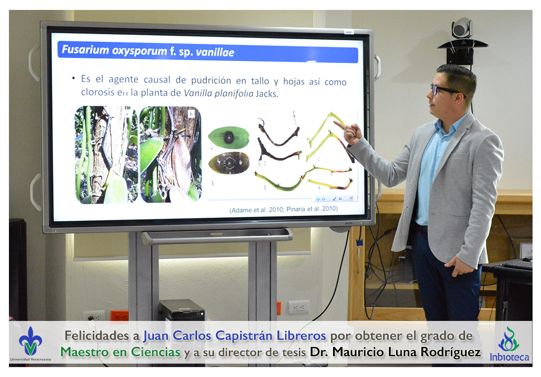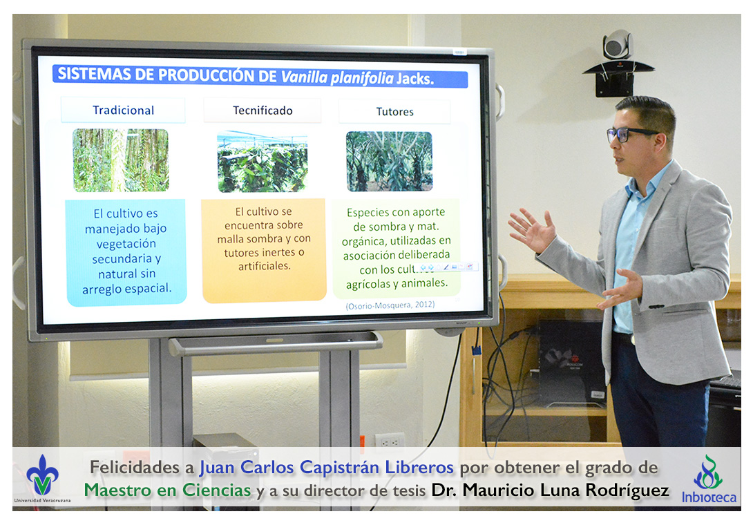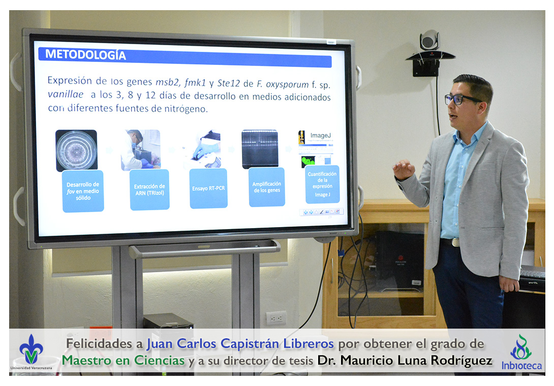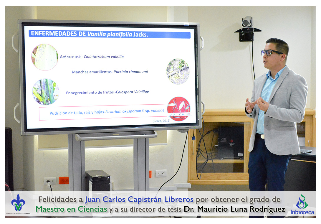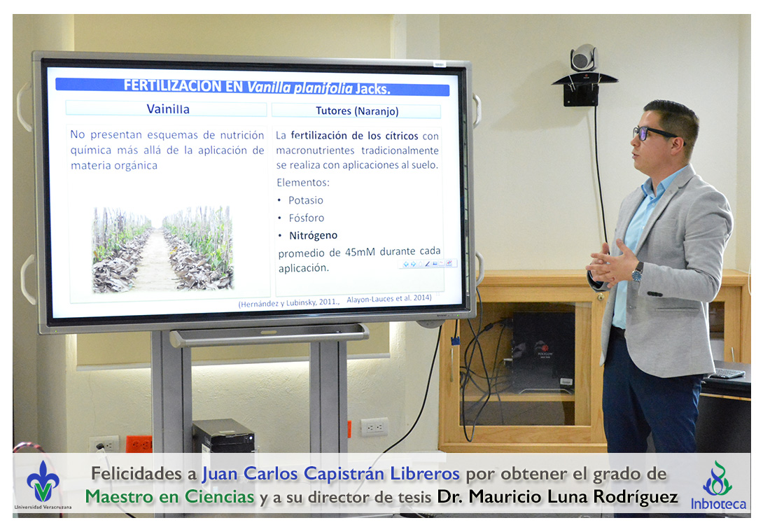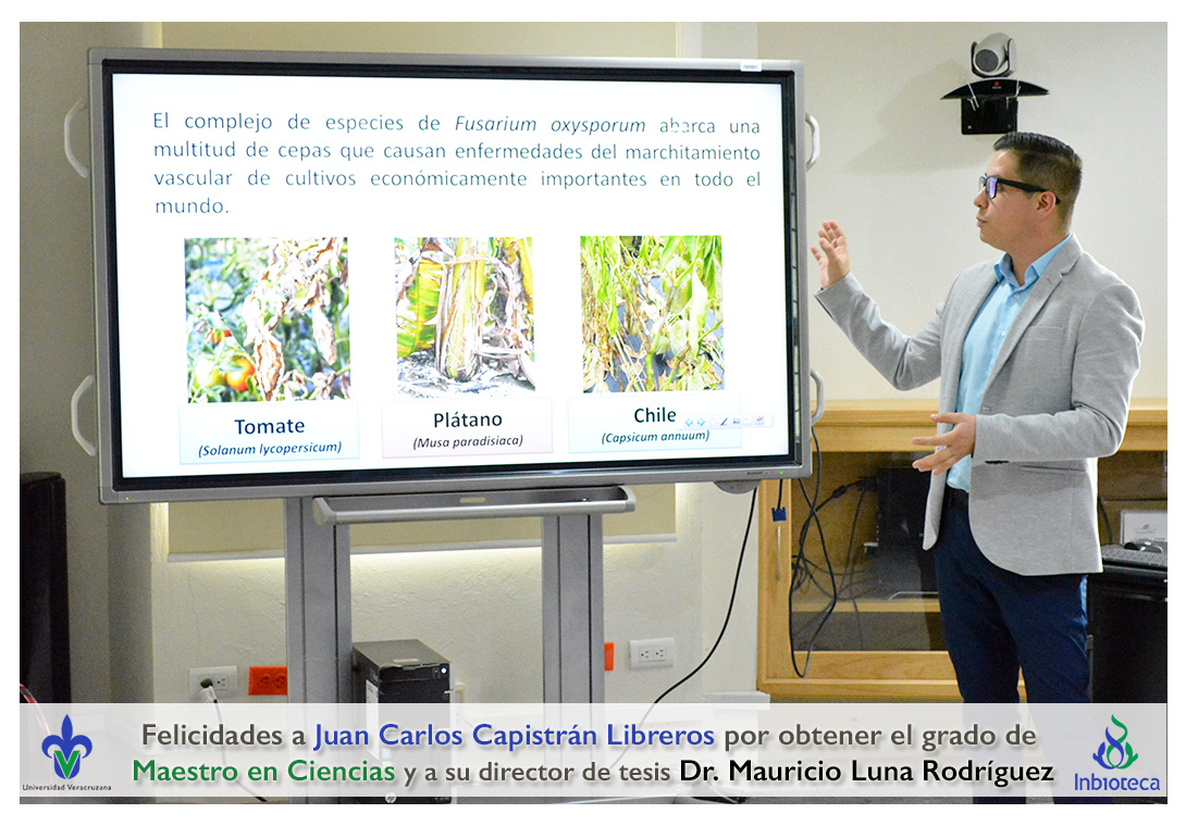 Felicidades a Juan Carlos Capistrán Libreros por obtener el grado de Maestro en Ciencias en Ecología y Biotecnología, a su director de tesis Dr. Mauricio Luna Rodríguez, a su comité y a todos los que contribuyeron en el trabajo realizado. ¡Enhorabuena!
