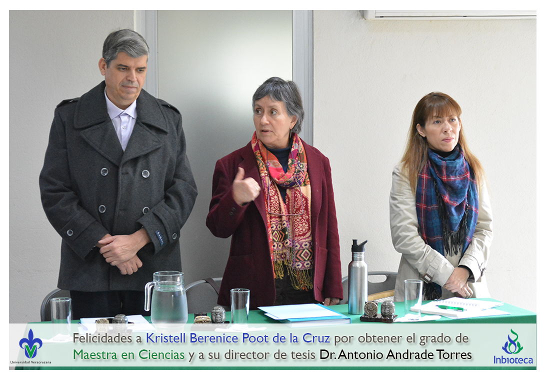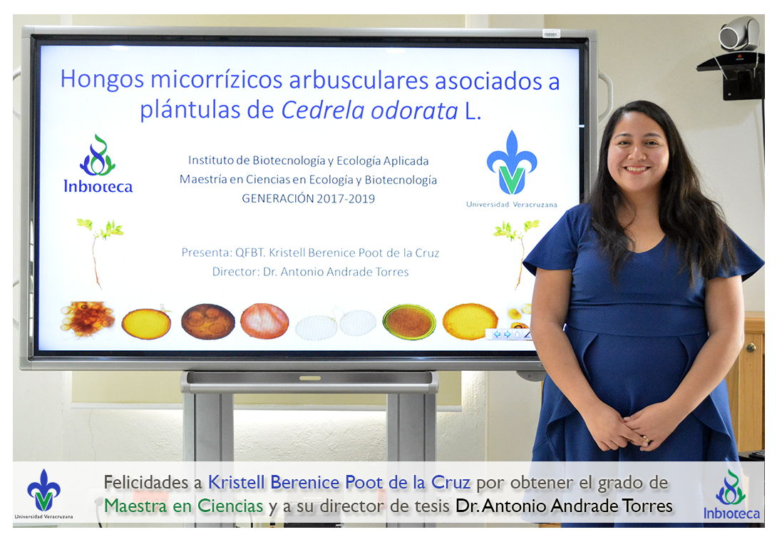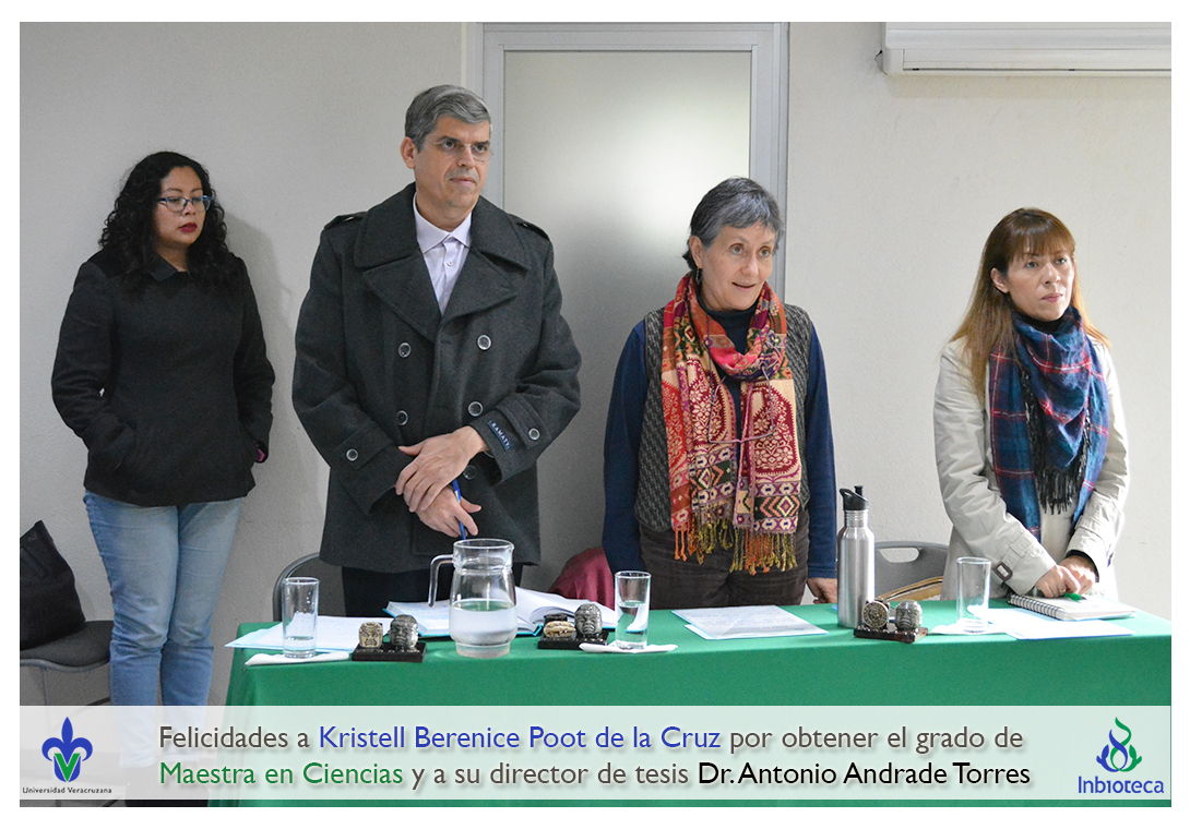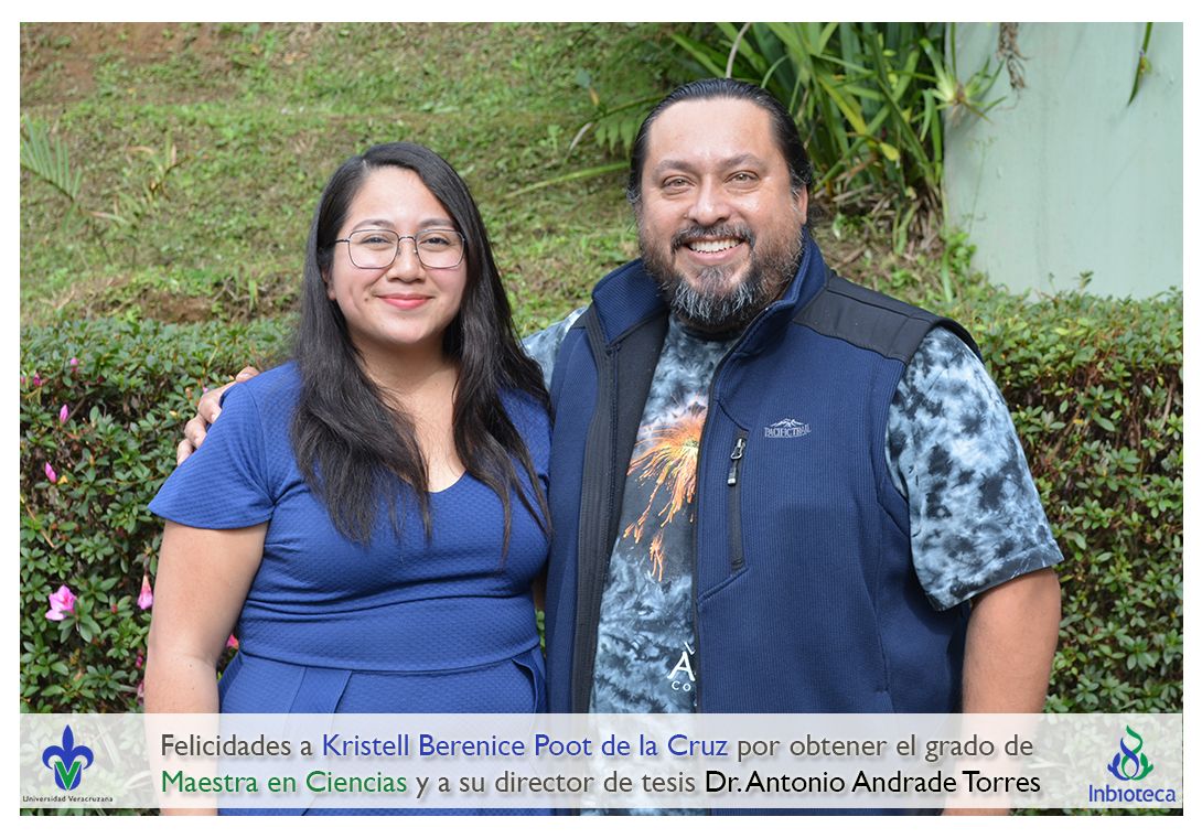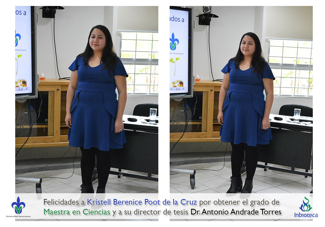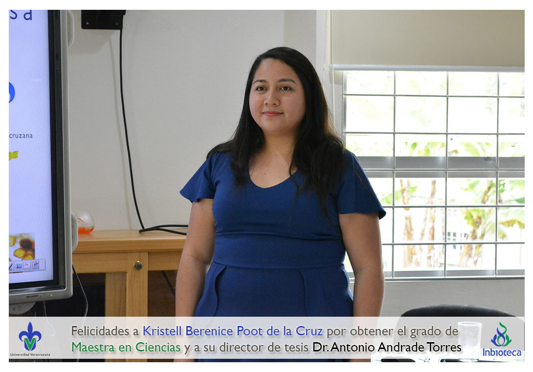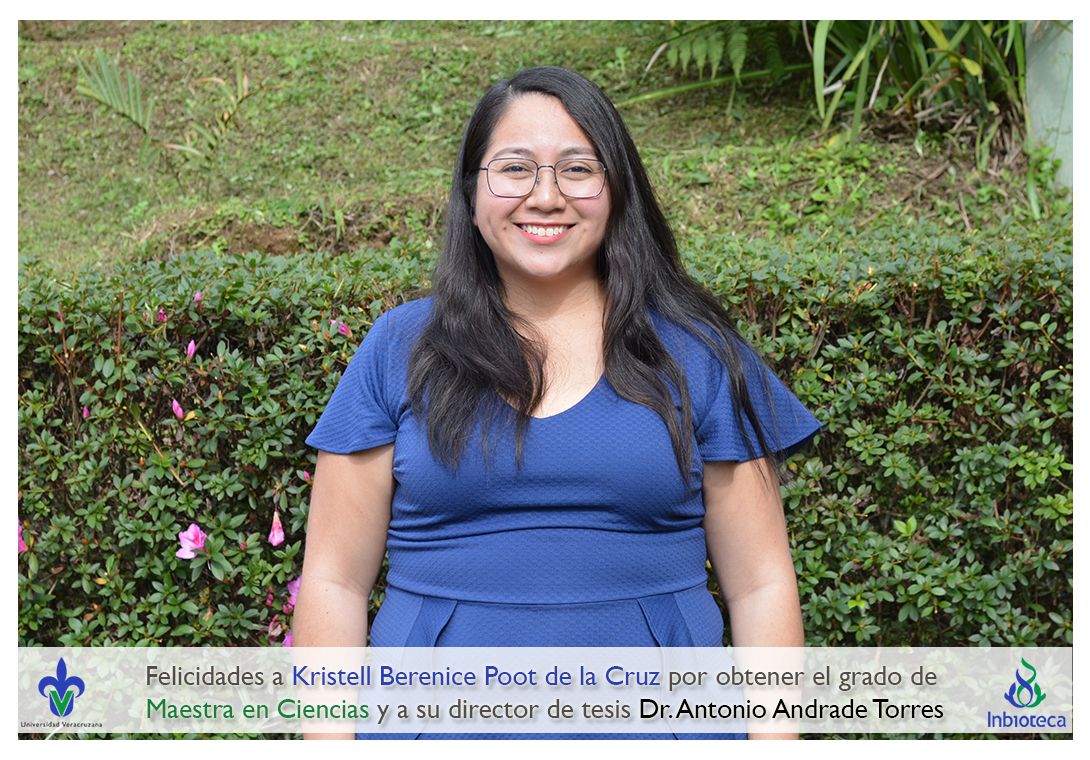 Felicidades a Kristell Berenice Poot de la Cruz por obtener el grado de Maestra en Ciencias en Ecología y Biotecnología, a su director de tesis Dr. Antonio Andrade Torres, a su comité y a todos los que contribuyeron en el trabajo realizado. ¡Enhorabuena!