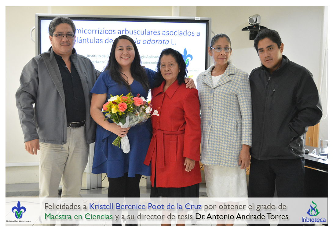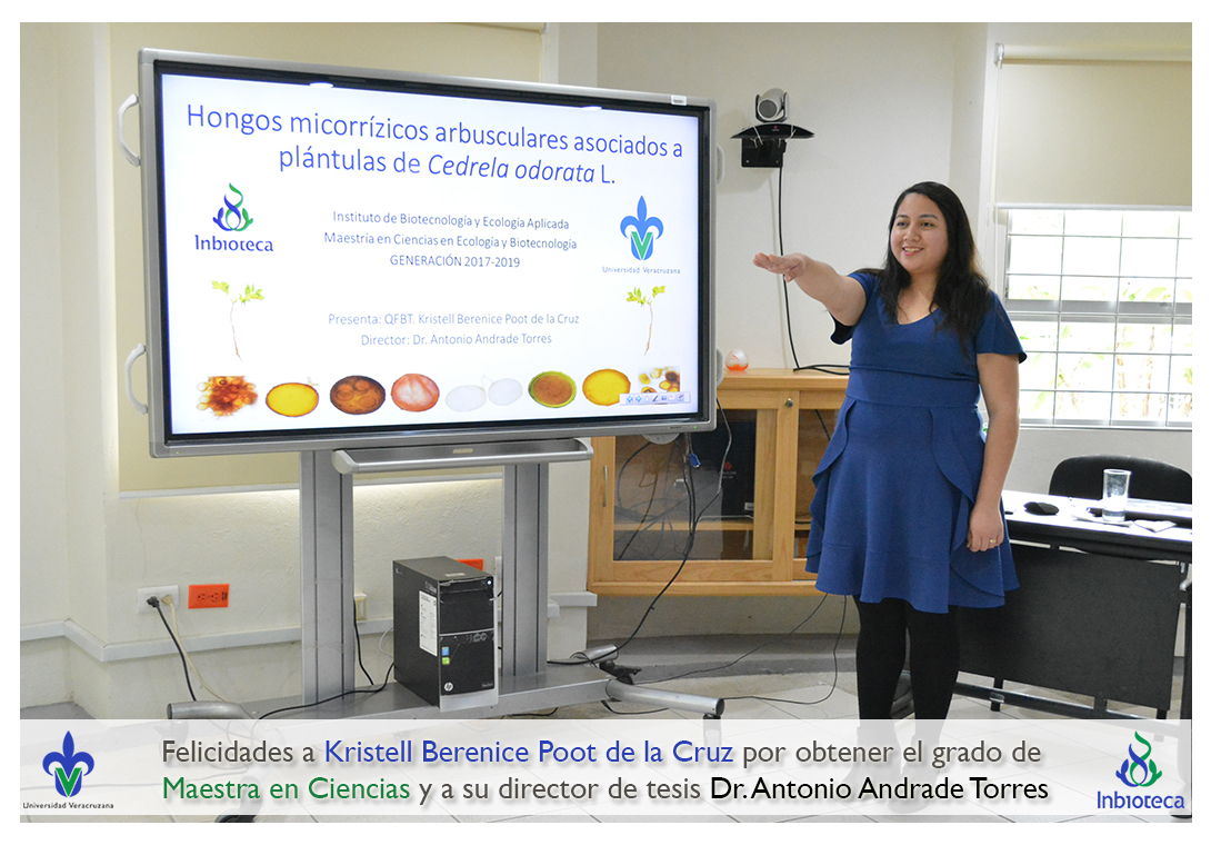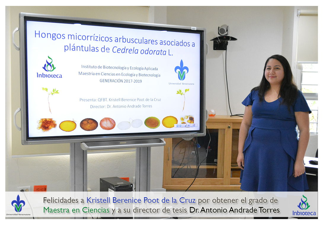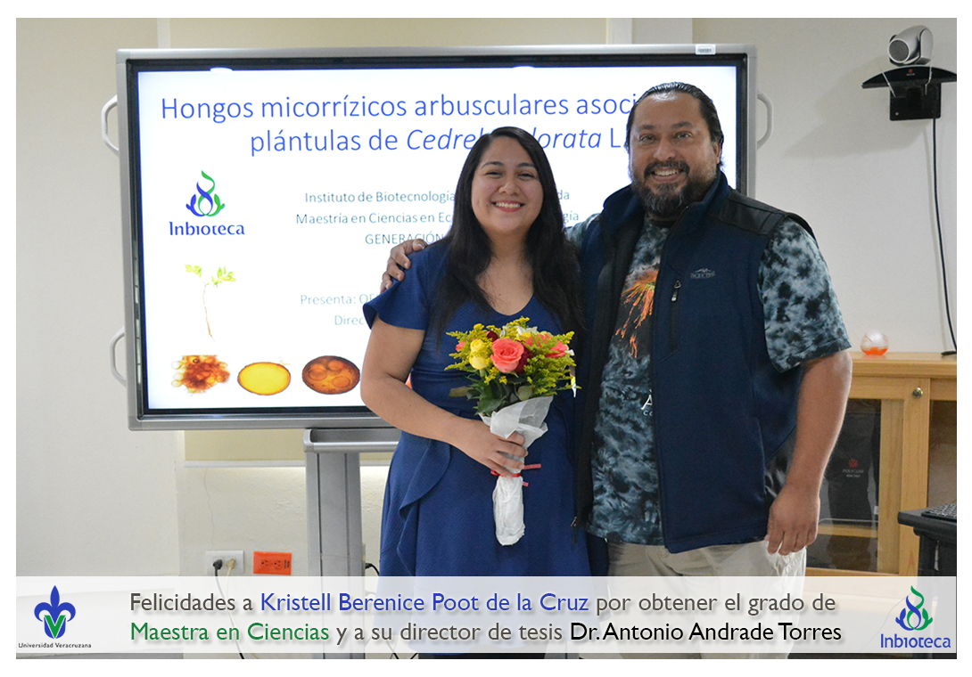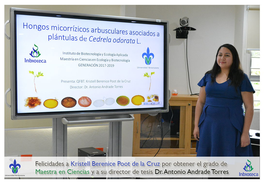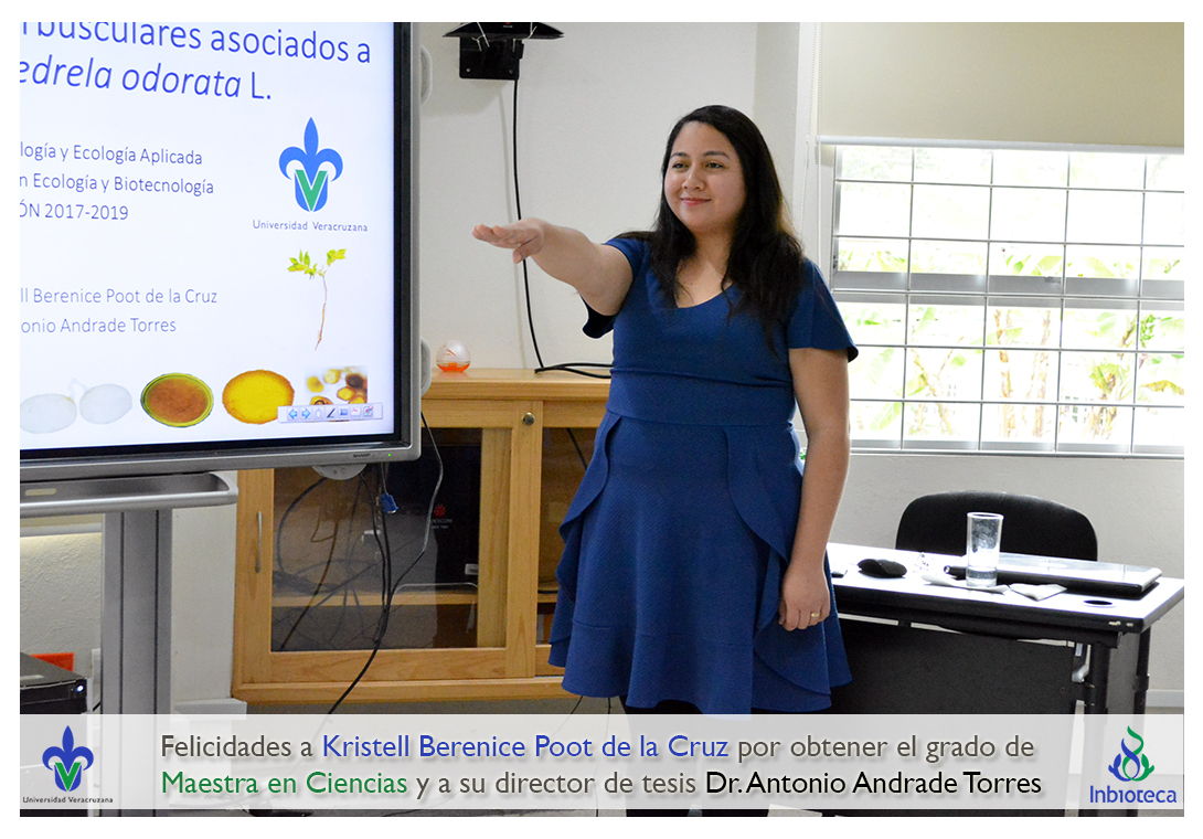 Felicidades a Kristell Berenice Poot de la Cruz por obtener el grado de Maestra en Ciencias en Ecología y Biotecnología, a su director de tesis Dr. Antonio Andrade Torres, a su comité y a todos los que contribuyeron en el trabajo realizado. ¡Enhorabuena!