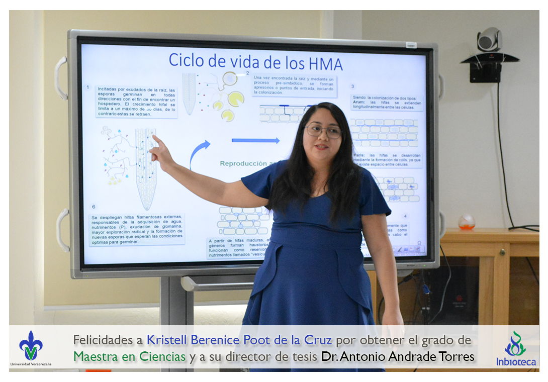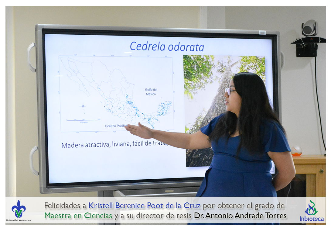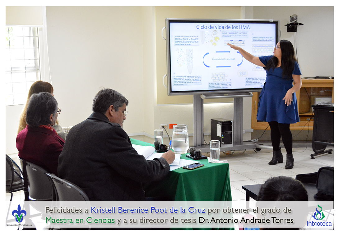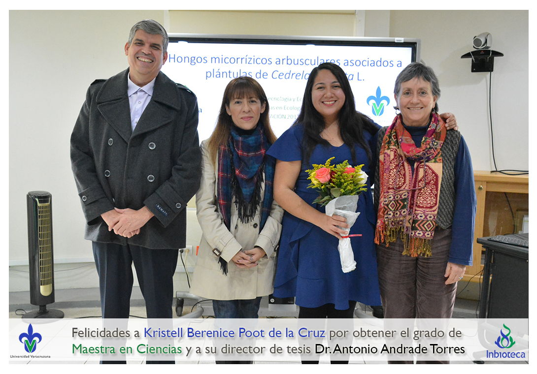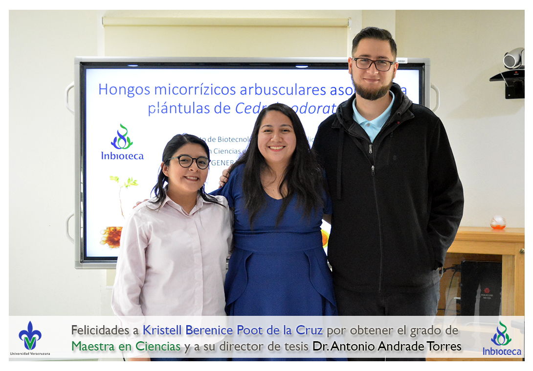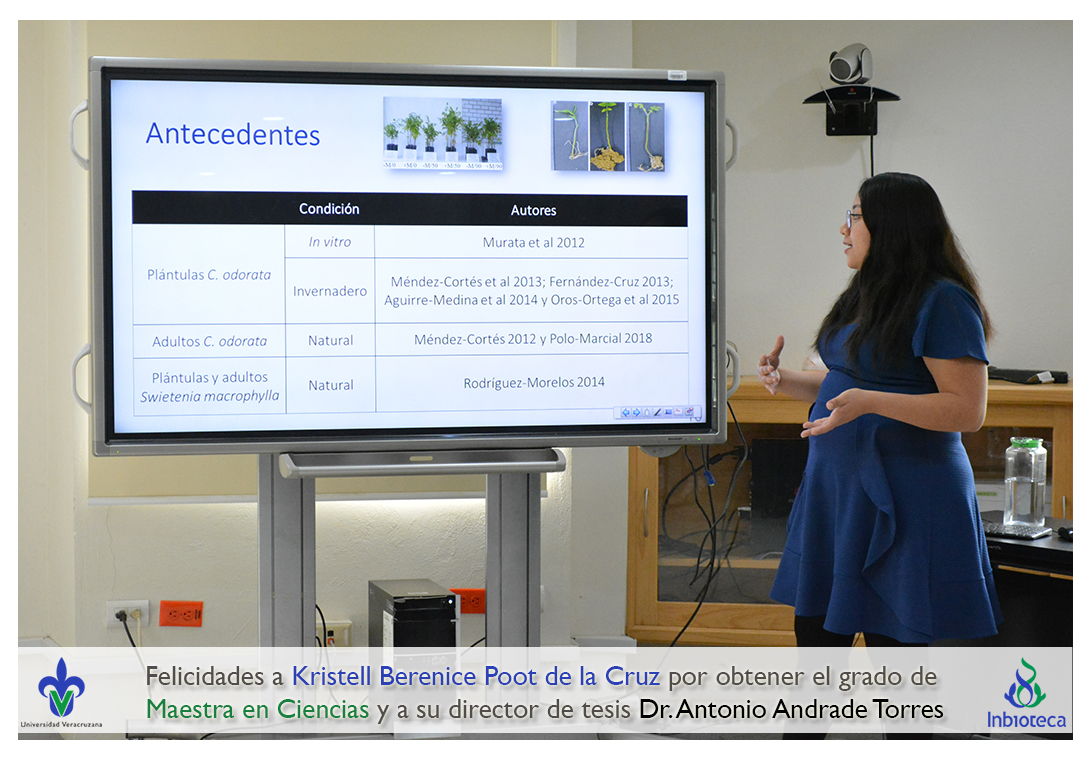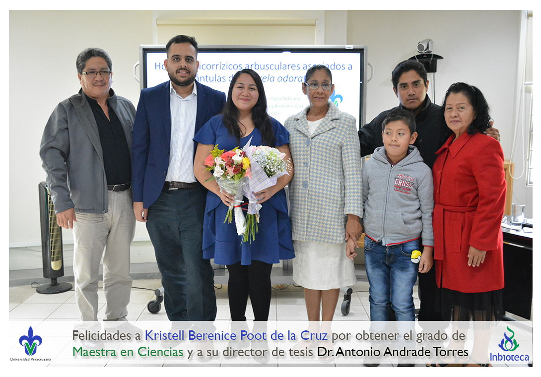 Felicidades a Kristell Berenice Poot de la Cruz por obtener el grado de Maestra en Ciencias en Ecología y Biotecnología, a su director de tesis Dr. Antonio Andrade Torres, a su comité y a todos los que contribuyeron en el trabajo realizado. ¡Enhorabuena!