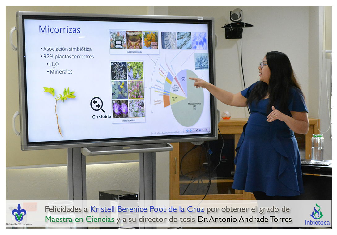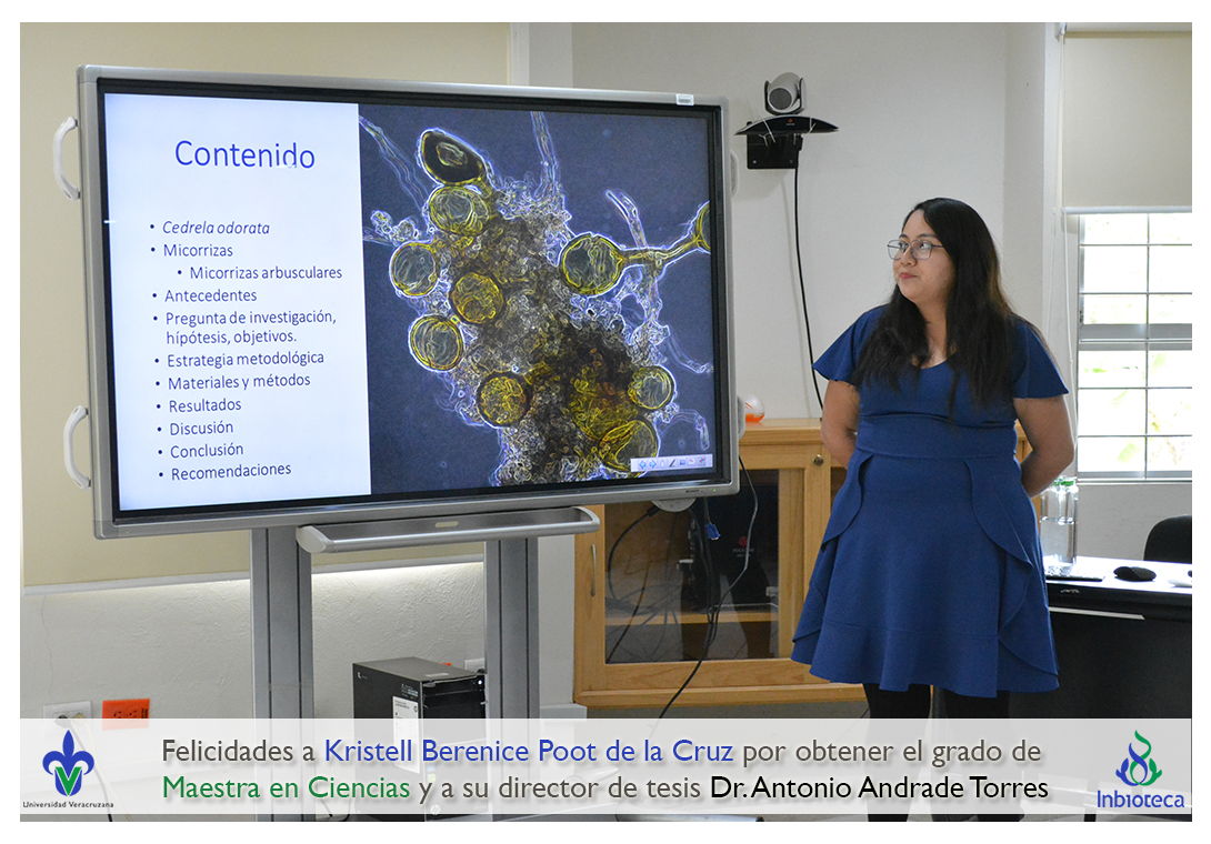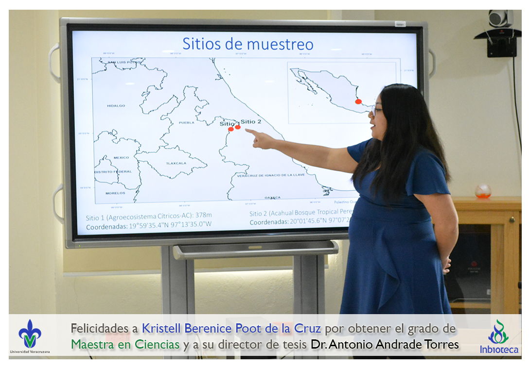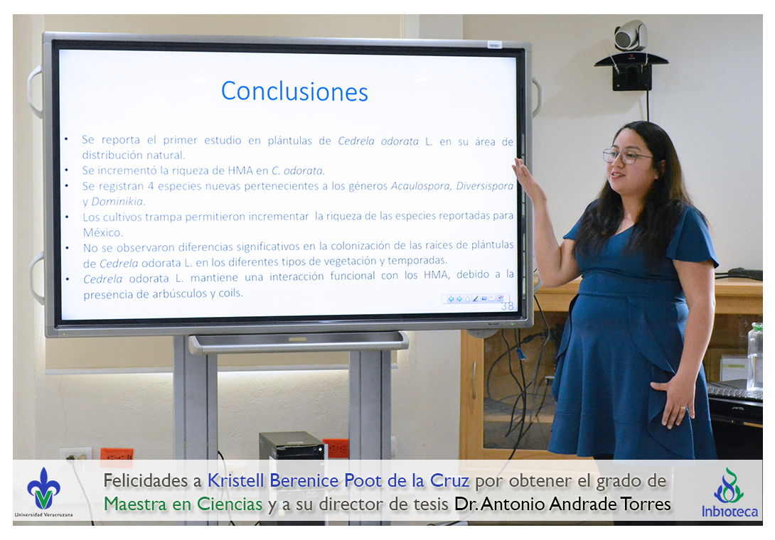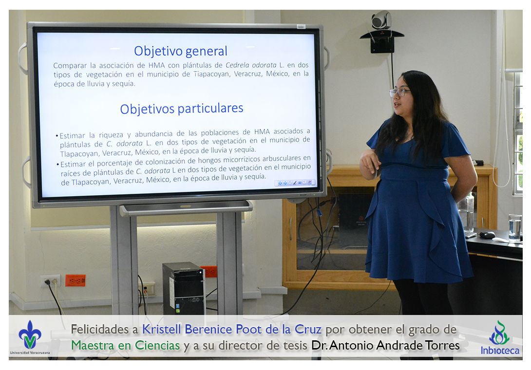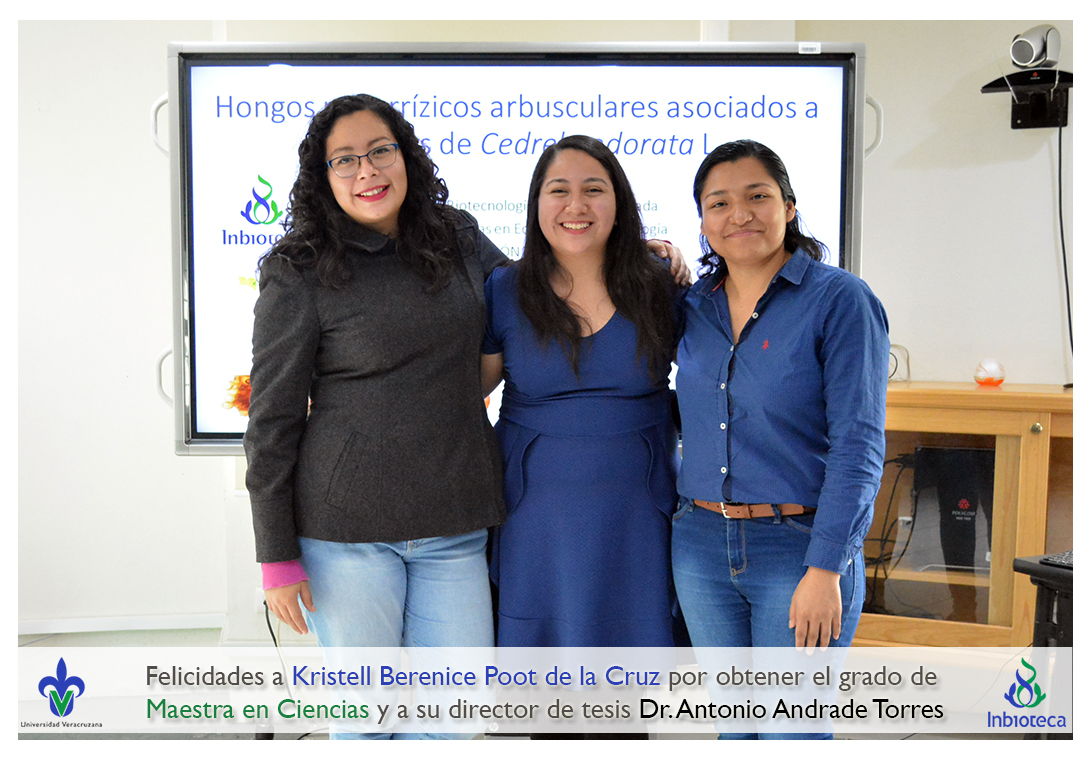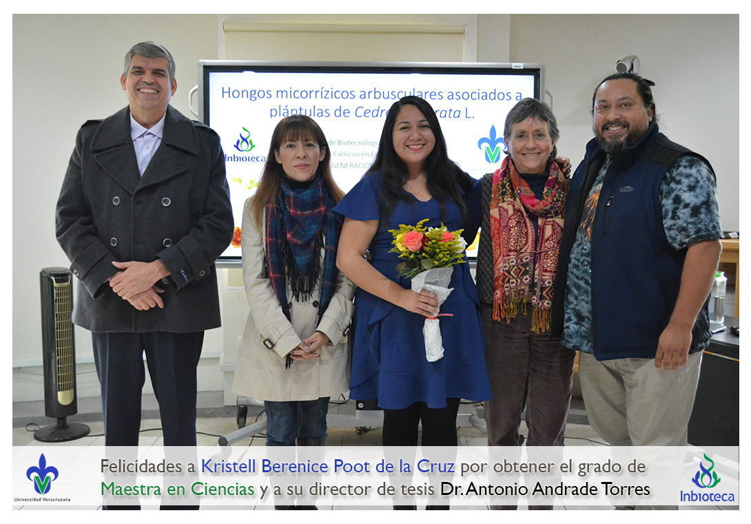 Felicidades a Kristell Berenice Poot de la Cruz por obtener el grado de Maestra en Ciencias en Ecología y Biotecnología, a su director de tesis Dr. Antonio Andrade Torres, a su comité y a todos los que contribuyeron en el trabajo realizado. ¡Enhorabuena!