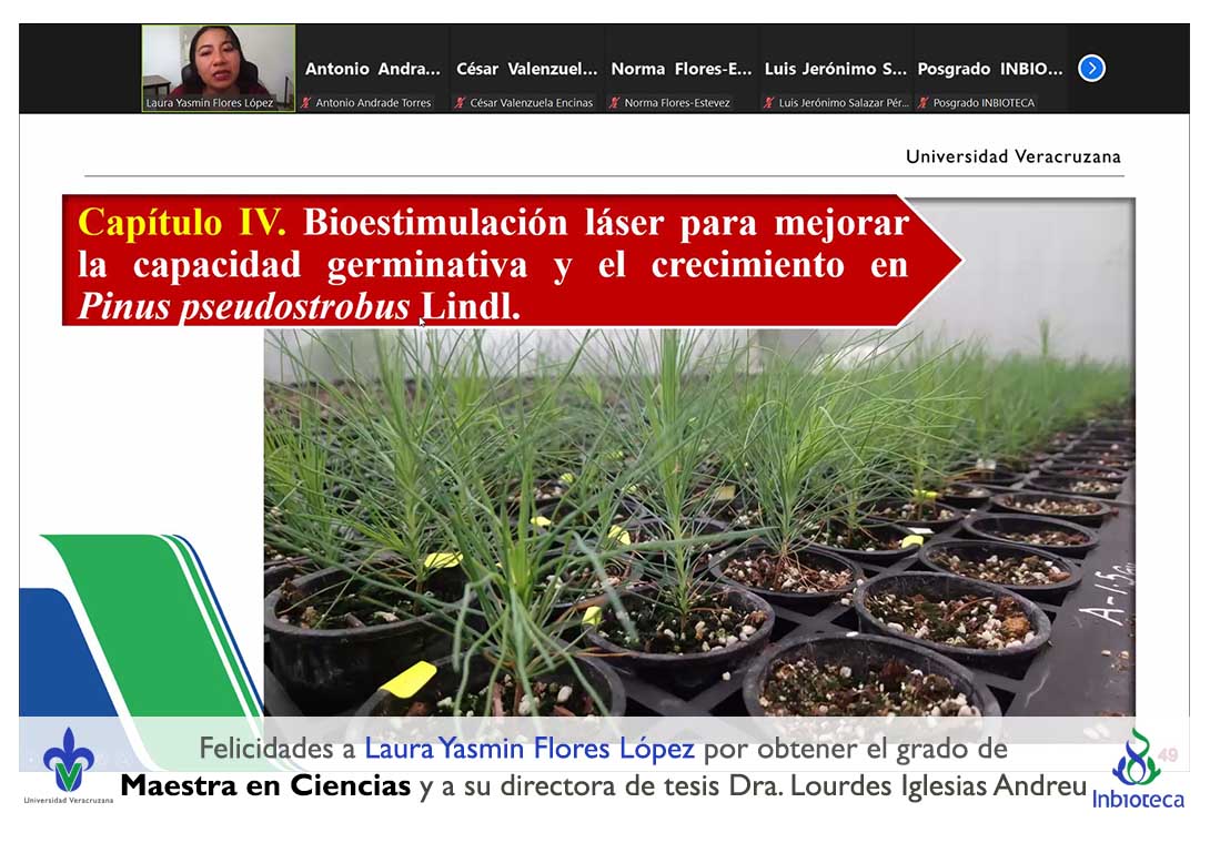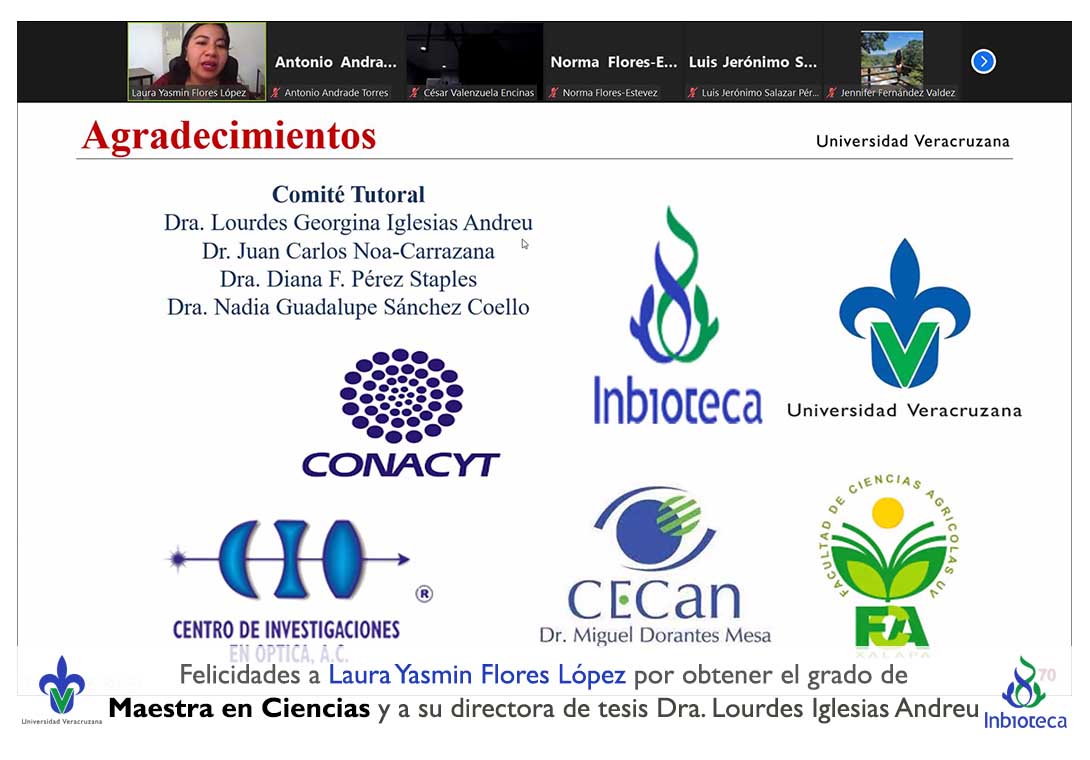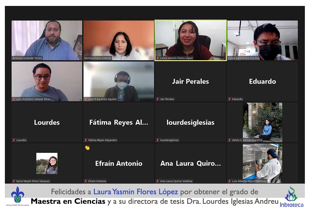 Felicidades a Laura Yasmin Flores López por obtener por unanimidad con Mención Honorífica el grado de Maestra en Ciencias en Ecología y Biotecnología, a su directora de tesis Dra. Lourdes Georgina Iglesias Andreu, a su comité y a todos los que contribuyeron en el trabajo realizado. ¡Enhorabuena!