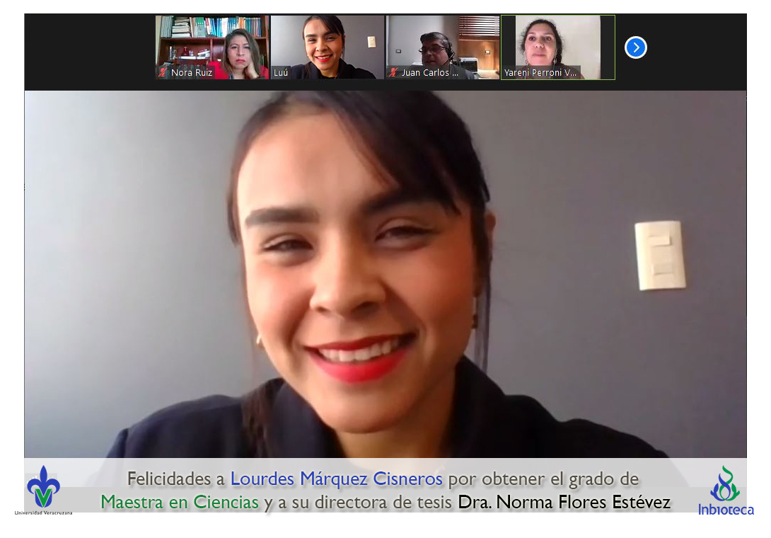 Felicidades a Lourdes Márquez Cisneros por obtener el grado por Unanimidad de Maestra en Ciencias en Ecología y Biotecnología, a su directora de tesis Dra. Norma Flores Estévez, a su comité y a todos los que contribuyeron en el trabajo realizado. ¡Enhorabuena!