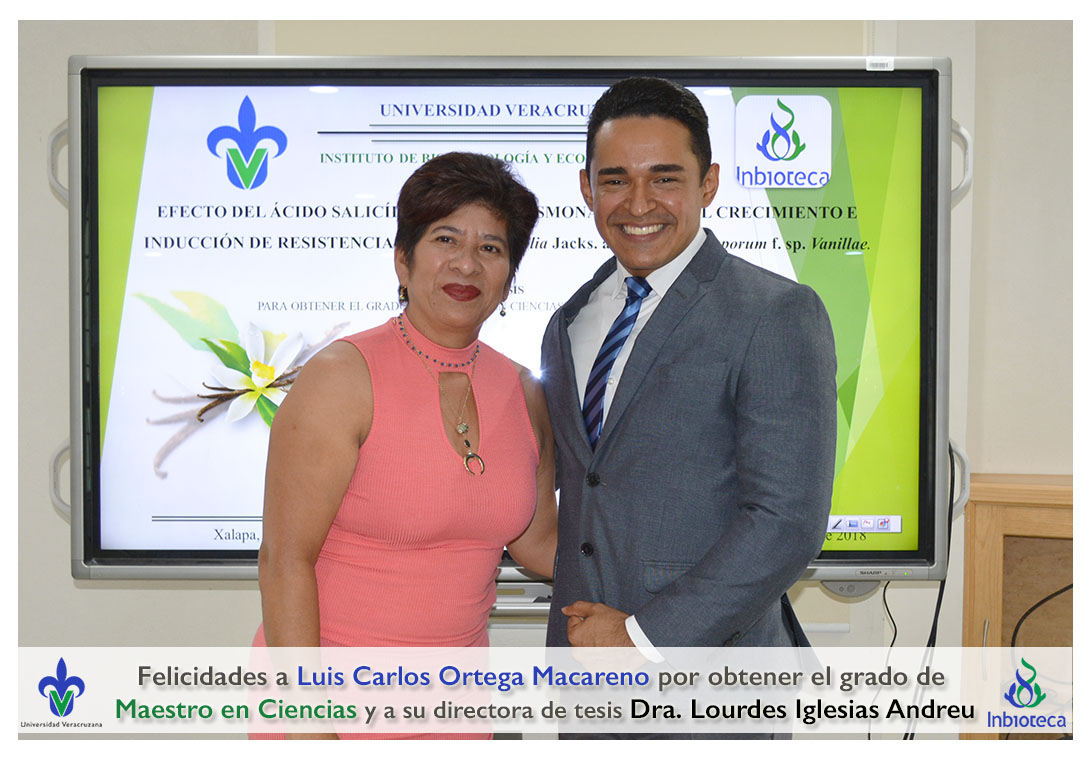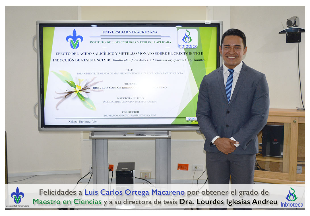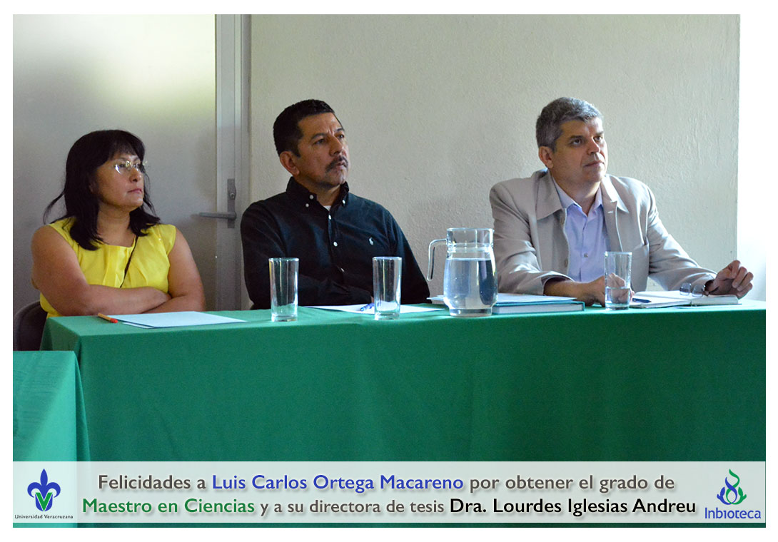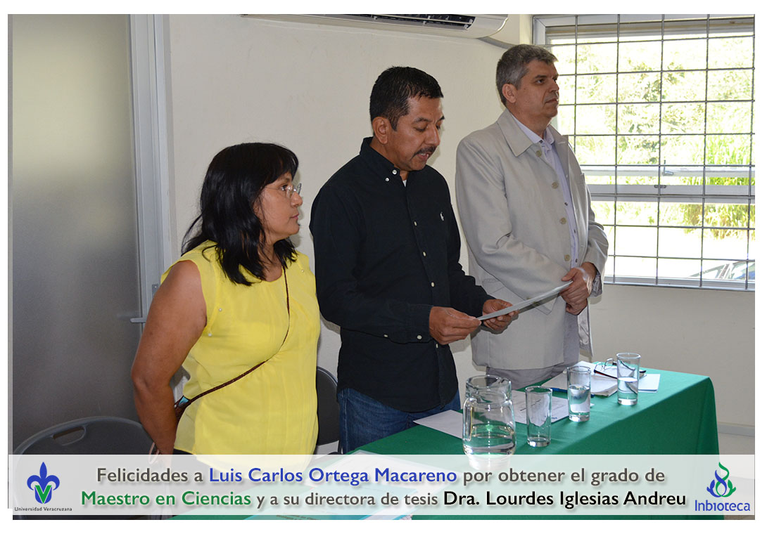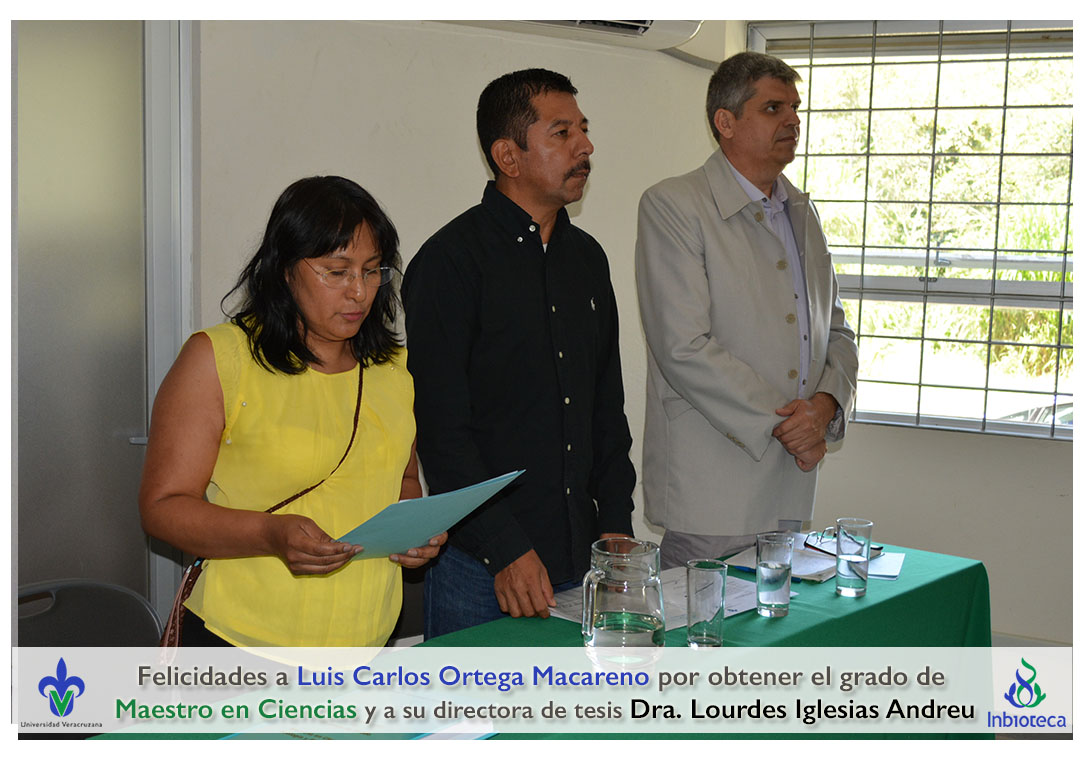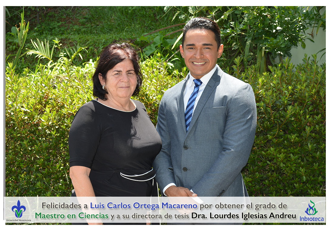 Felicidades Luis Carlos Rodrigo Ortega Macareno por obtener el grado de Maestro en Ciencias en Ecología y Biotecnología, a su directora de tesis Dra. Lourdes Georgina Iglesias Andreu, a su codirector de tesis Dr. Marco Antonio Ramírez Mosqueda, a su comité y a todos los que contribuyeron en el trabajo realizado. ¡Enhorabuena!