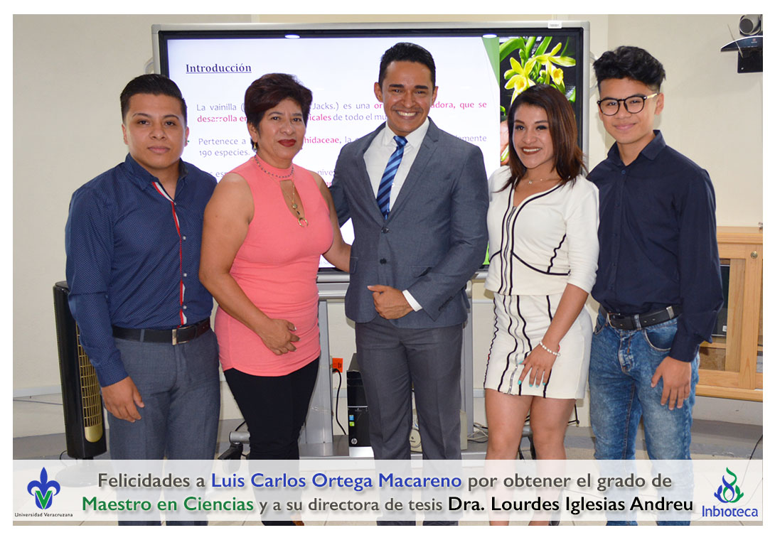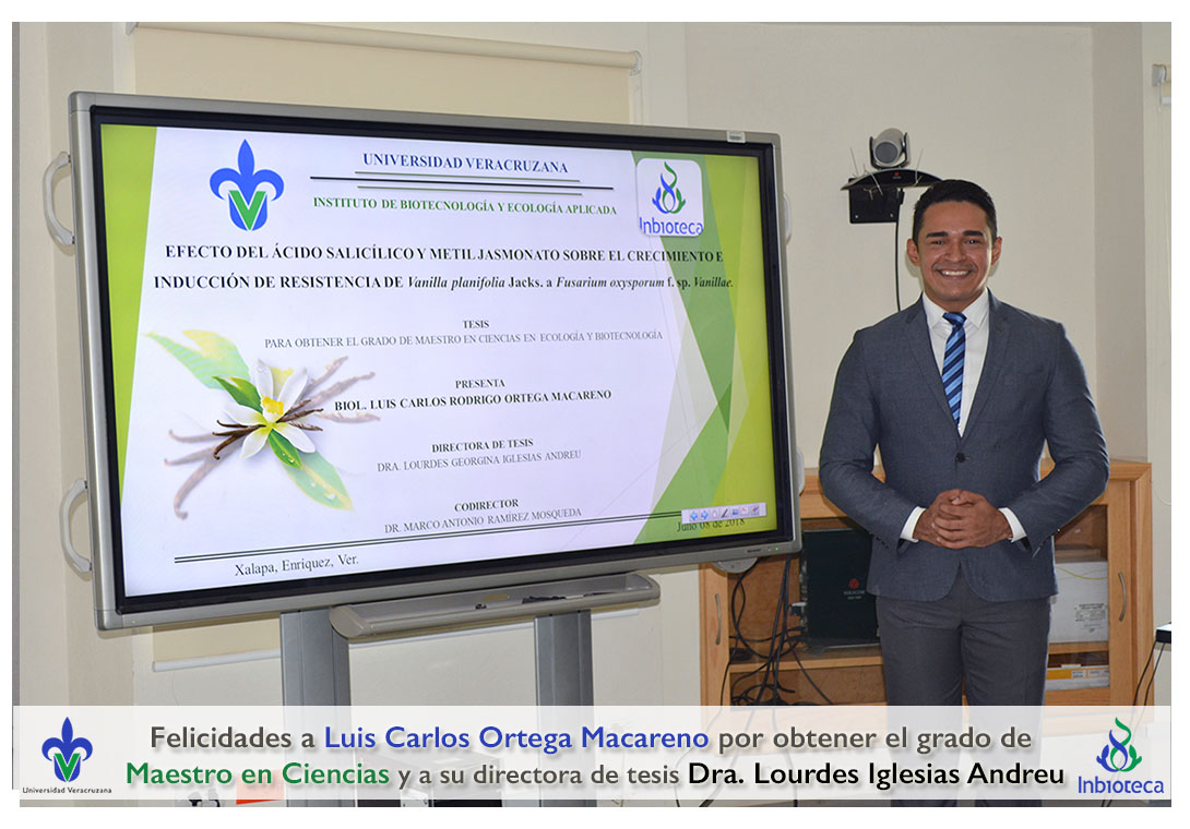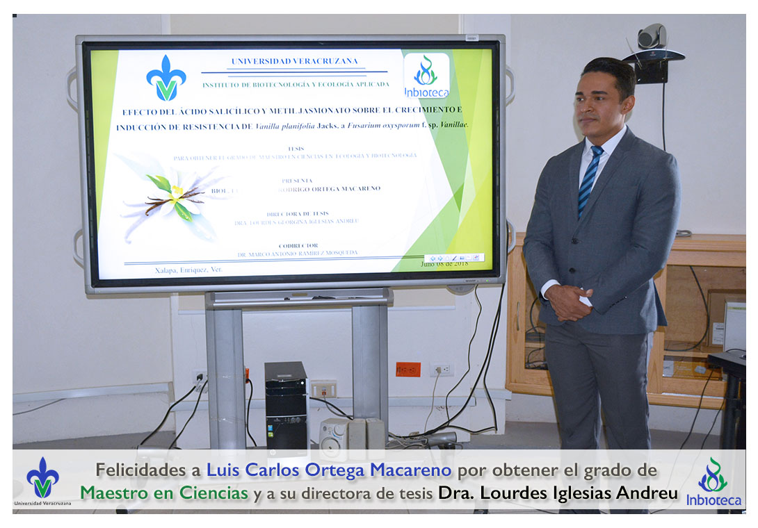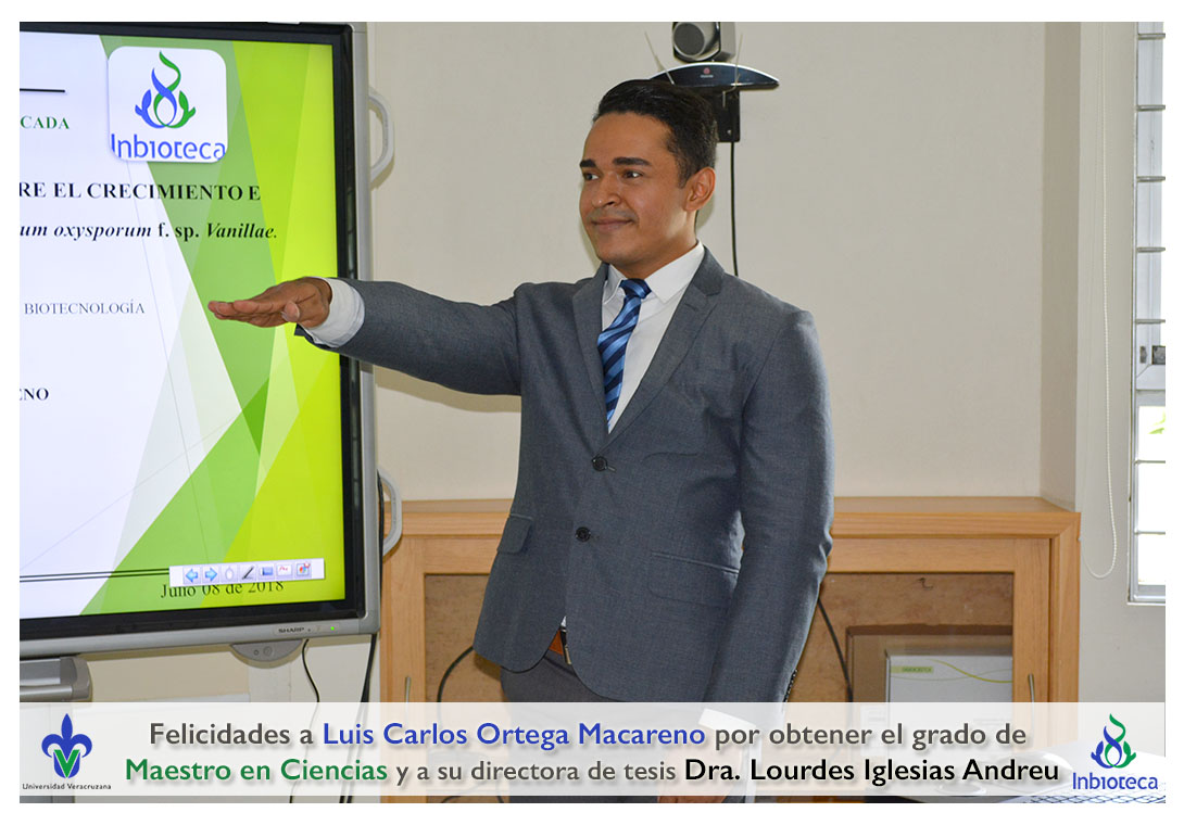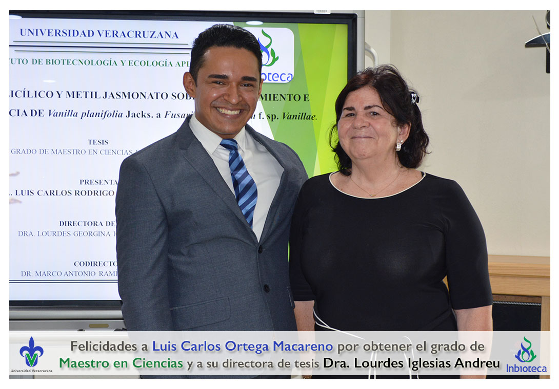 Felicidades Luis Carlos Rodrigo Ortega Macareno por obtener el grado de Maestro en Ciencias en Ecología y Biotecnología, a su directora de tesis Dra. Lourdes Georgina Iglesias Andreu, a su codirector de tesis Dr. Marco Antonio Ramírez Mosqueda, a su comité y a todos los que contribuyeron en el trabajo realizado. ¡Enhorabuena!
