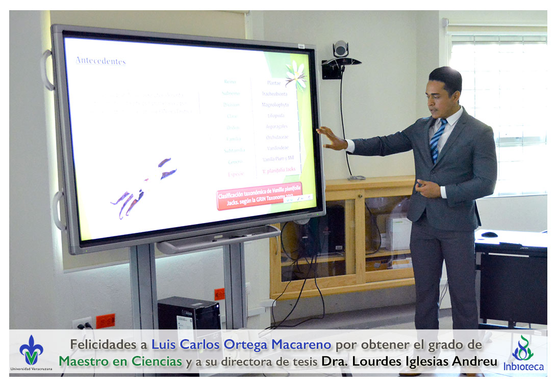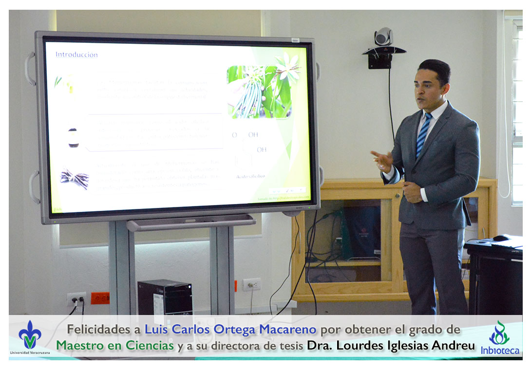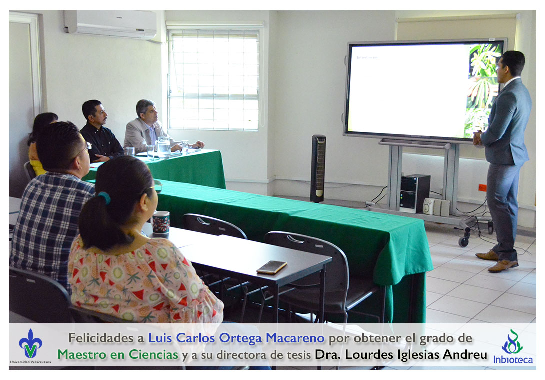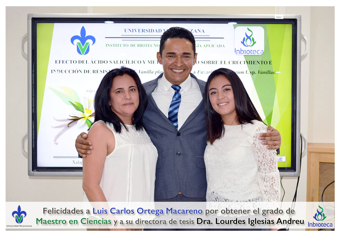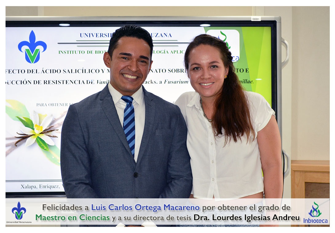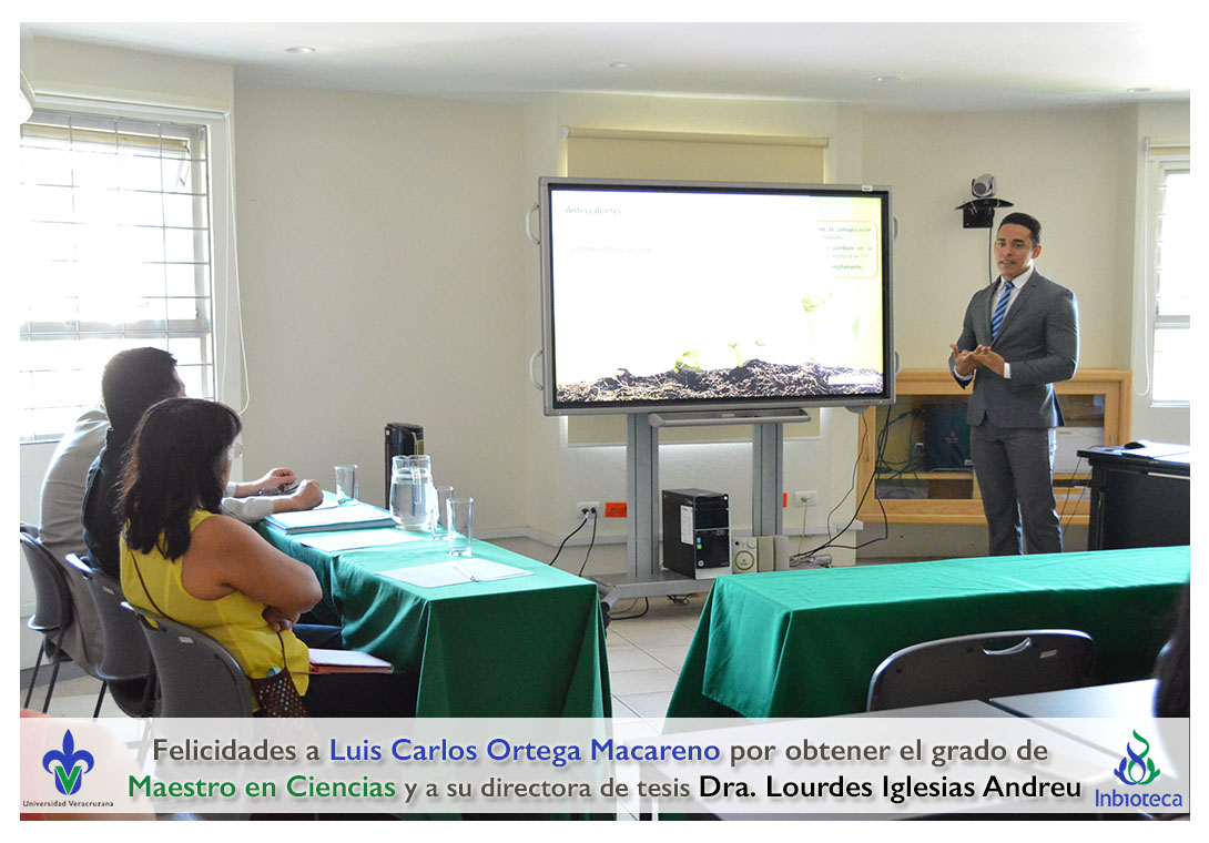 Felicidades Luis Carlos Rodrigo Ortega Macareno por obtener el grado de Maestro en Ciencias en Ecología y Biotecnología, a su directora de tesis Dra. Lourdes Georgina Iglesias Andreu, a su codirector de tesis Dr. Marco Antonio Ramírez Mosqueda, a su comité y a todos los que contribuyeron en el trabajo realizado. ¡Enhorabuena!