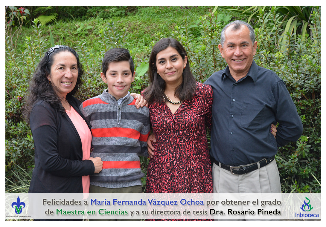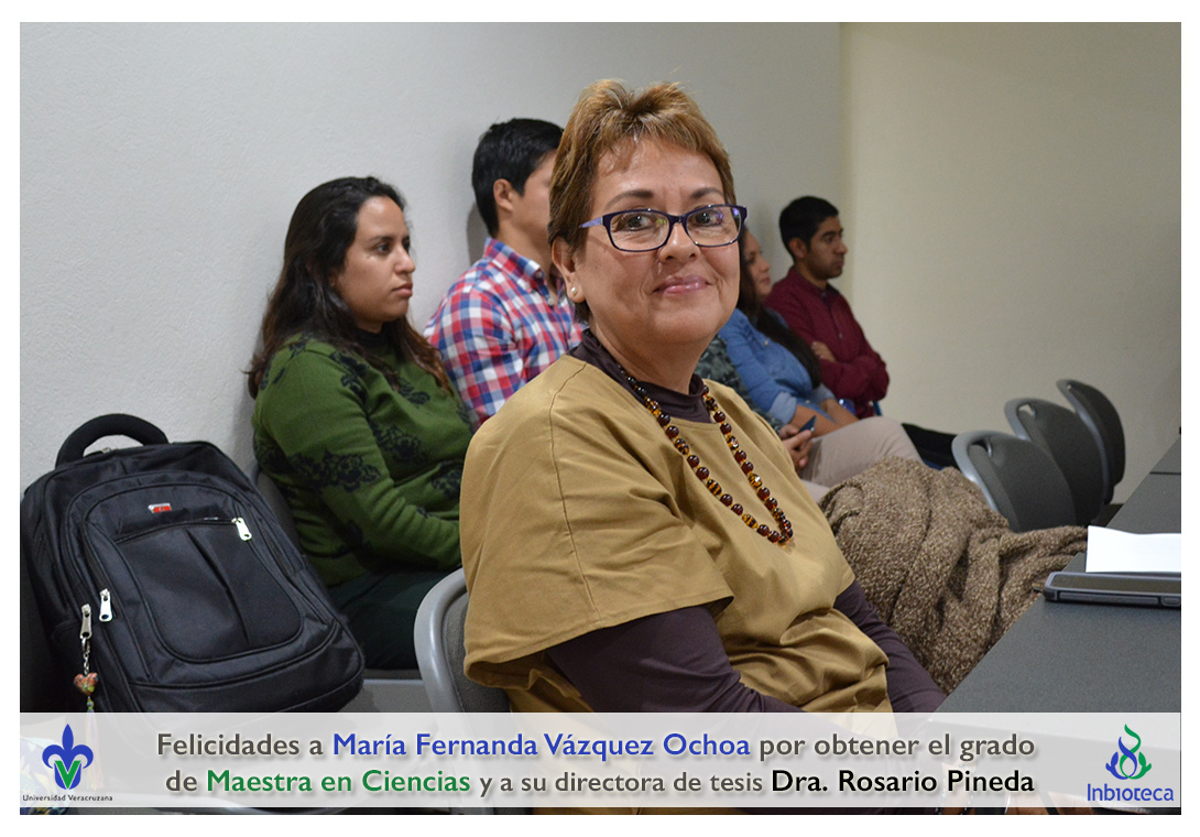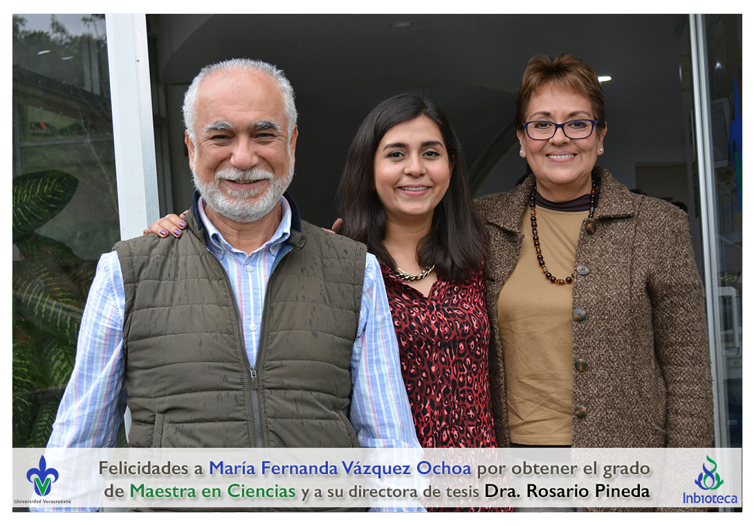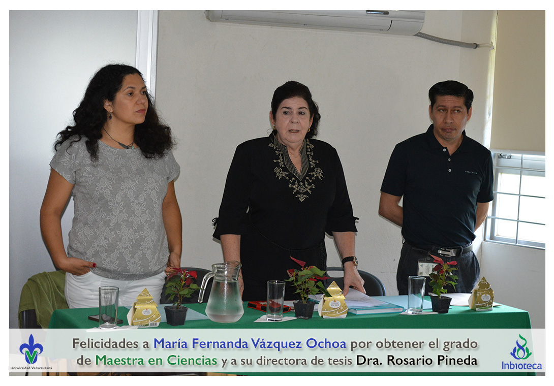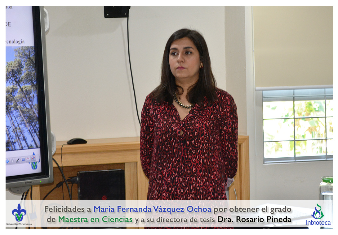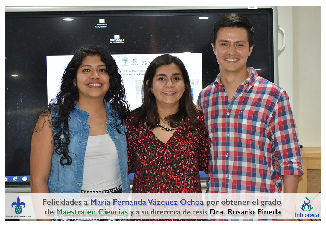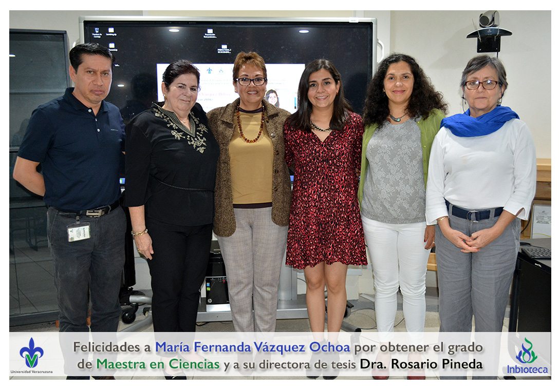 Felicidades a María Fernanda Vázquez Ochoa por obtener el grado de Maestra en Ciencias en Ecología y Biotecnología, a su directora de tesis Dra. María del Rosario Pineda López, a su comité y a todos los que contribuyeron en el trabajo realizado. ¡Enhorabuena!