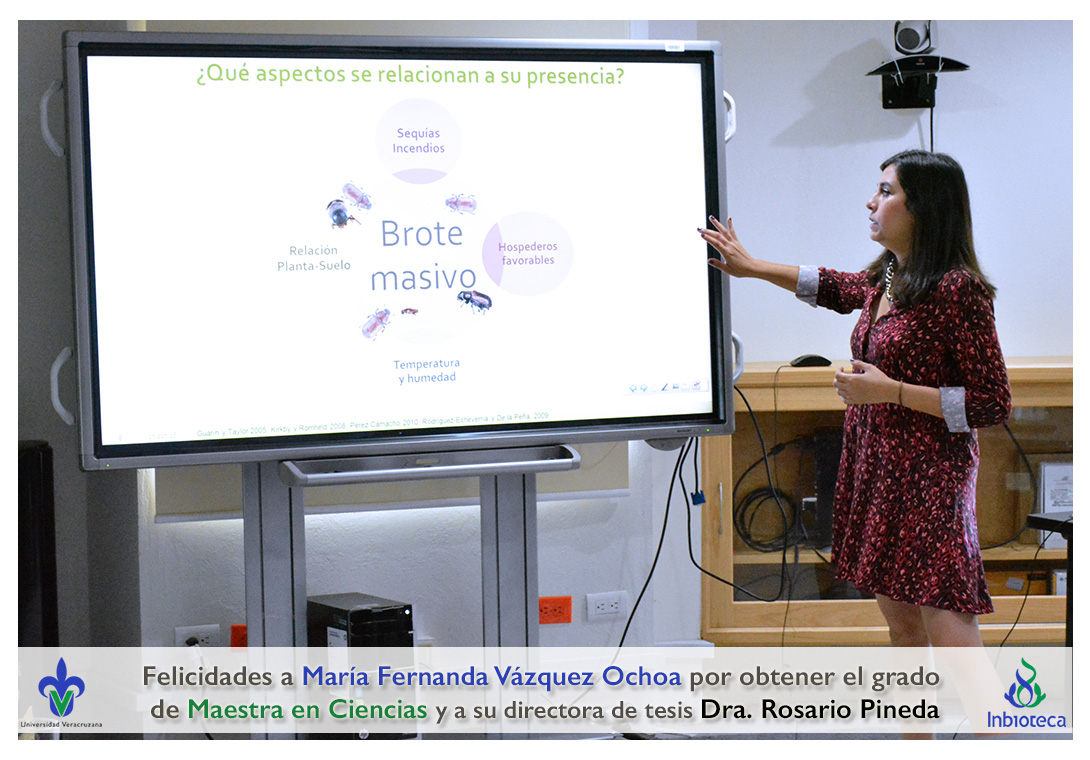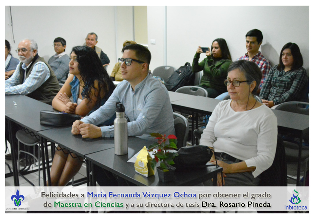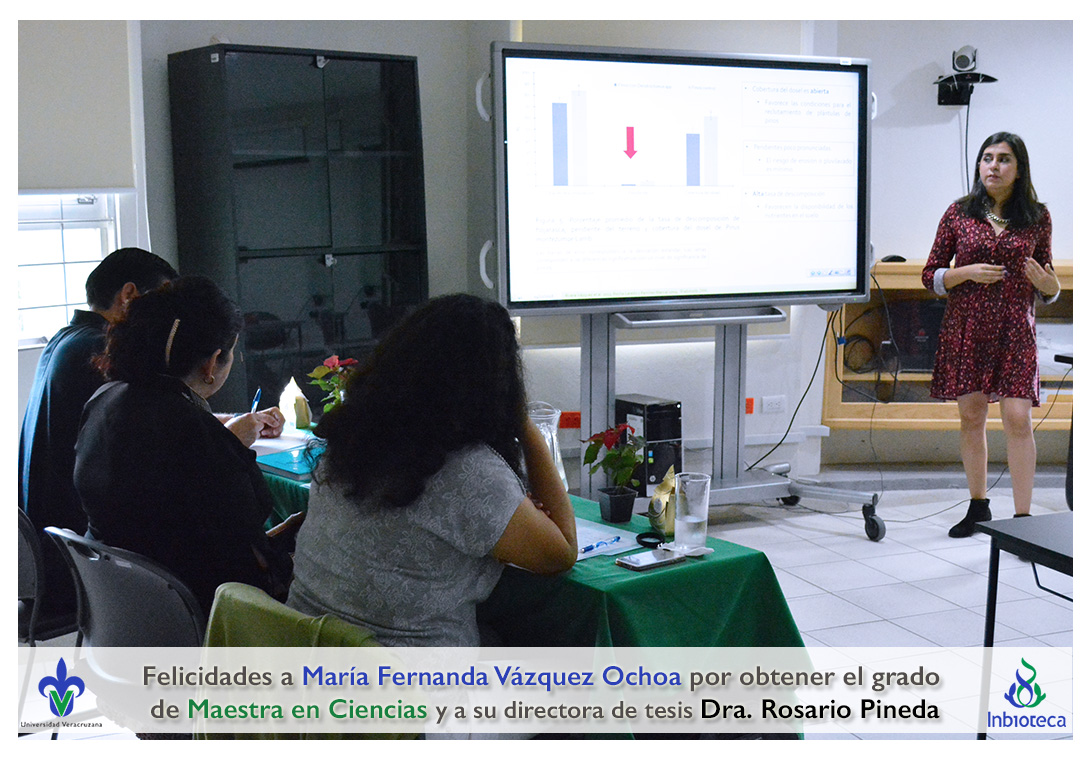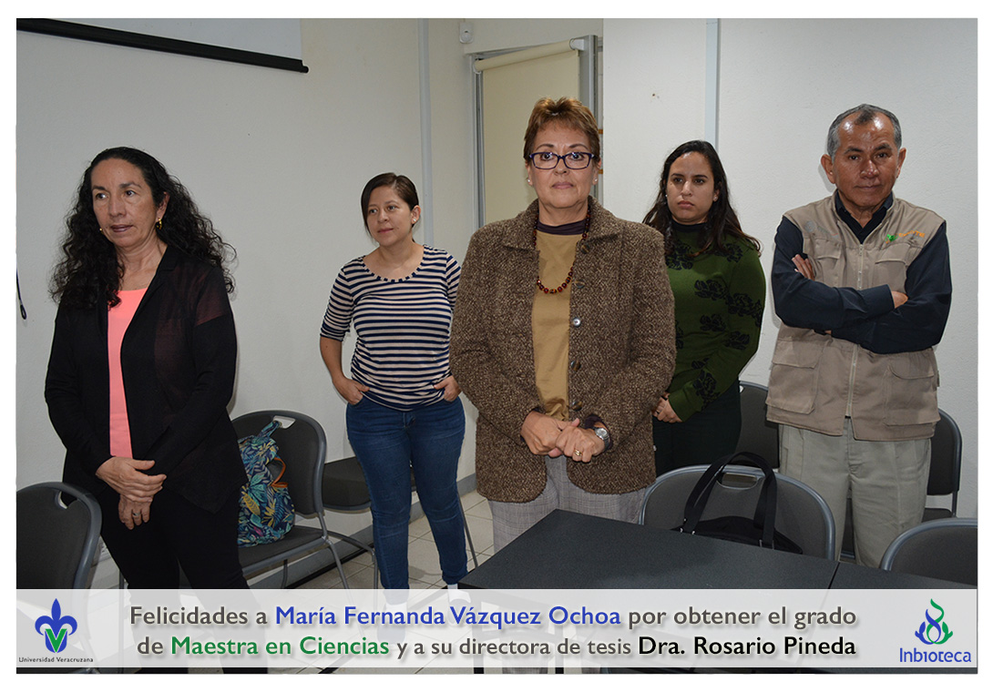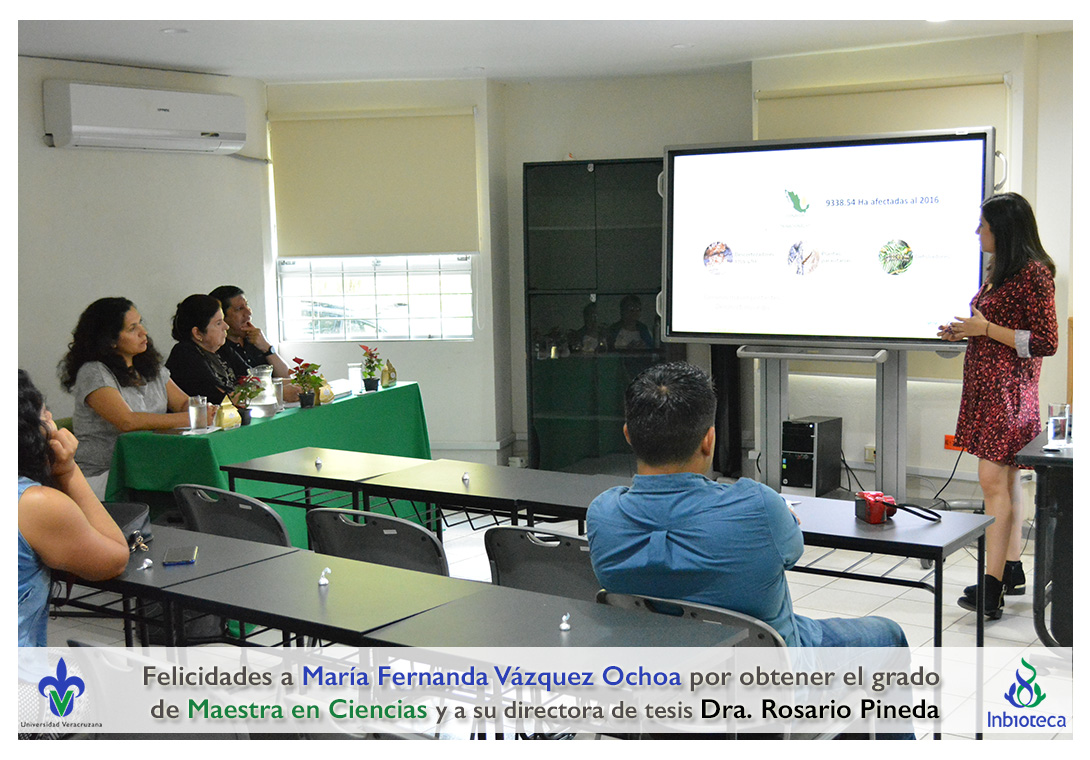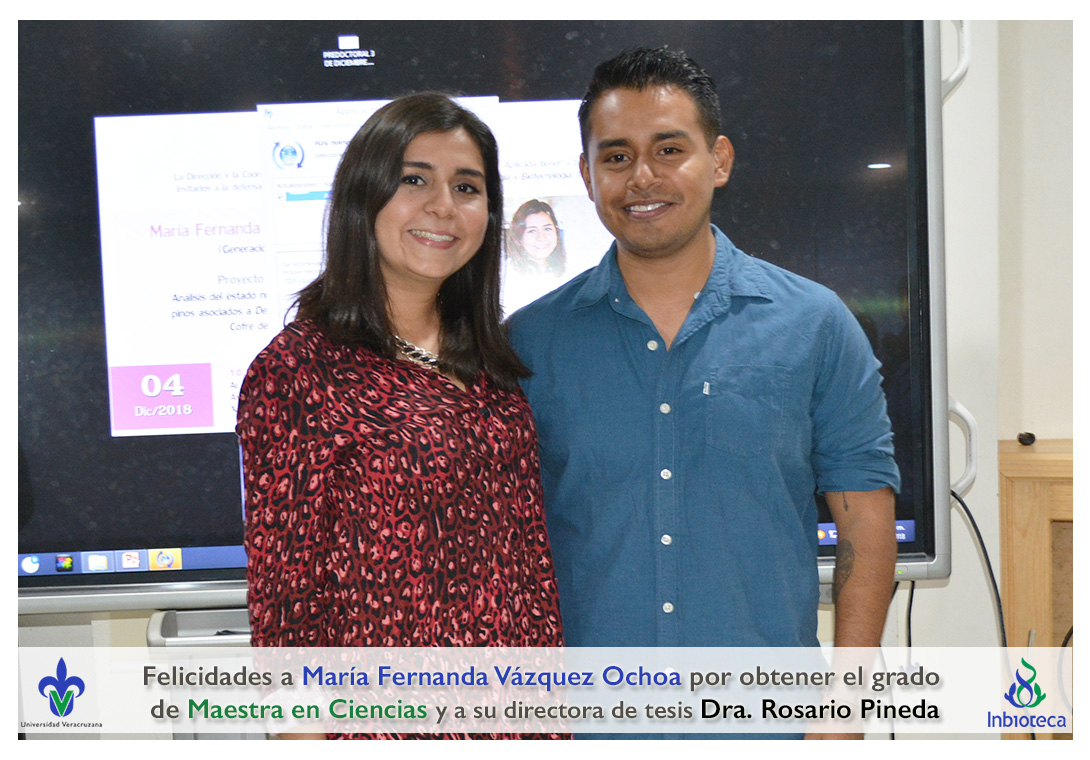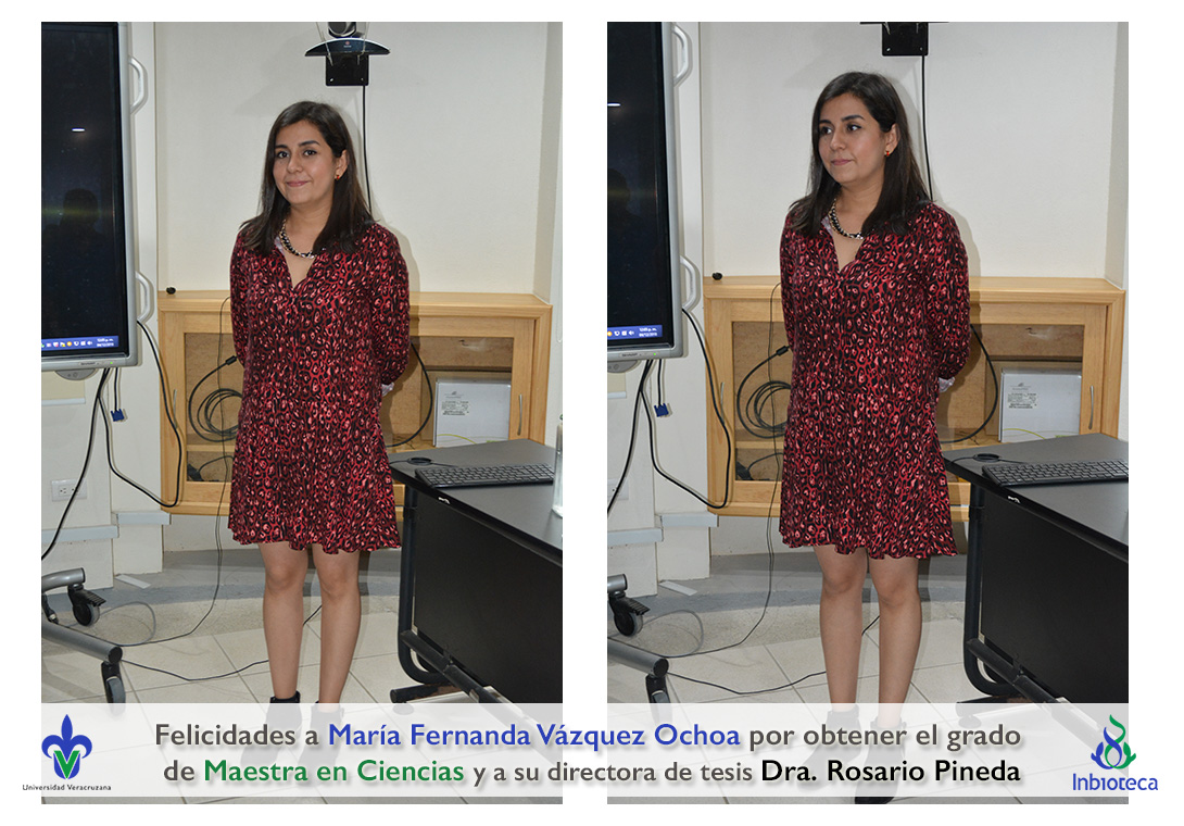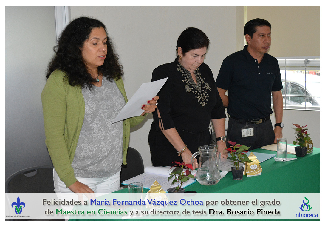 Felicidades a María Fernanda Vázquez Ochoa por obtener el grado de Maestra en Ciencias en Ecología y Biotecnología, a su directora de tesis Dra. María del Rosario Pineda López, a su comité y a todos los que contribuyeron en el trabajo realizado. ¡Enhorabuena!