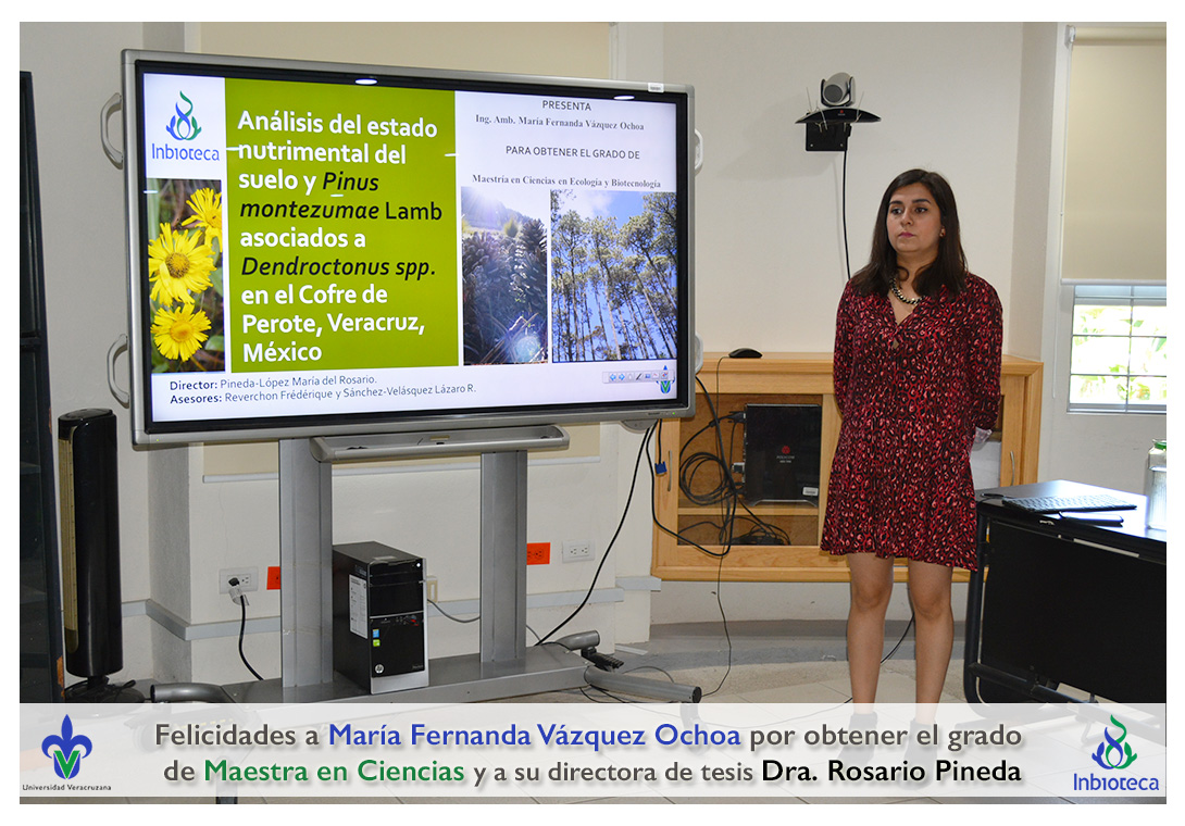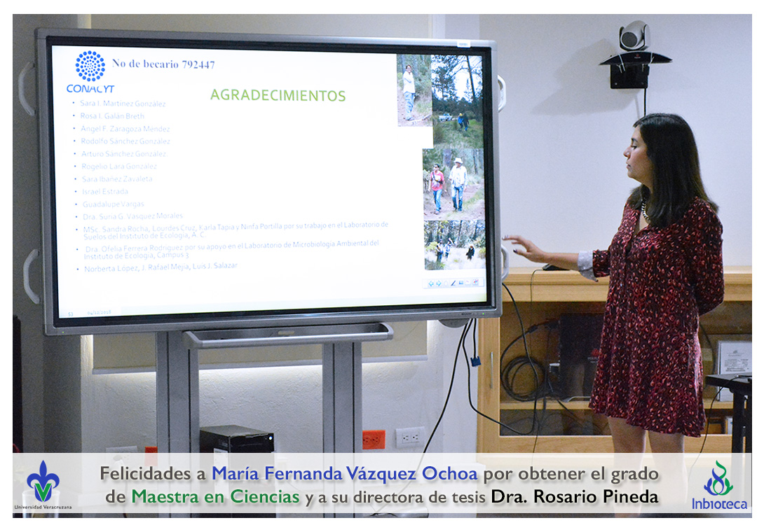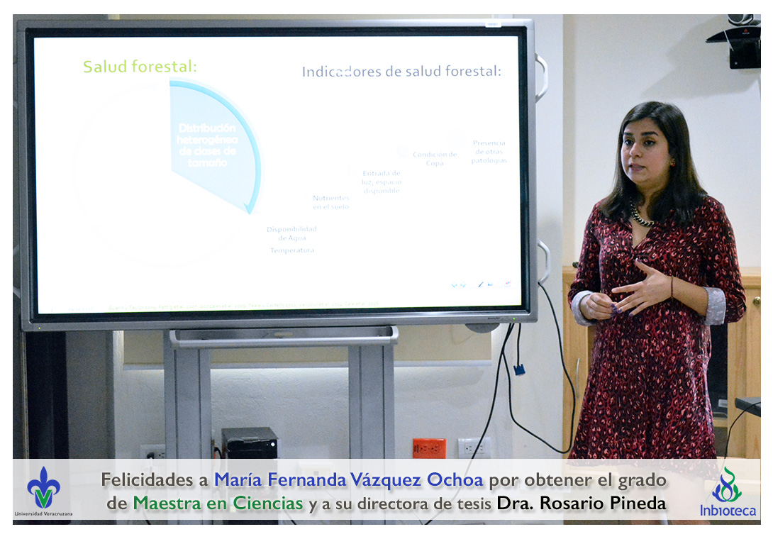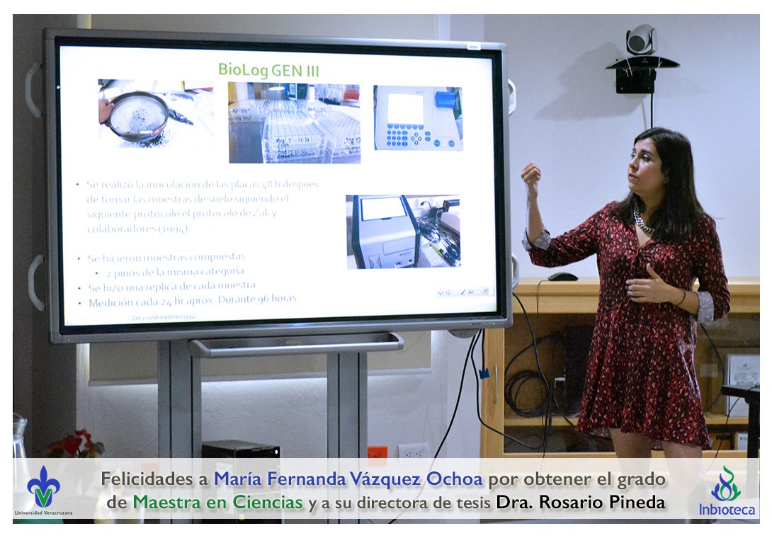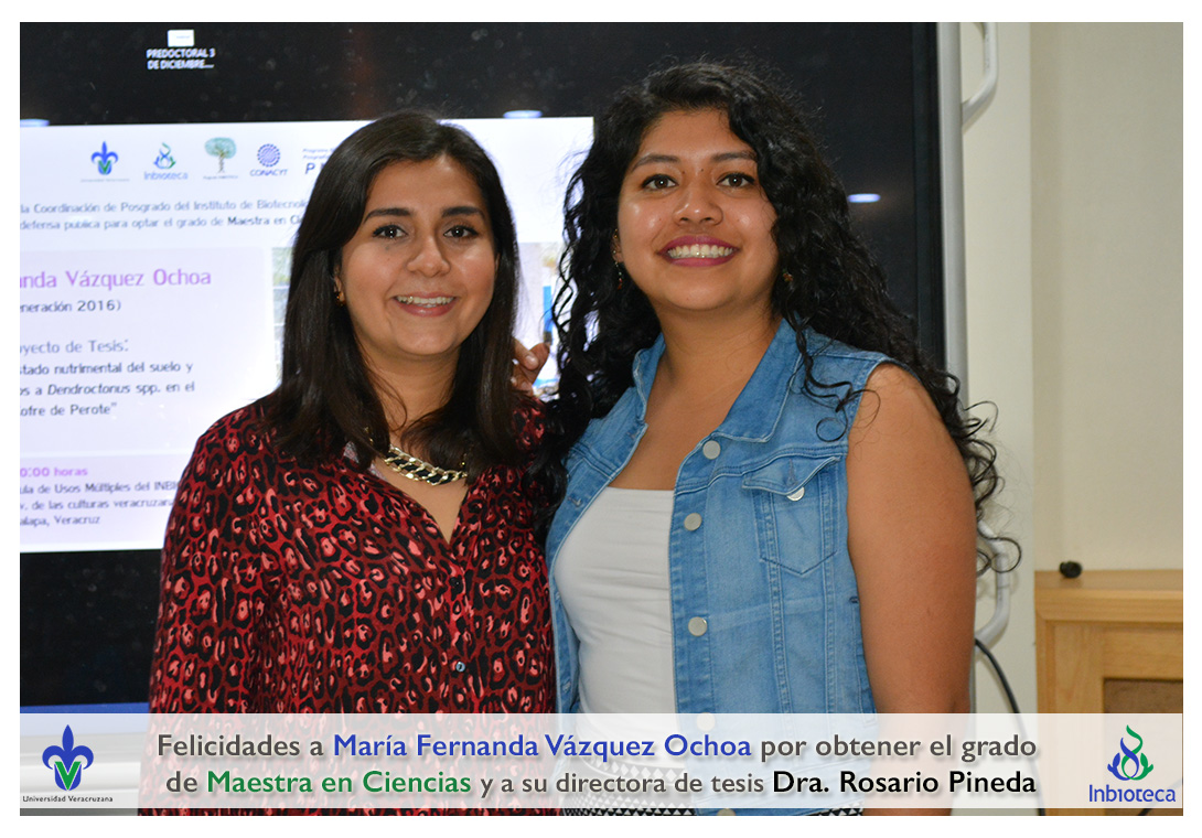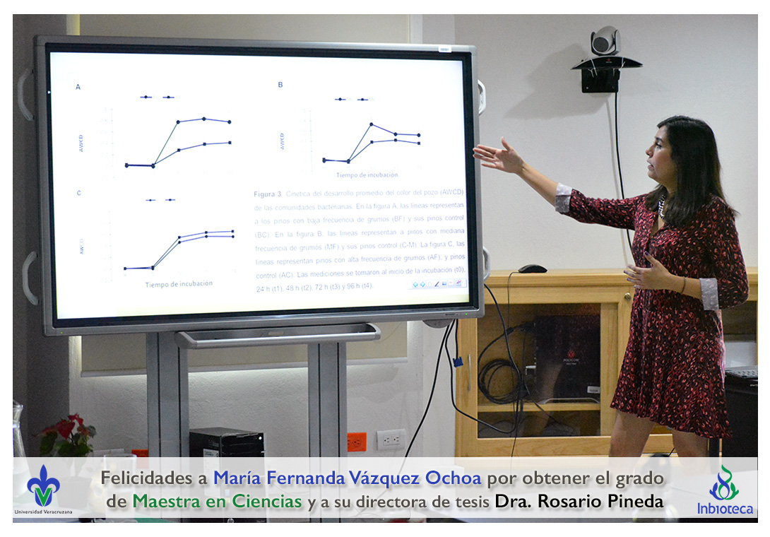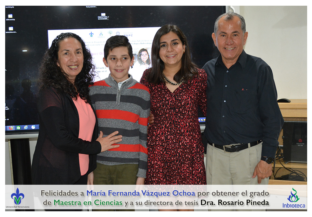 Felicidades a María Fernanda Vázquez Ochoa por obtener el grado de Maestra en Ciencias en Ecología y Biotecnología, a su directora de tesis Dra. María del Rosario Pineda López, a su comité y a todos los que contribuyeron en el trabajo realizado. ¡Enhorabuena!