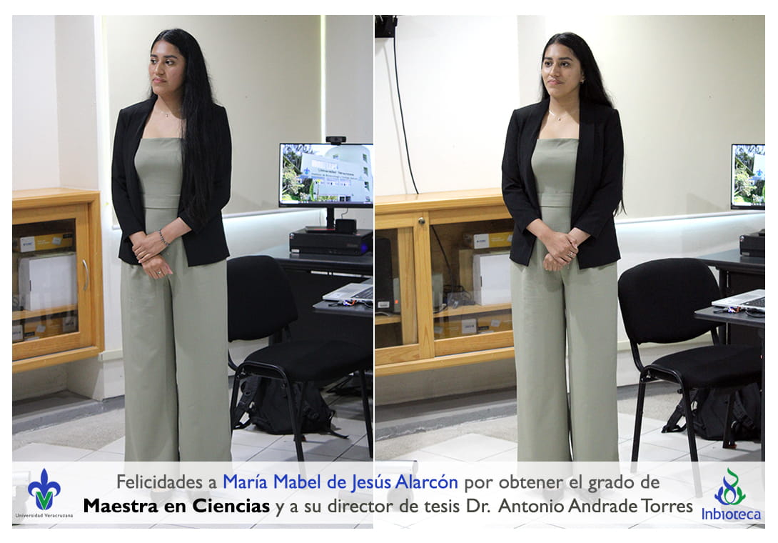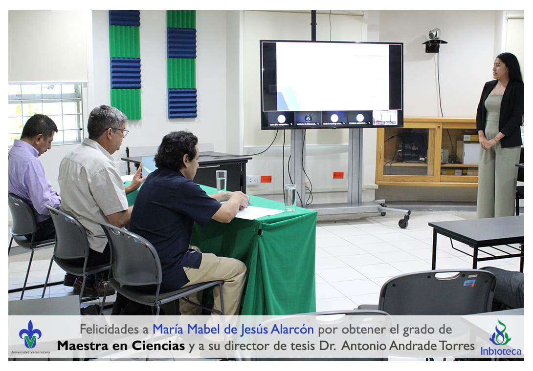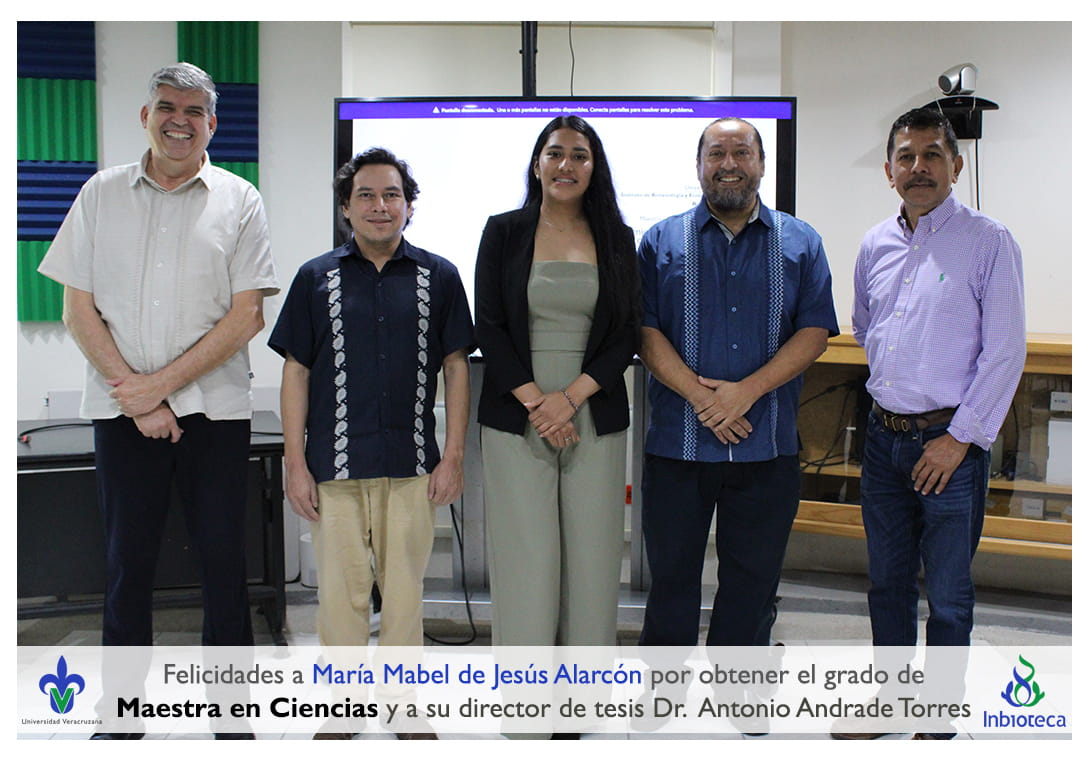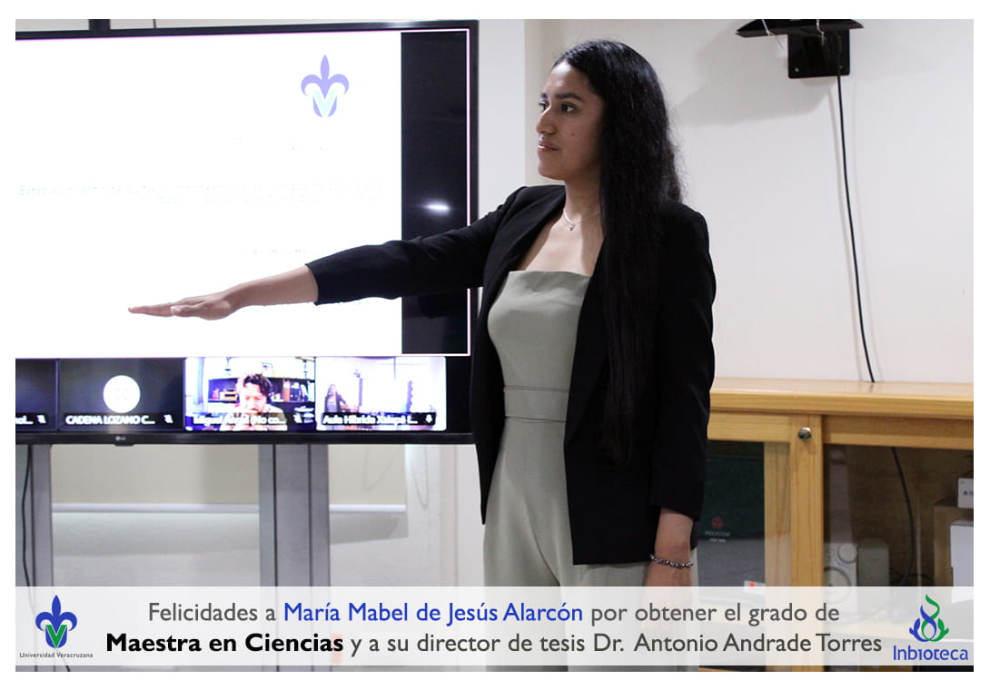 Felicidades a la Ing. María Mabel de Jesús Alarcón por obtener por Unanimidad con MENCIÓN HONORÍFICA el grado de Maestra en Ciencias en Ecología y Biotecnología, a su Director de tesis Dr. Antonio Andrade Torres, a su Codirectora Dra. Laura Yesenia Solís Ramos académica de la Universidad de Costa Rica, a su comité y a todos los que contribuyeron en el trabajo realizado. ¡Enhorabuena!