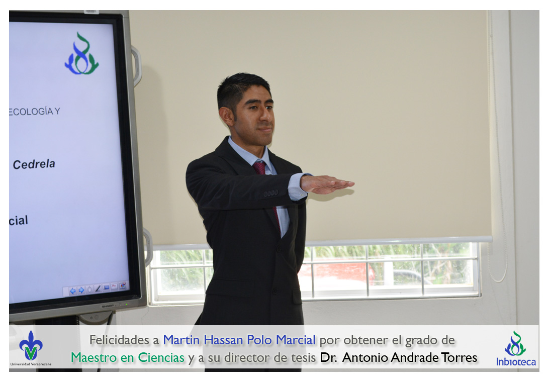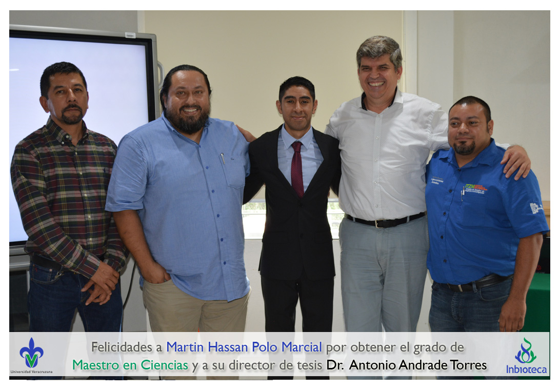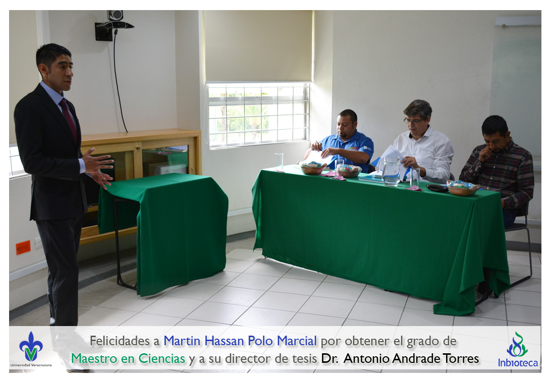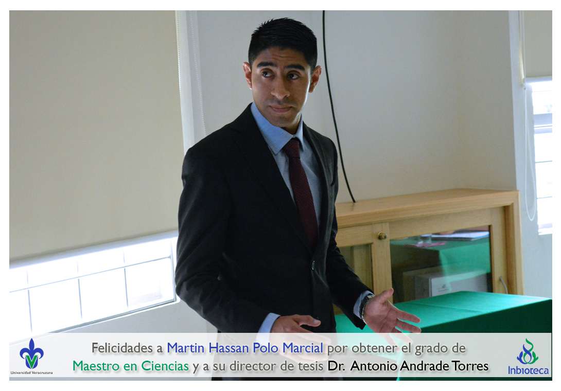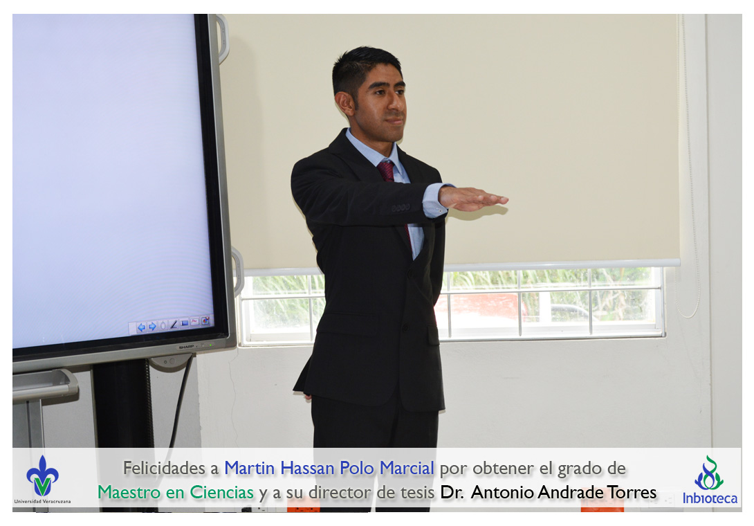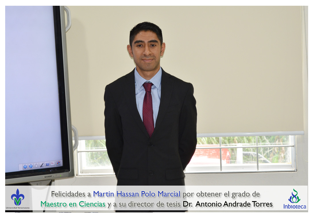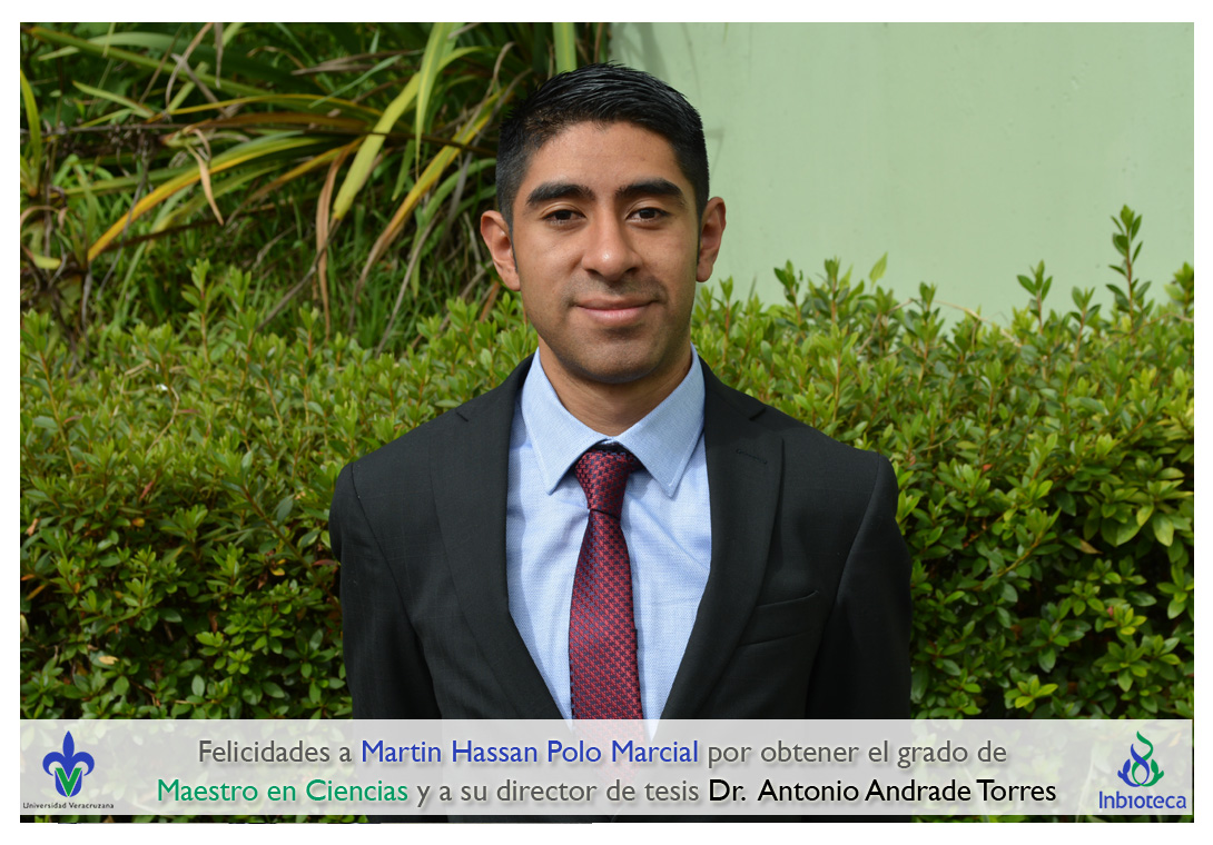 Felicidades a Martin Hassan Polo Marcial por obtener el grado de Maestro en Ciencias en Ecología y Biotecnología, a su director de tesis Dr. Antonio Andrade Torres, a su comité y a todos los que contribuyeron en el trabajo realizado. ¡Enhorabuena!