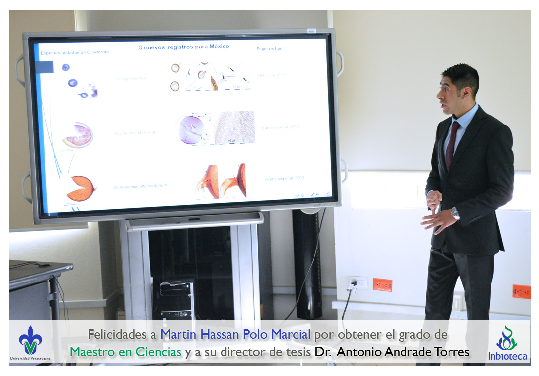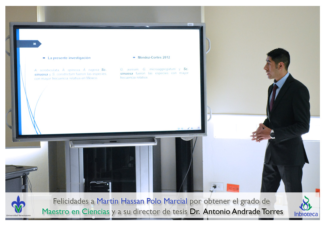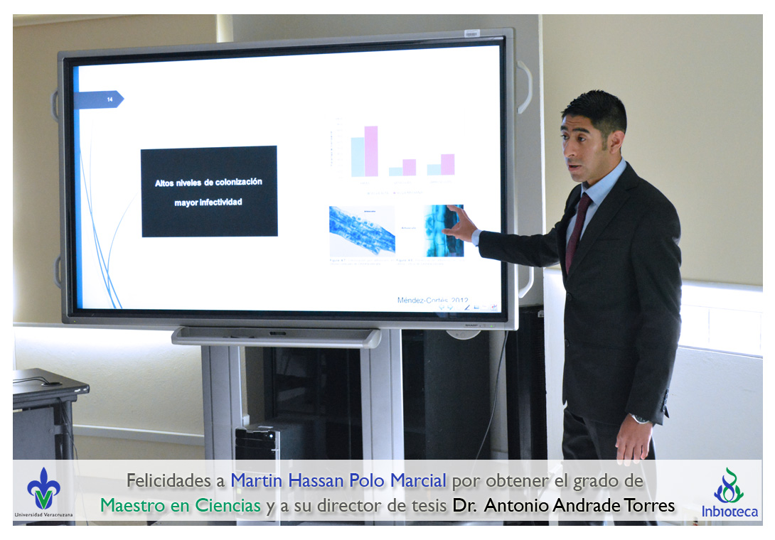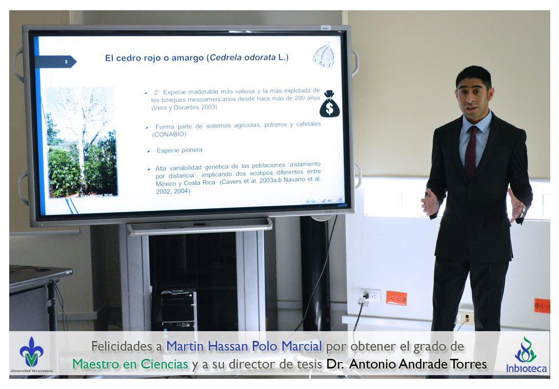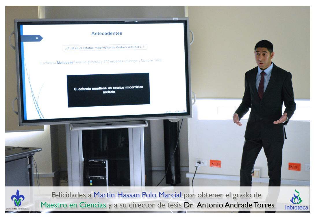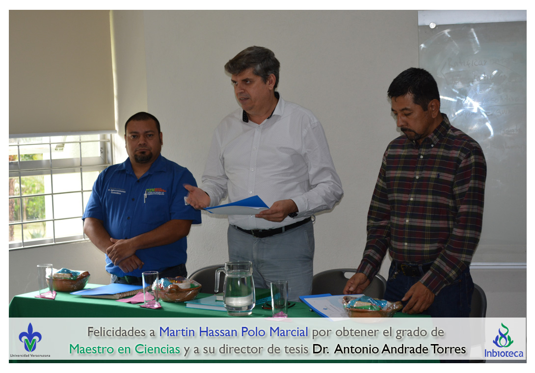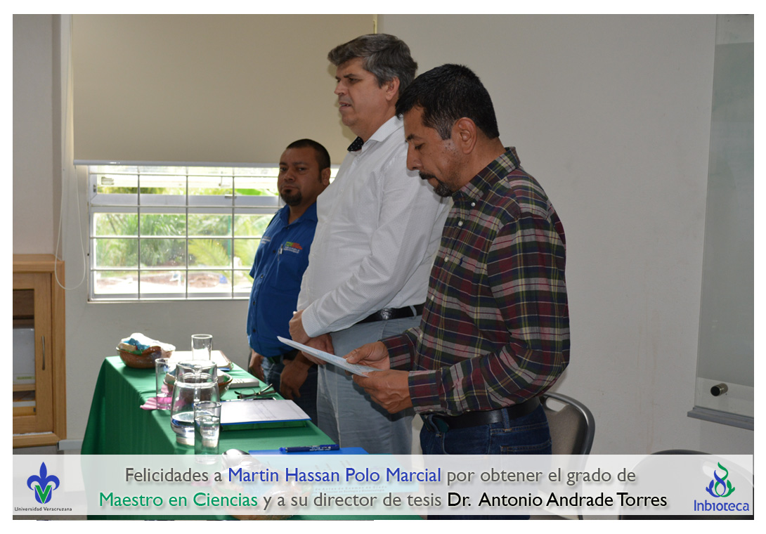 Felicidades a Martin Hassan Polo Marcial por obtener el grado de Maestro en Ciencias en Ecología y Biotecnología, a su director de tesis Dr. Antonio Andrade Torres, a su comité y a todos los que contribuyeron en el trabajo realizado. ¡Enhorabuena!