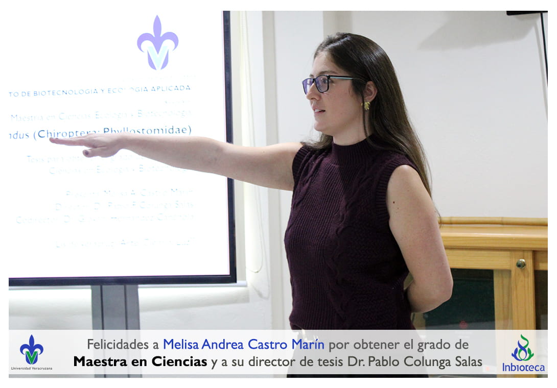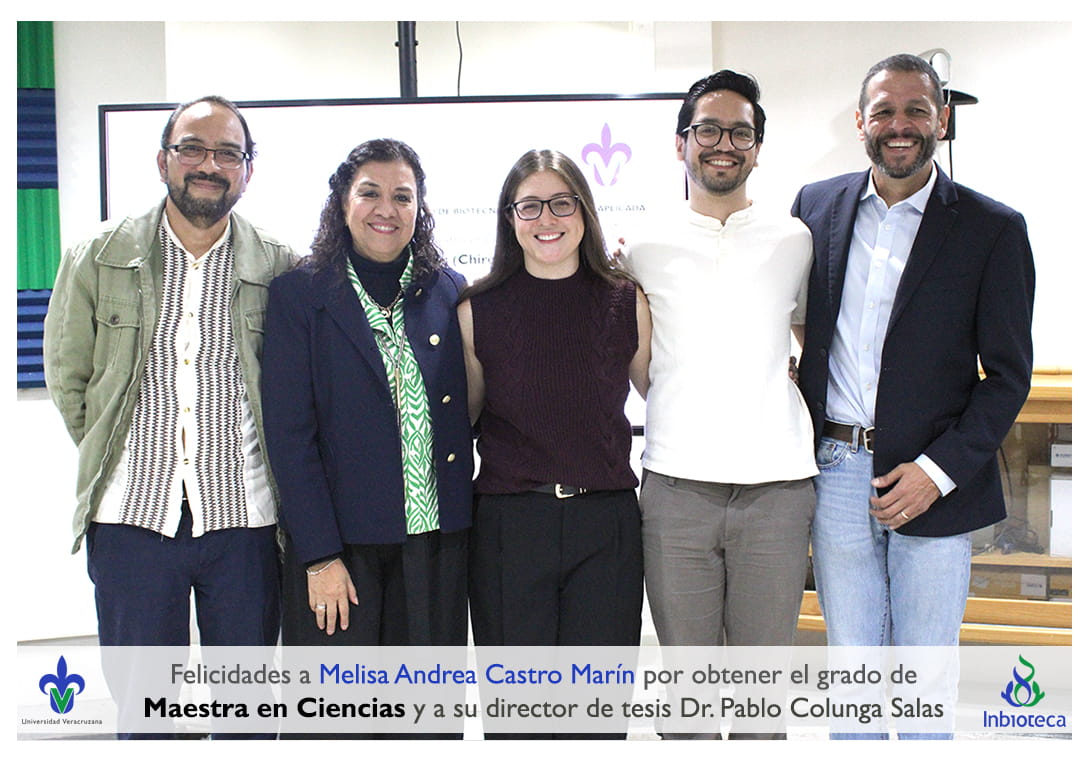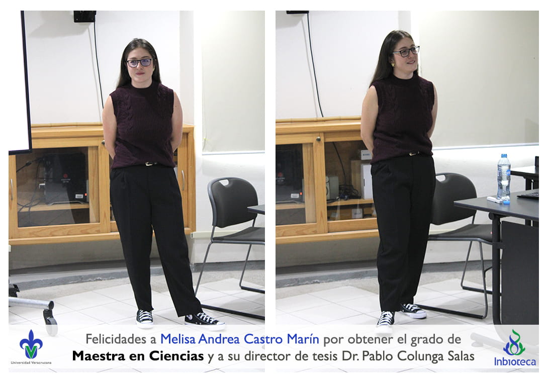 Felicidades a la Biol. Melisa Andrea Castro Marín por obtener por Unanimidad con MENCIÓN HONORÍFICA el grado de Maestra en Ciencias en Ecología y Biotecnología, a su Director de tesis Dr. Pablo Francisco Colunga Salas, a su Codirector Dr. Giovani Hernández Canchola académico de la Facultad de Ciencias de la UNAM, a su comité y a todos los que contribuyeron en el trabajo realizado. ¡Enhorabuena!