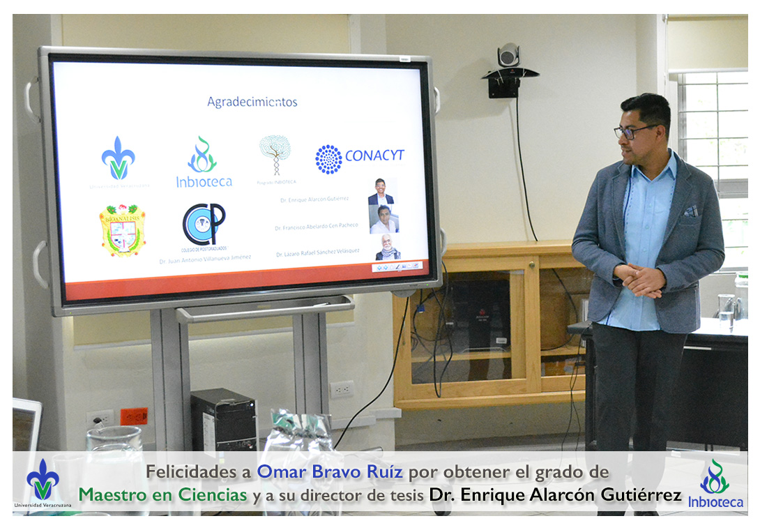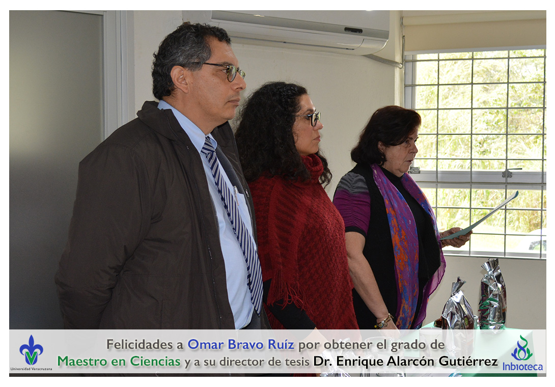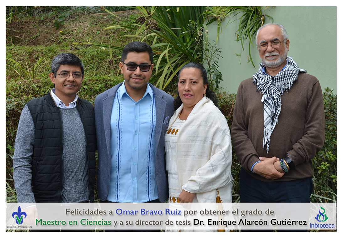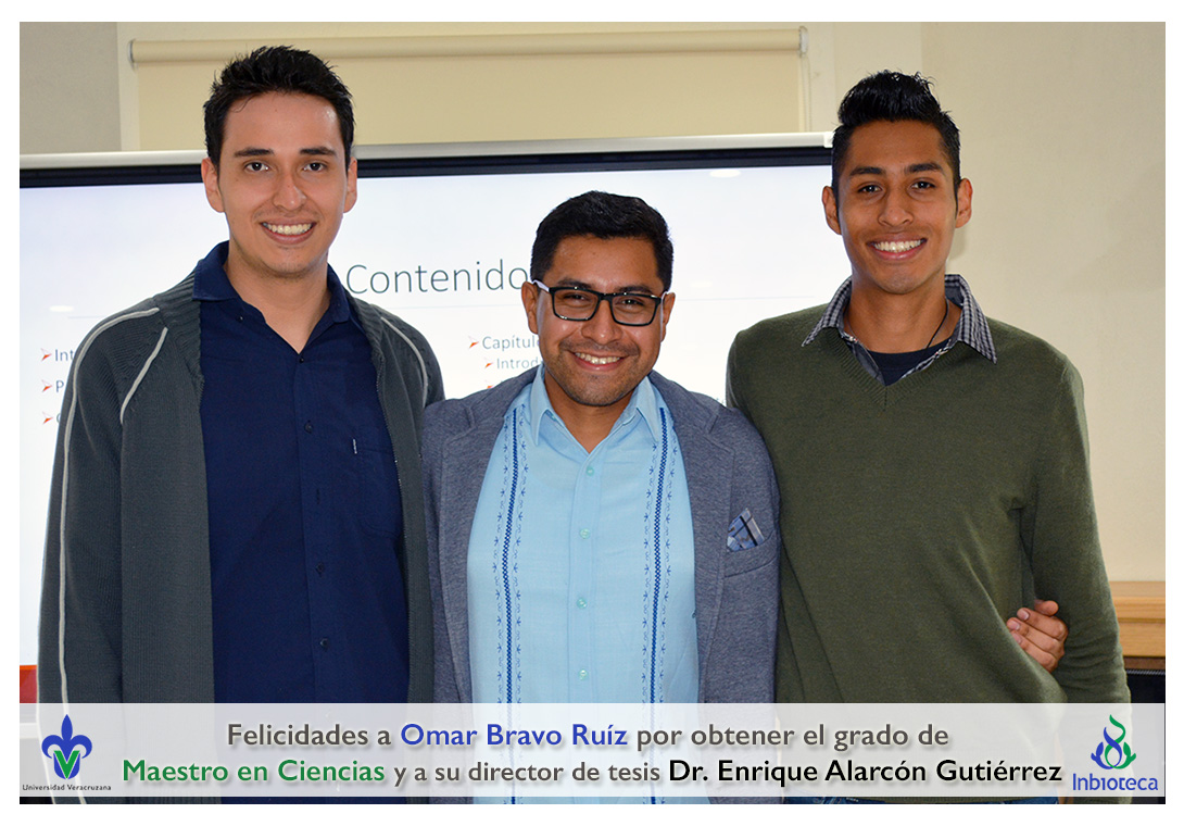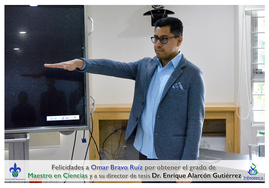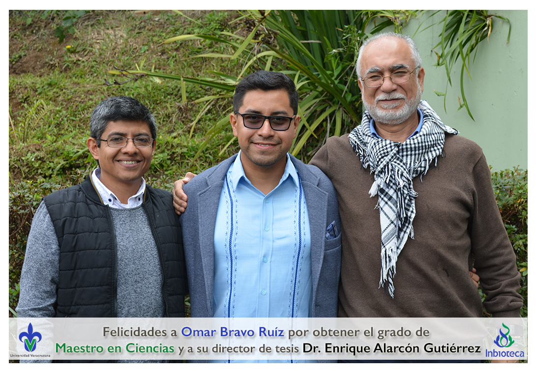 Felicidades a Omar Bravo Ruíz por obtener el grado de Maestro en Ciencias en Ecología y Biotecnología, a su director de tesis Dr. Enrique Alarcón Gutiérrez, a su comité y a todos los que contribuyeron en el trabajo realizado. ¡Enhorabuena!
